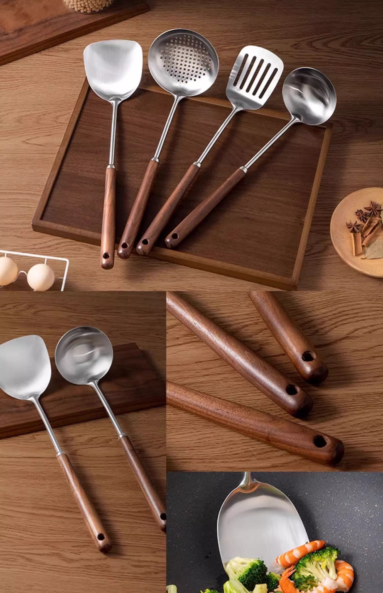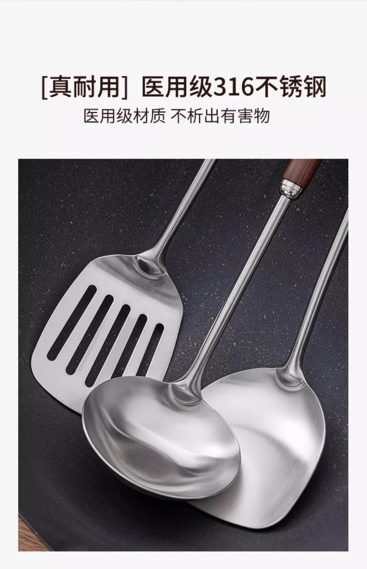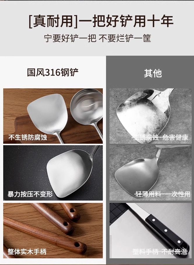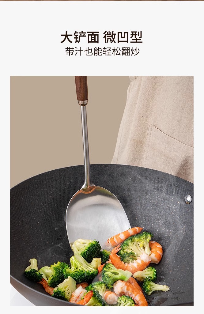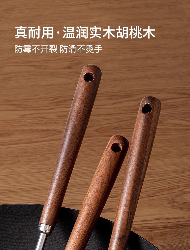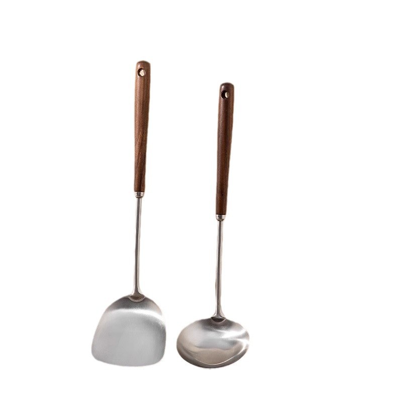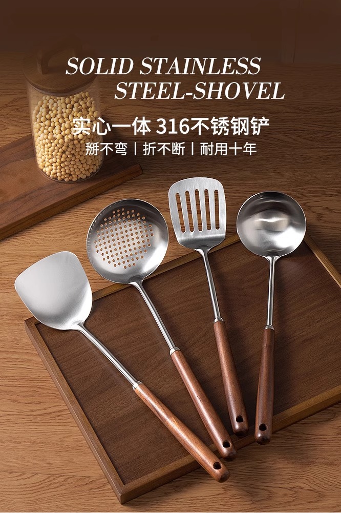 316 스테인레스 스틸 주걱 가정용 식품 등급 나무 손잡이 수프 숟가락 소쿠리 세트 호두 볶음 주걱