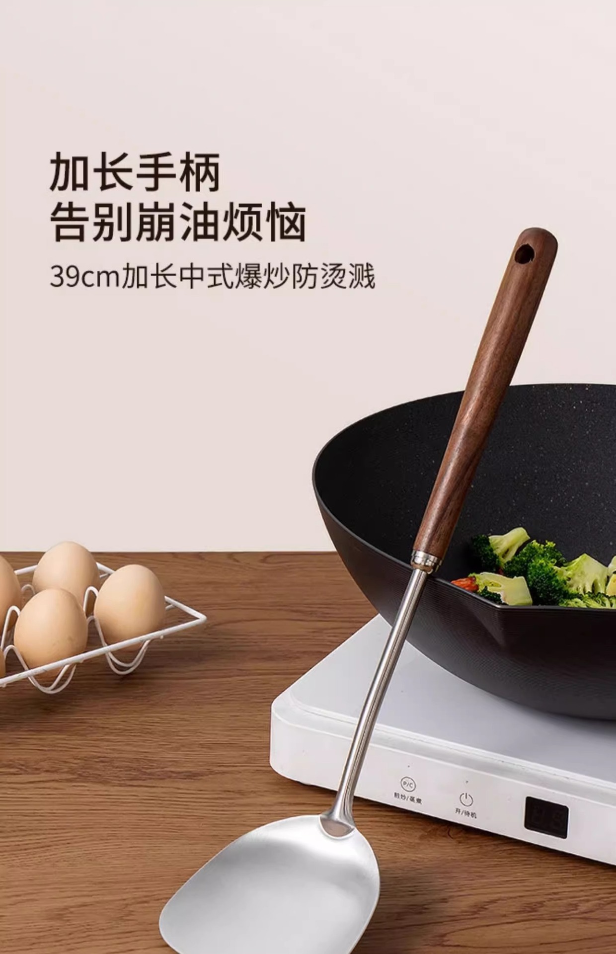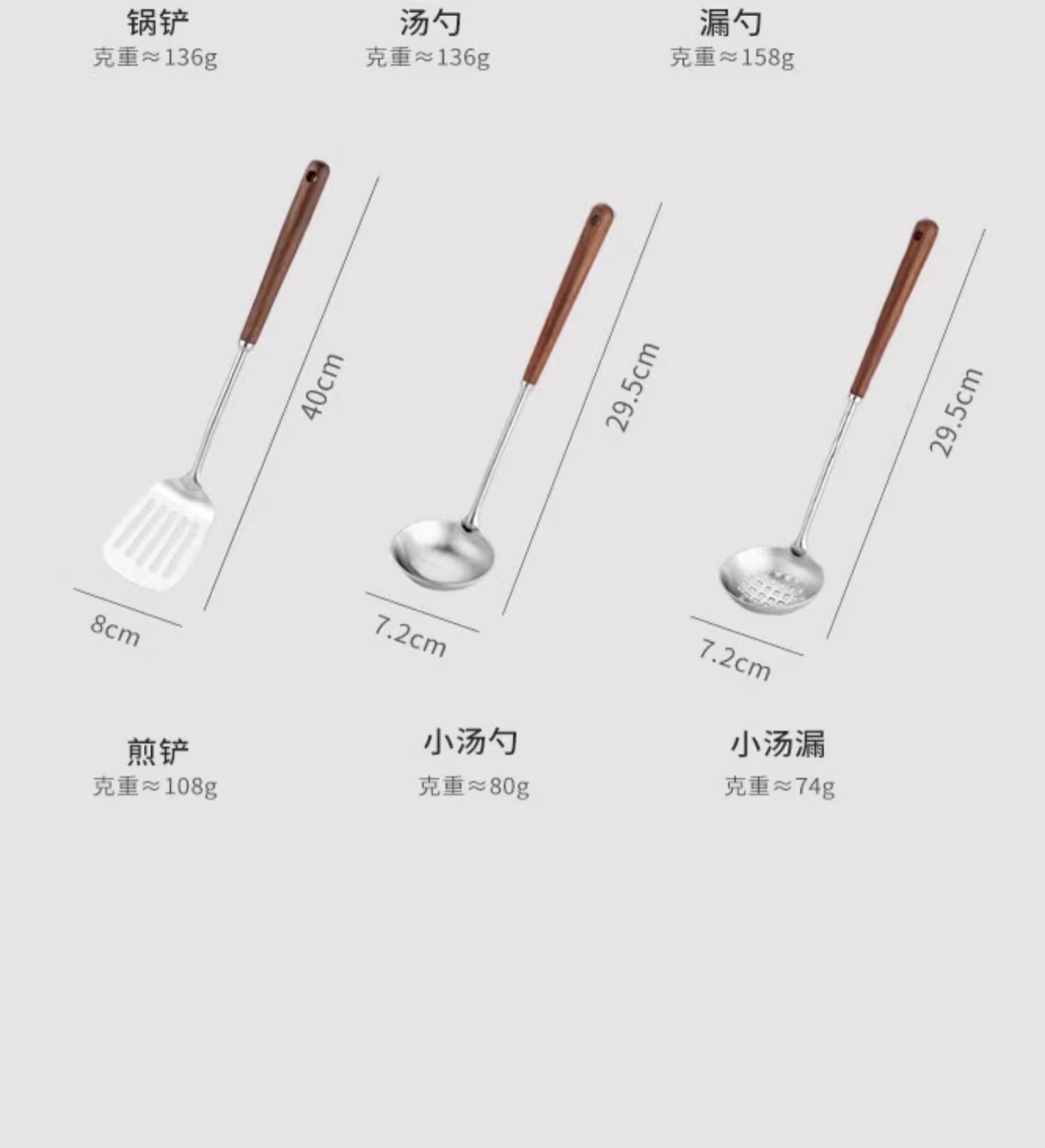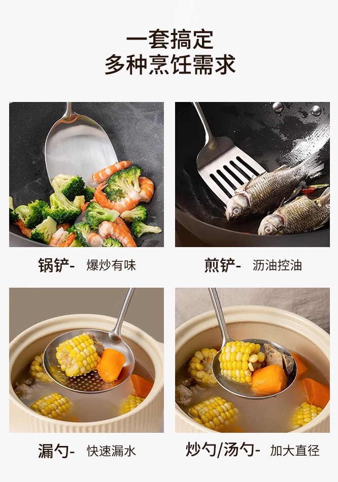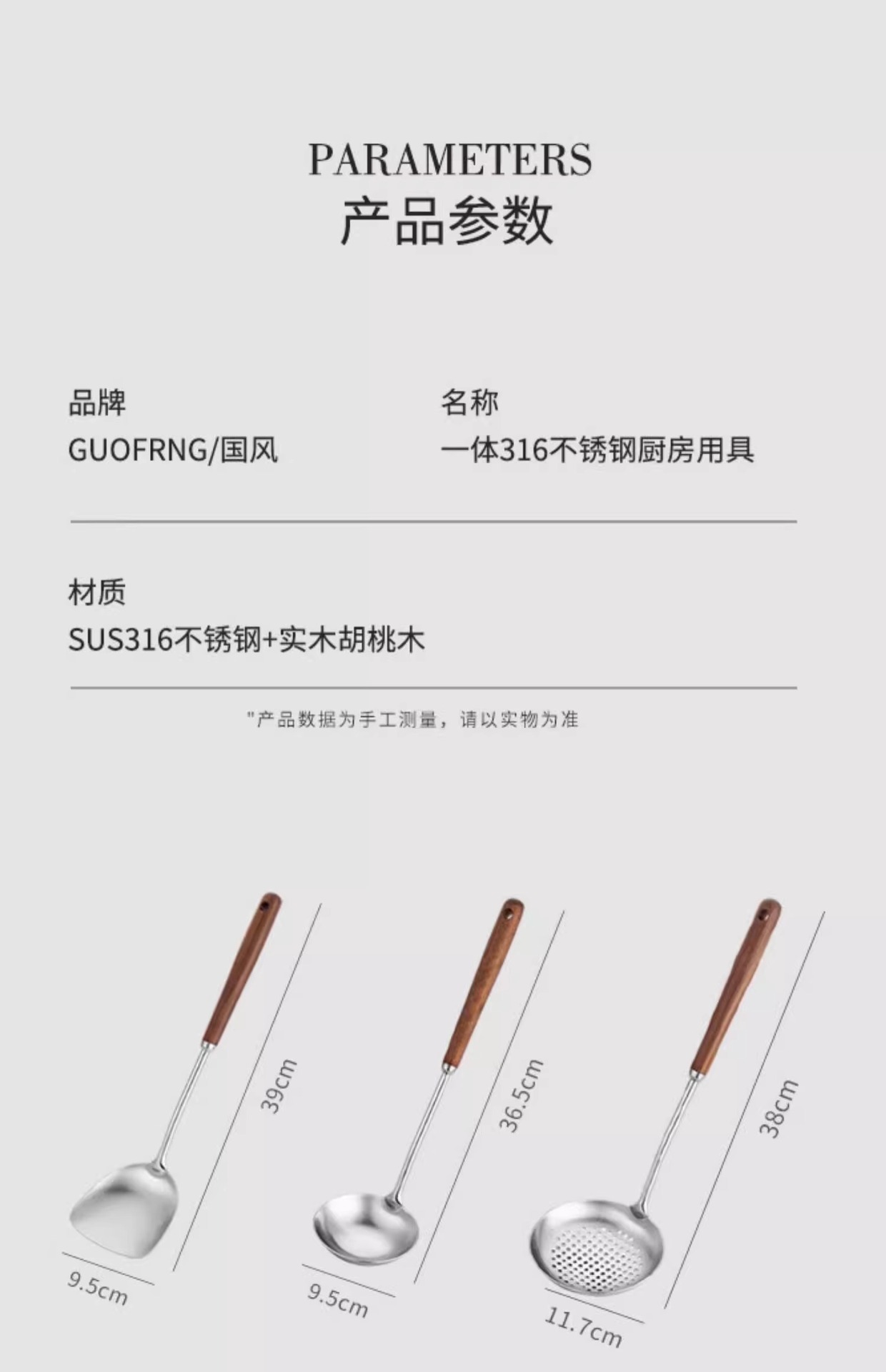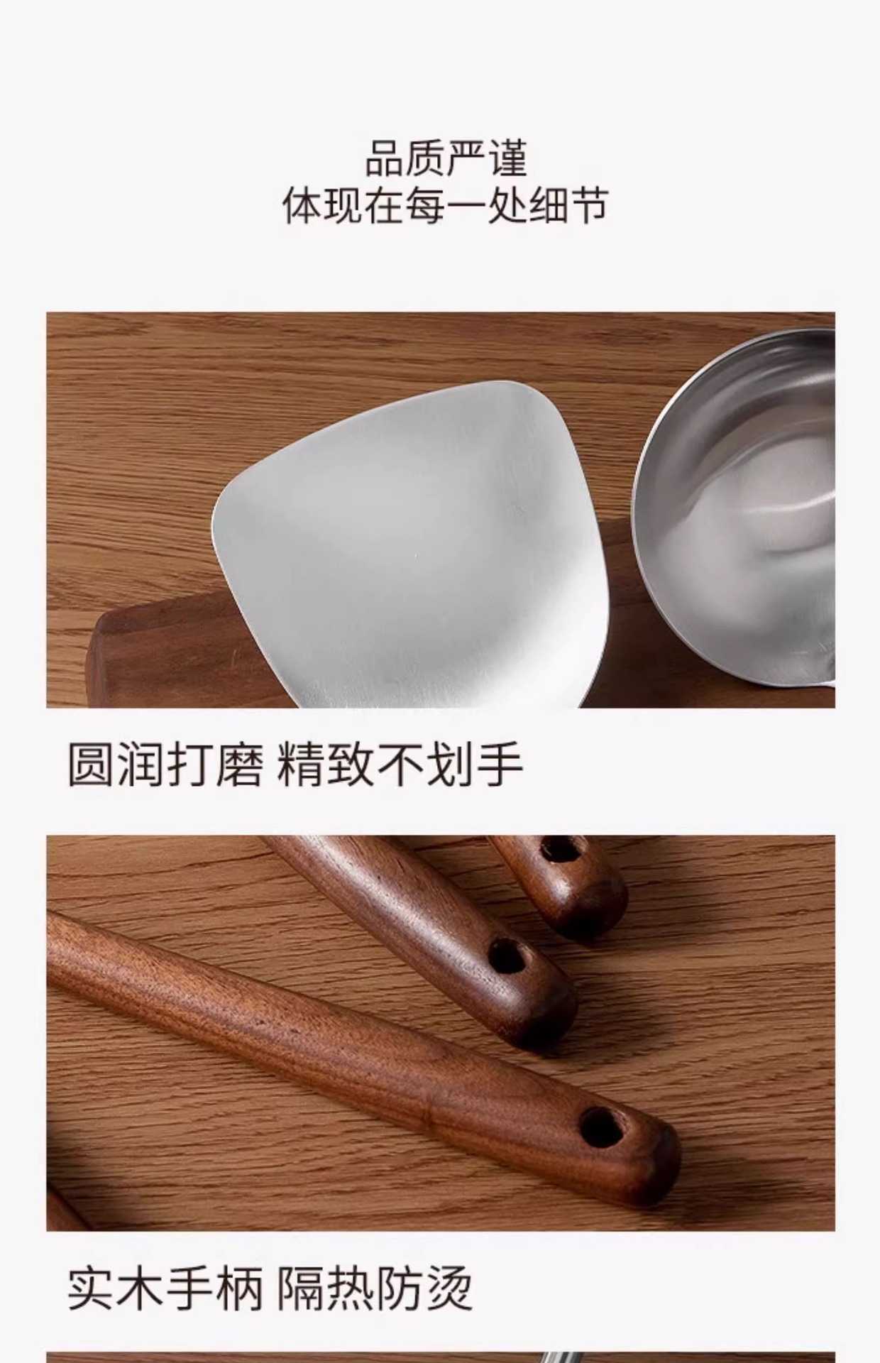 316 스테인레스 스틸 주걱 가정용 식품 등급 나무 손잡이 수프 숟가락 소쿠리 세트 호두 볶음 주걱