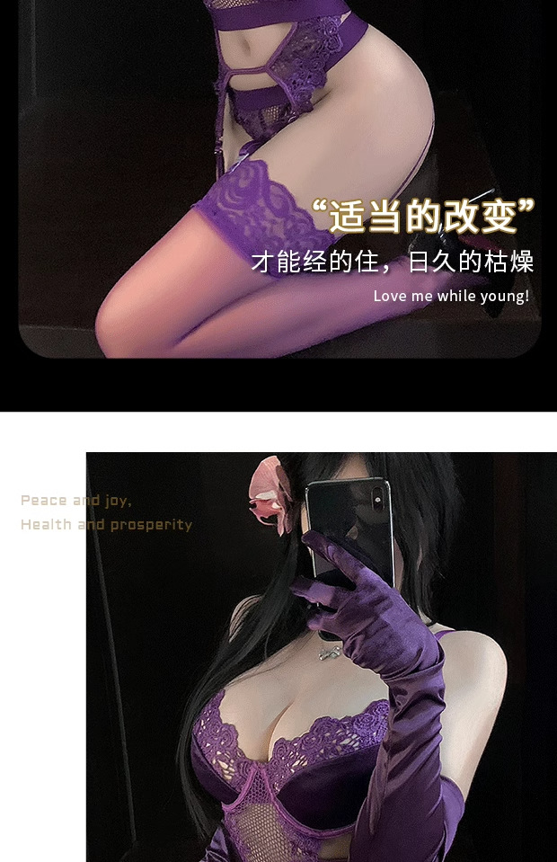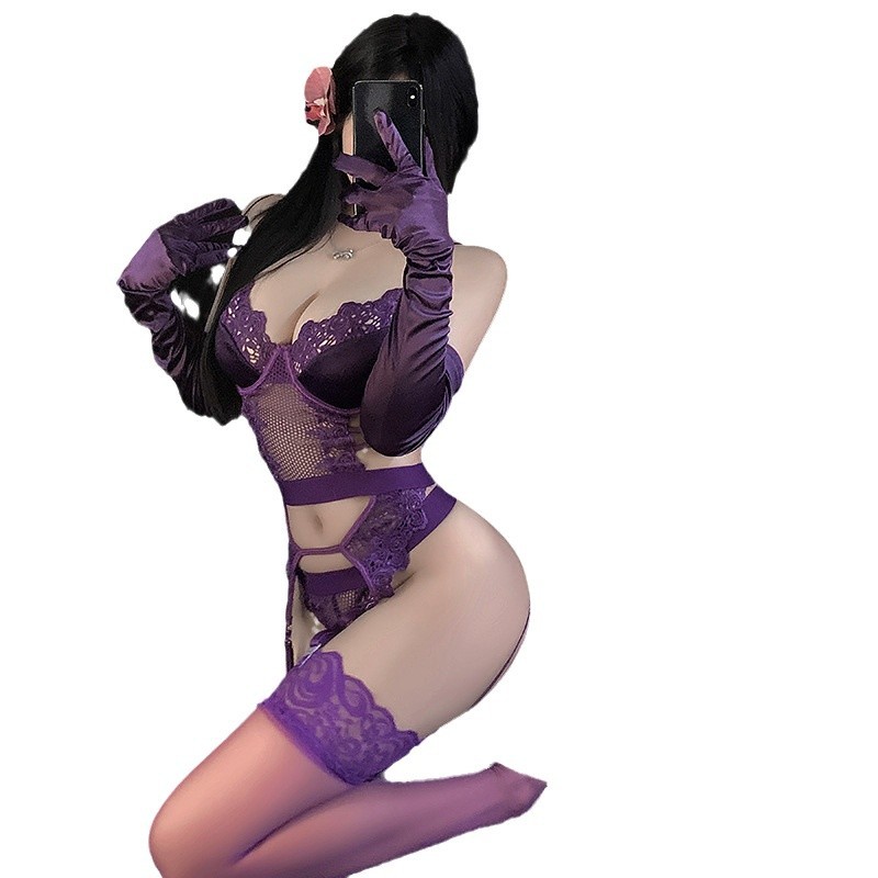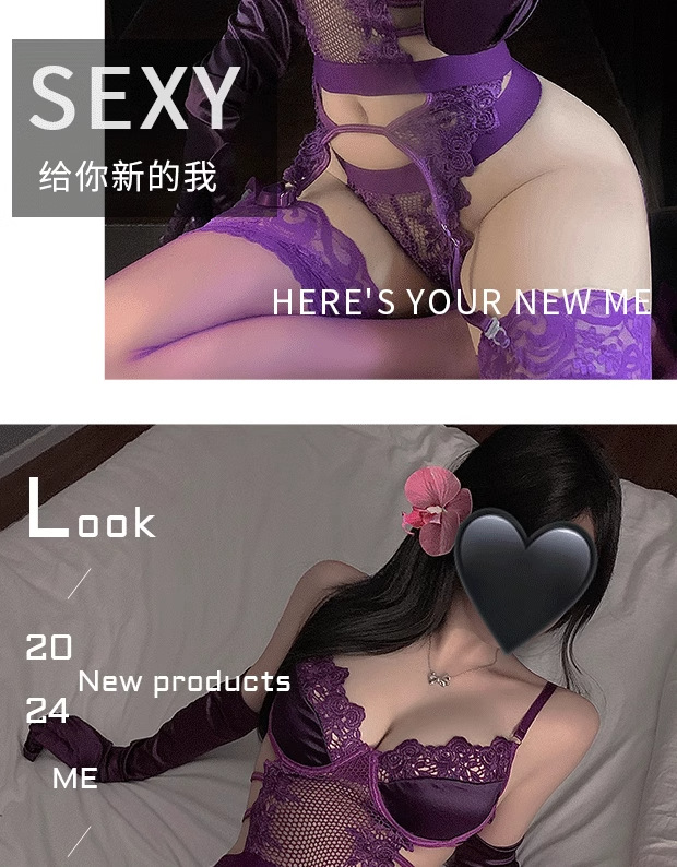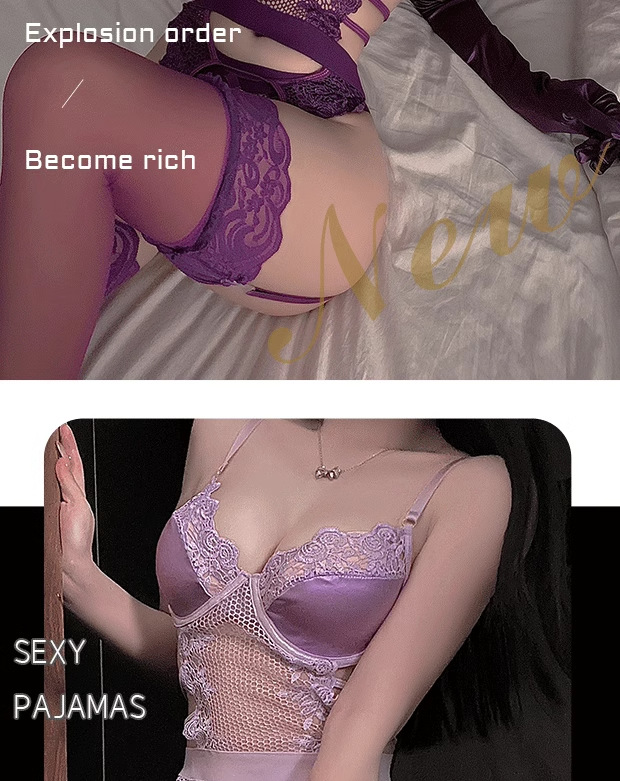 섹시한 속옷 섹시한 보라색 실크 바느질 원근감 균일 한 순수한 욕망 무료 열정 침대 여성 잠옷