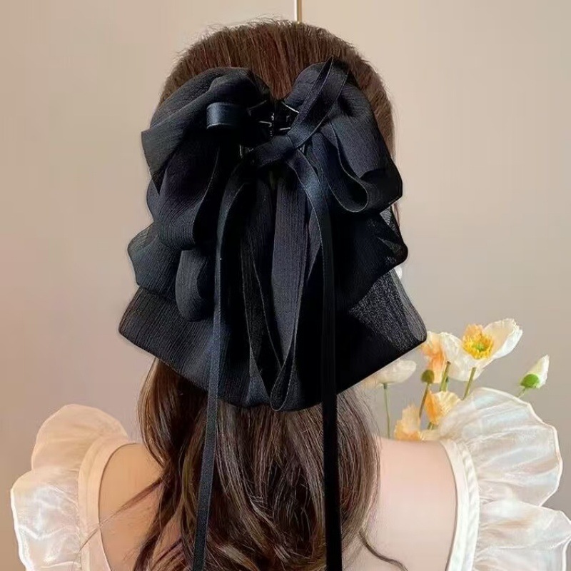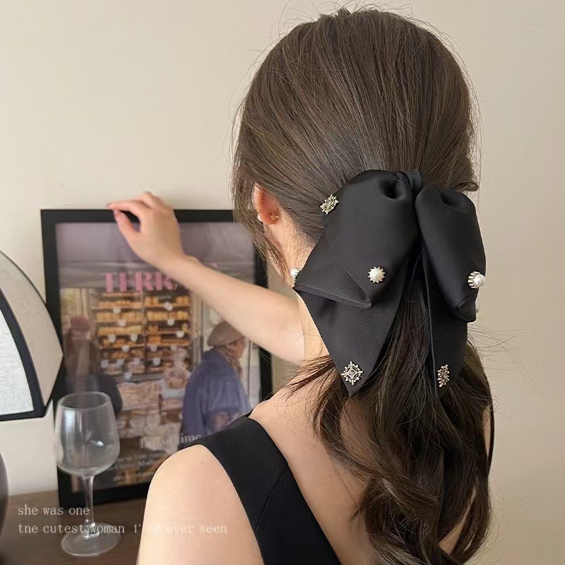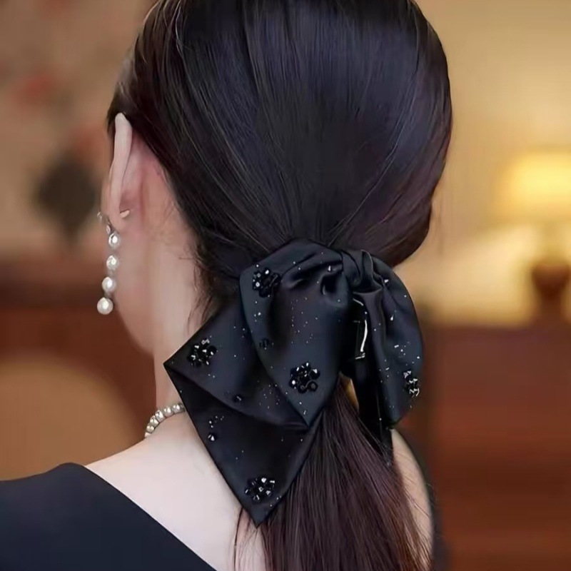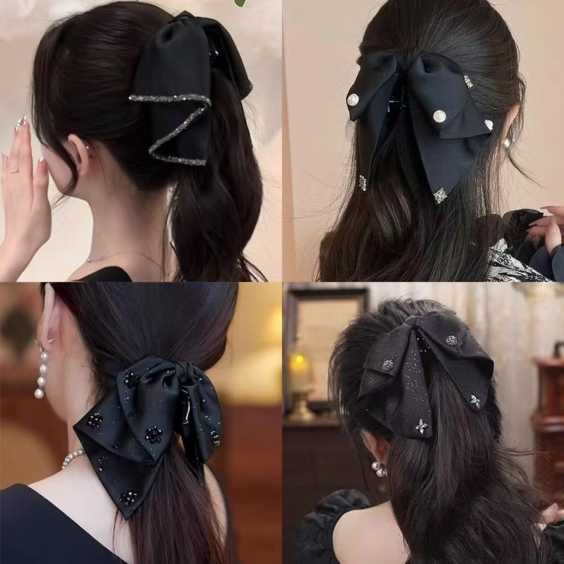 빈티지 새틴 활 그랩 클립 여성용 하이 엔드 우아한 우아한 로우 포니 테일 클립 백 헤드 클립 헤어 클립