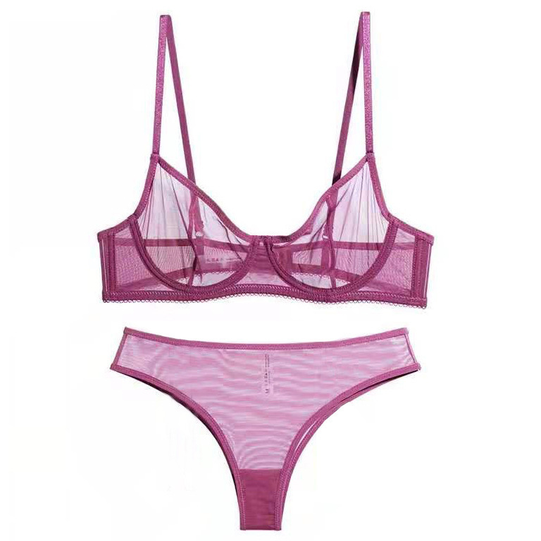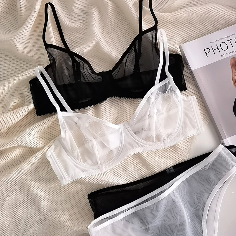 프렌치 초박형 섹시 속옷 메쉬 시스루 순수 욕망 언더와이어 푸시업 크로스보더 브라 팬티 세트