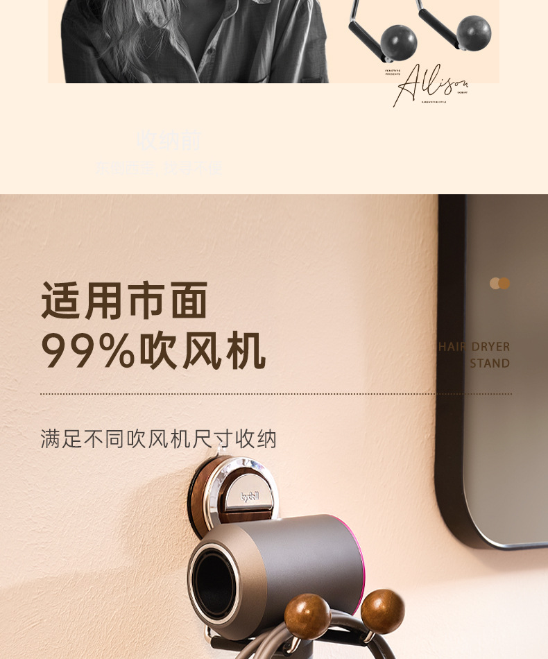 戴森吹风机置物架免打孔浴室电吹风支架卫生间风筒挂收纳吸盘架子