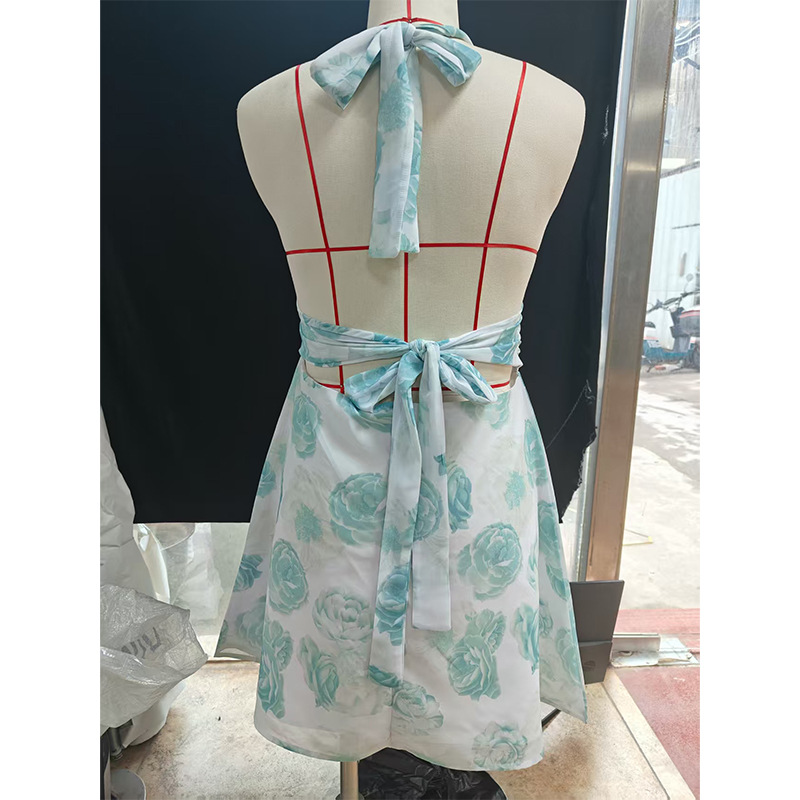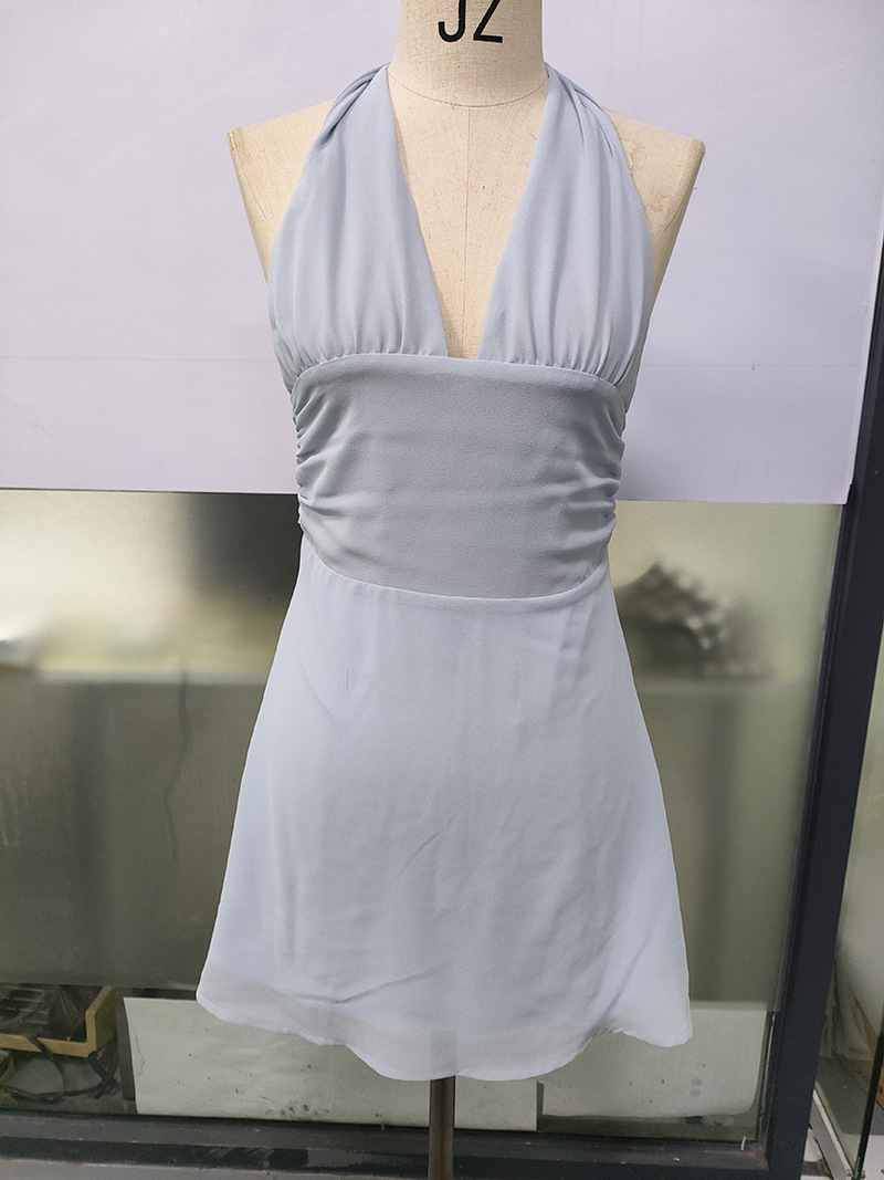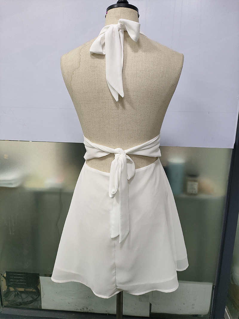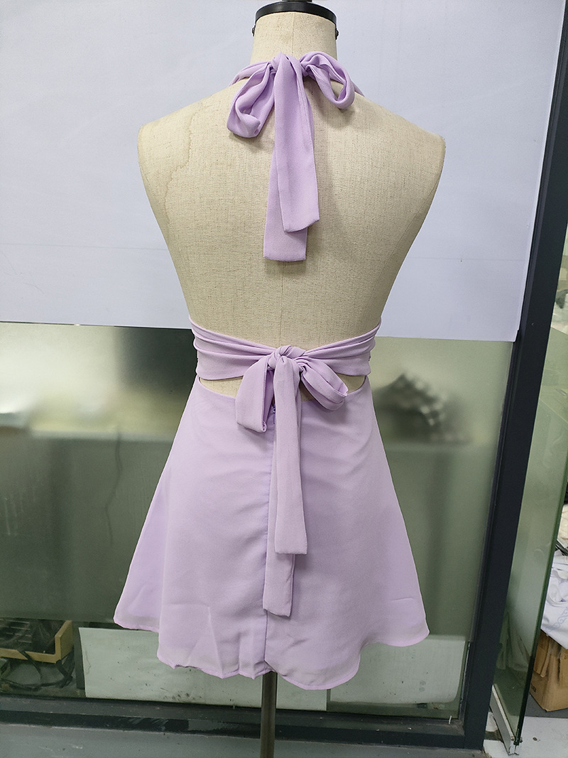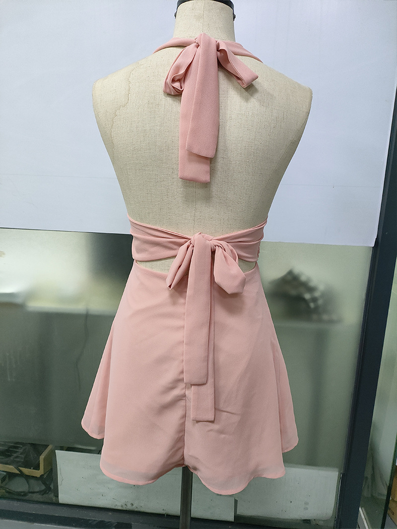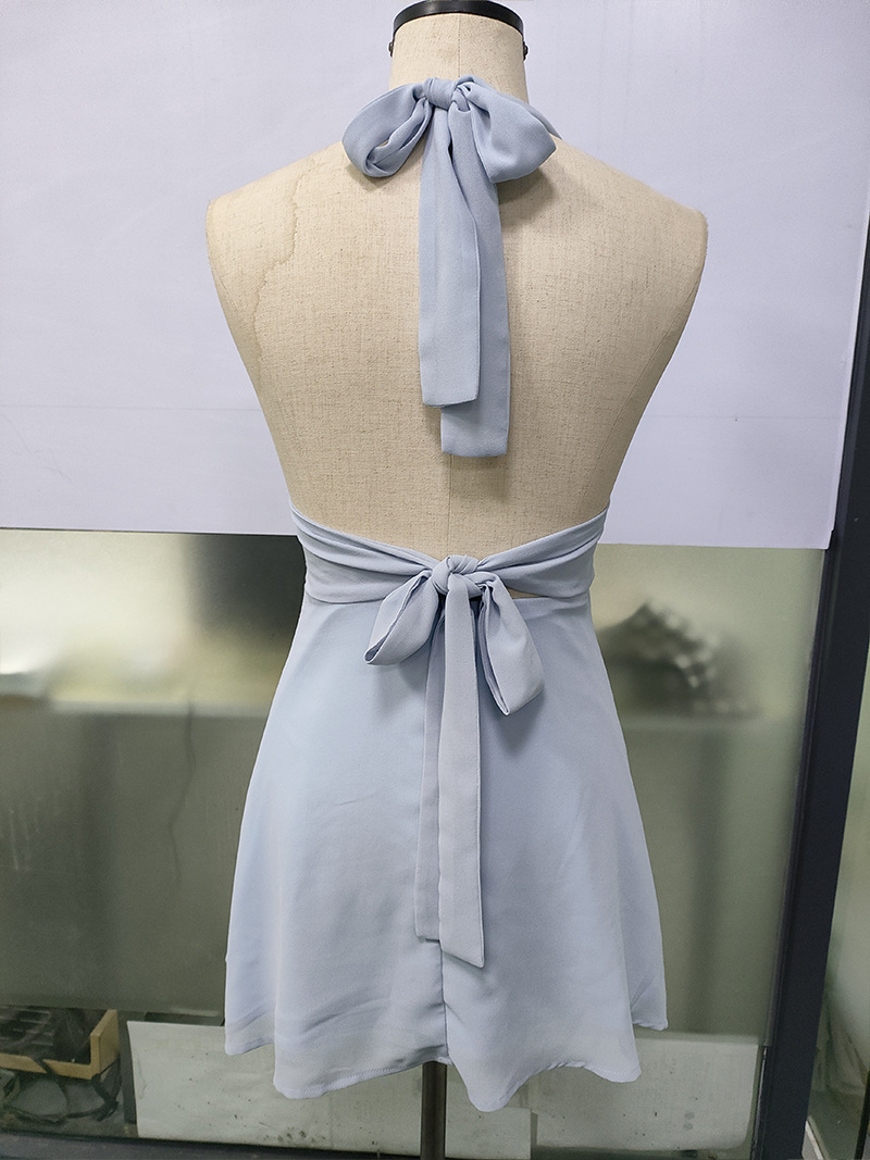 유럽 및 미국 직수입 여성용 끈 묶음 딥 V 타이트 미니스커트 섹시한 핫걸 백리스 끈 묶음 허리 조임 원피스