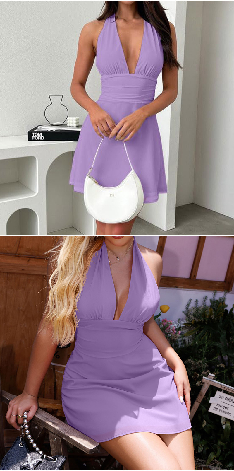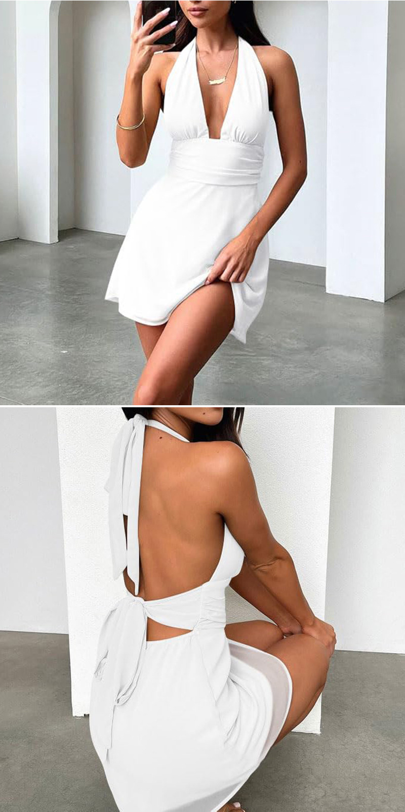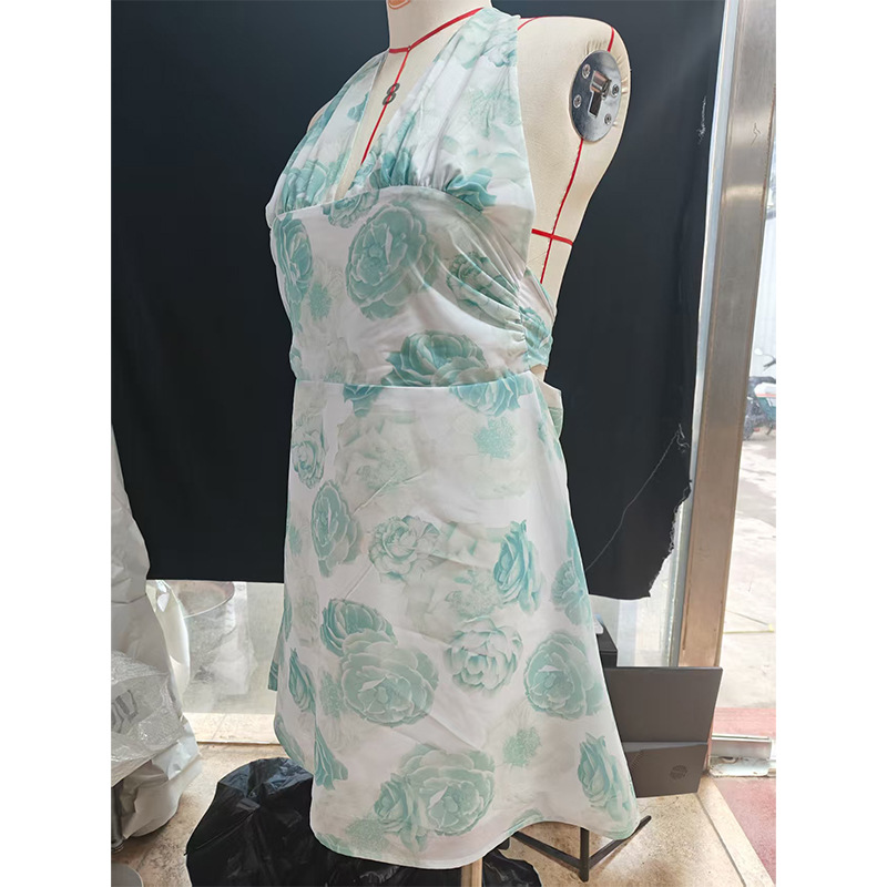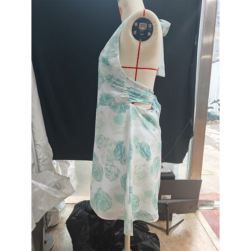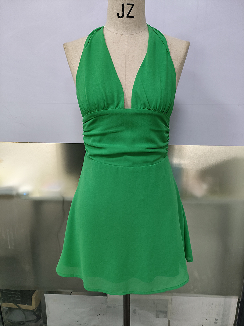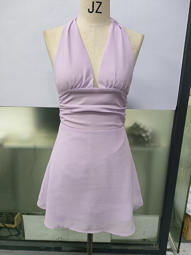 유럽 및 미국 직수입 여성용 끈 묶음 딥 V 타이트 미니스커트 섹시한 핫걸 백리스 끈 묶음 허리 조임 원피스