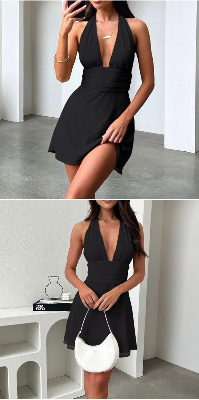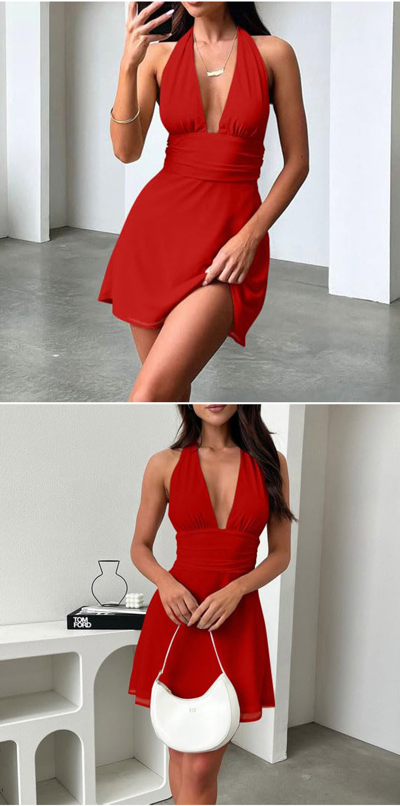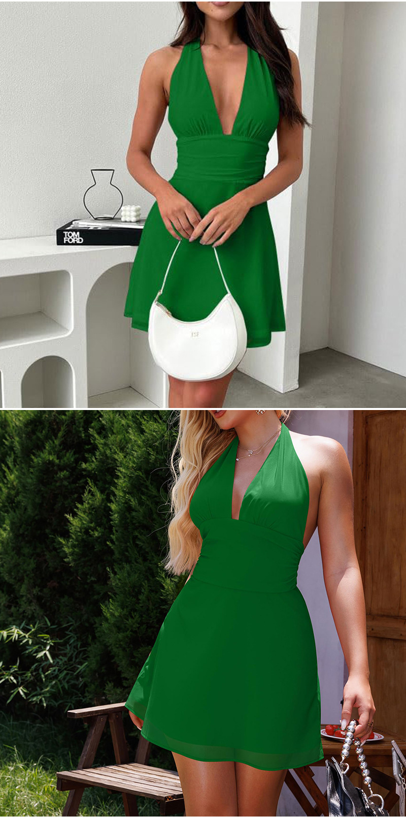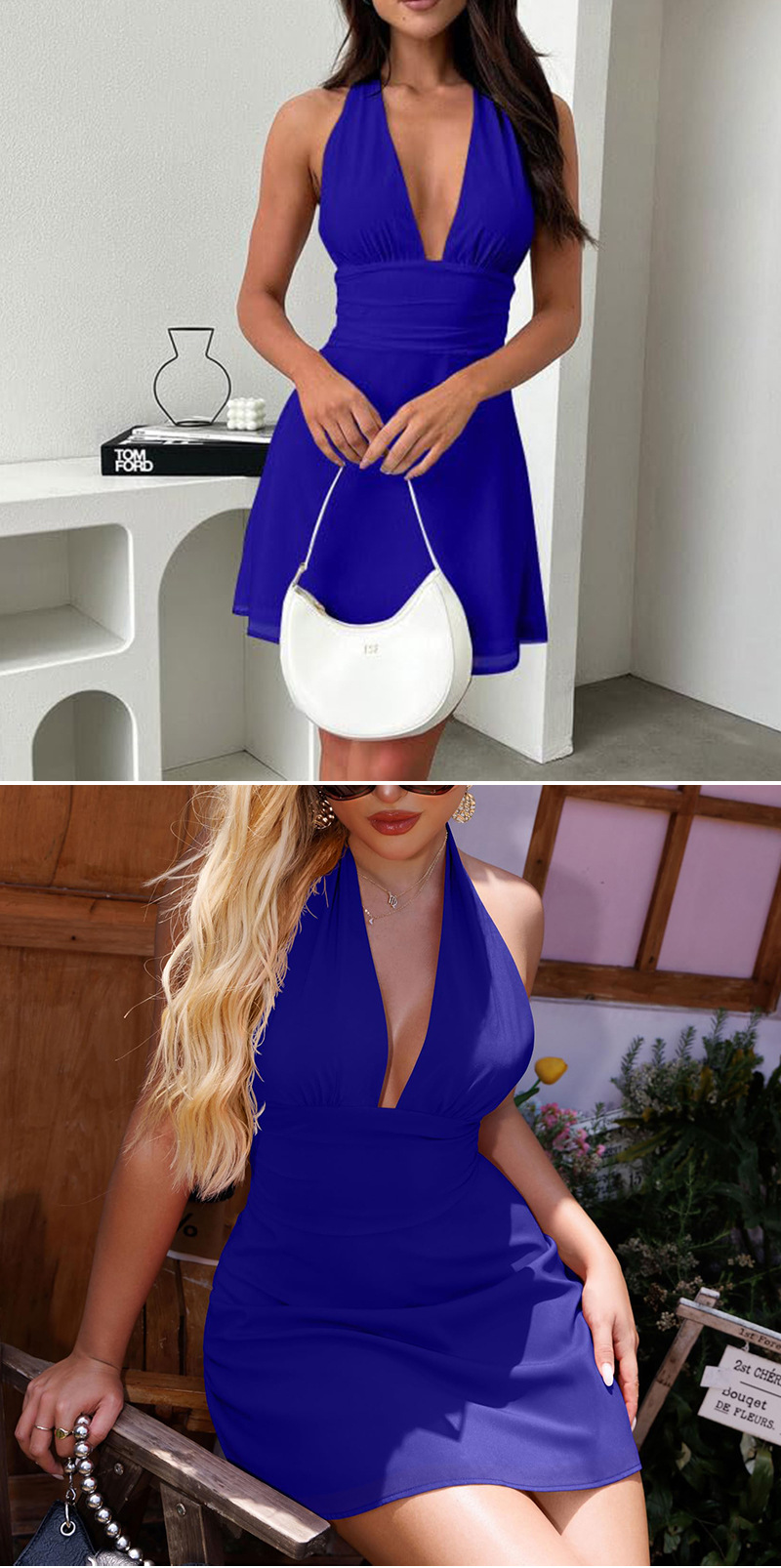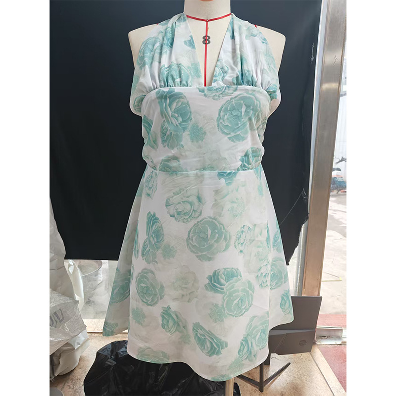 유럽 및 미국 직수입 여성용 끈 묶음 딥 V 타이트 미니스커트 섹시한 핫걸 백리스 끈 묶음 허리 조임 원피스