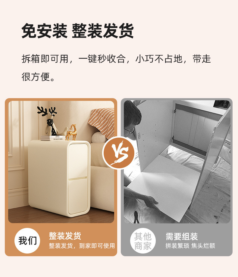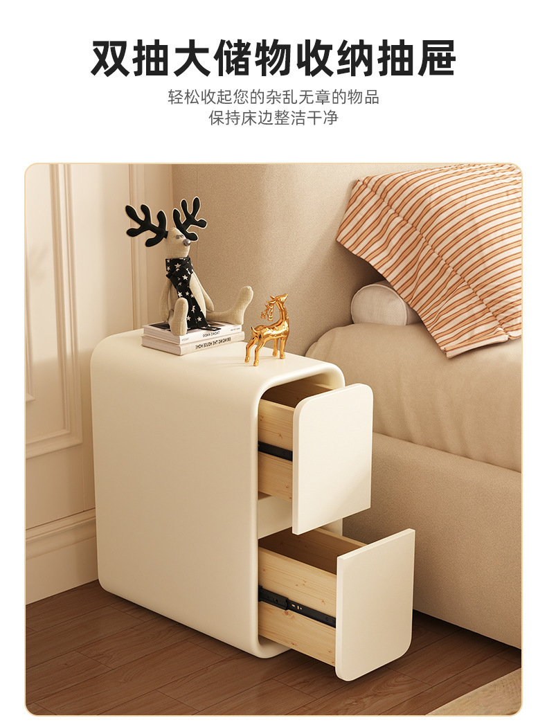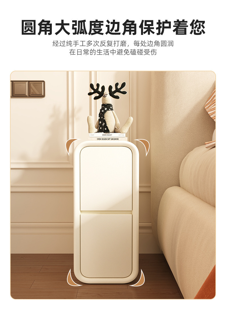 크림 스타일 매우 좁은 침대 옆 테이블 갭 캐비닛 창조적 인 빛 고급 고급 하이 엔드 센스 미니 솔리드 우드 작은 측면 캐비닛 작은 울트라 좁은