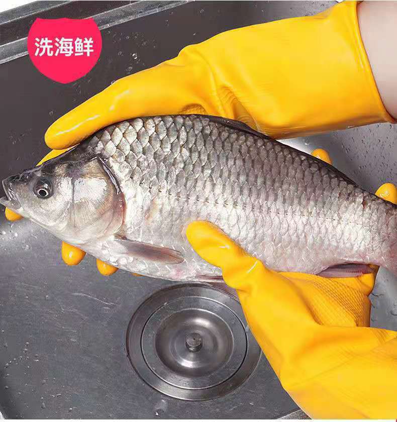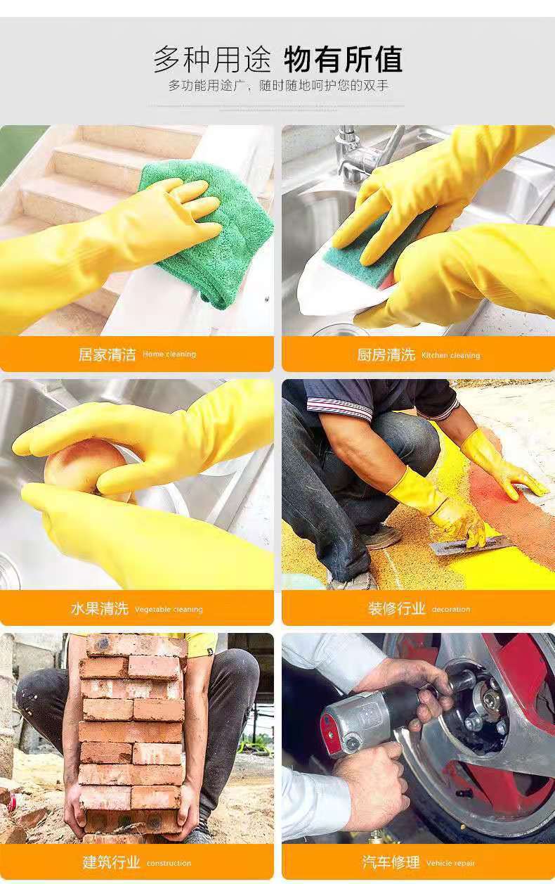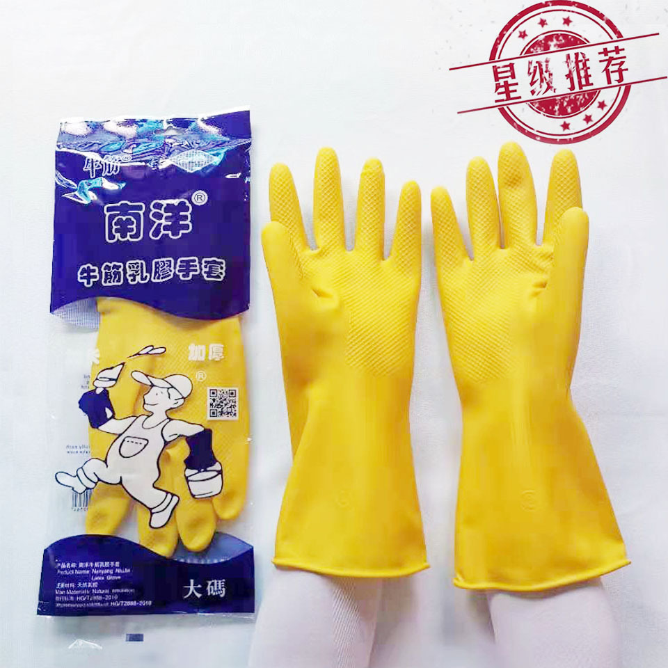 난양 헤이우에 쇠고기 텐돈 고무 장갑 가정용 주방 세척 장갑 산 및 알칼리 저항하는 두꺼운 라텍스 장갑 노란색