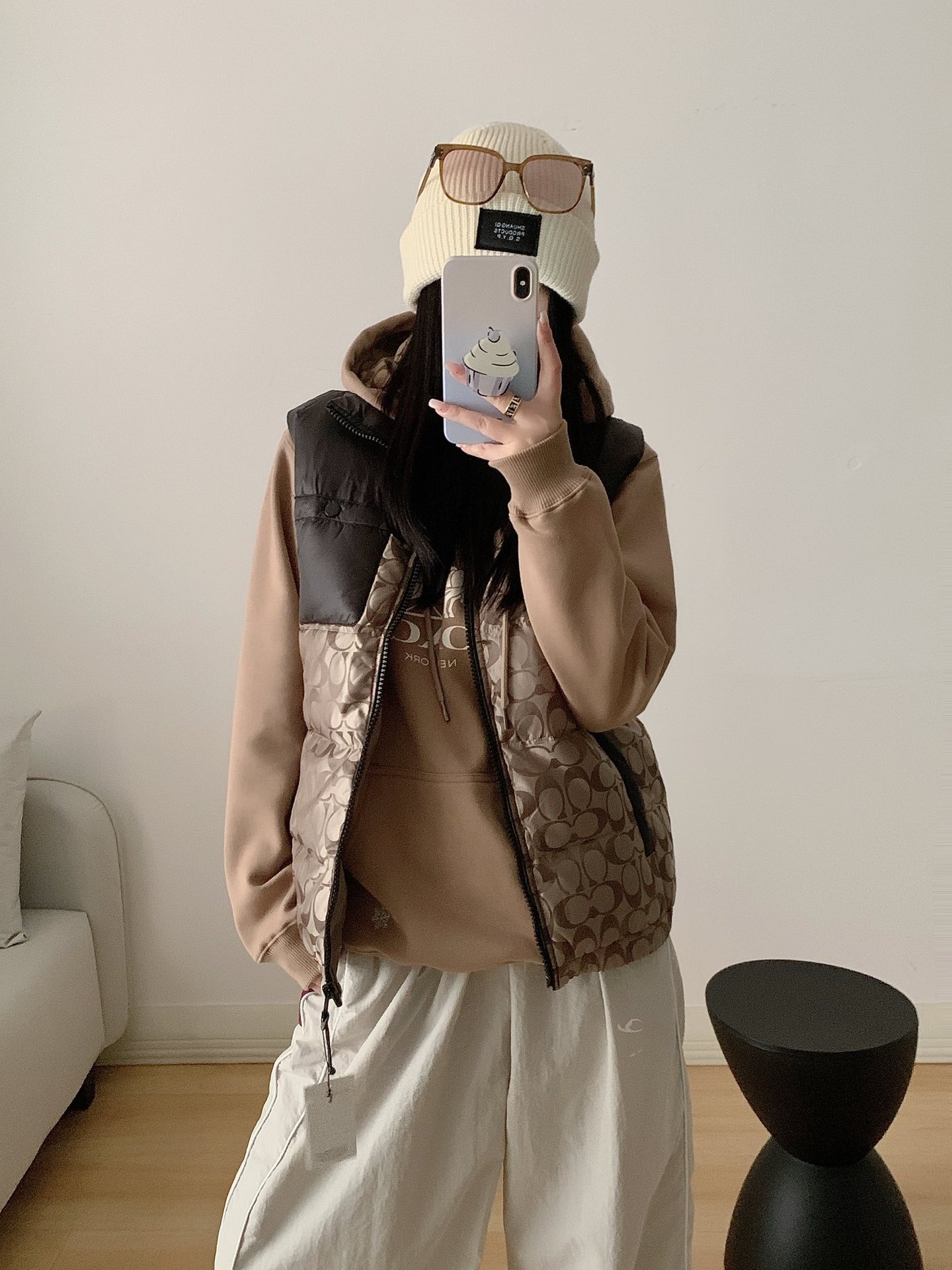 CH Kojia 겨울 남녀 클래식 장로교 C 자형 스티칭 화이트 거위 다운 조끼 캐주얼 올 매치 따뜻한