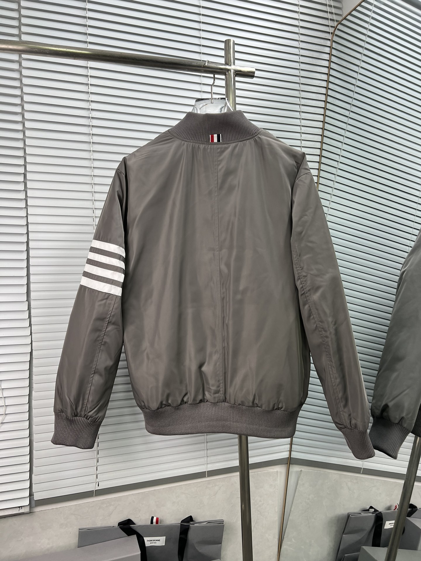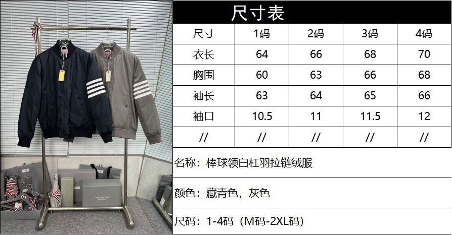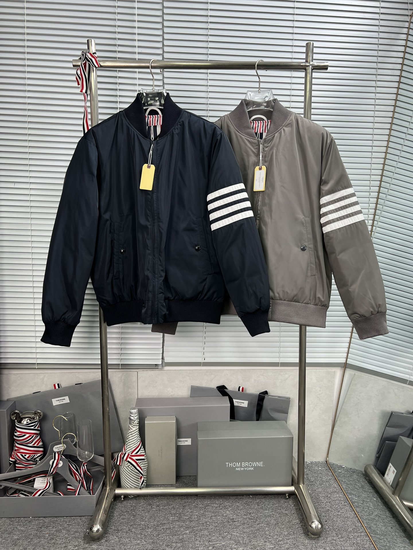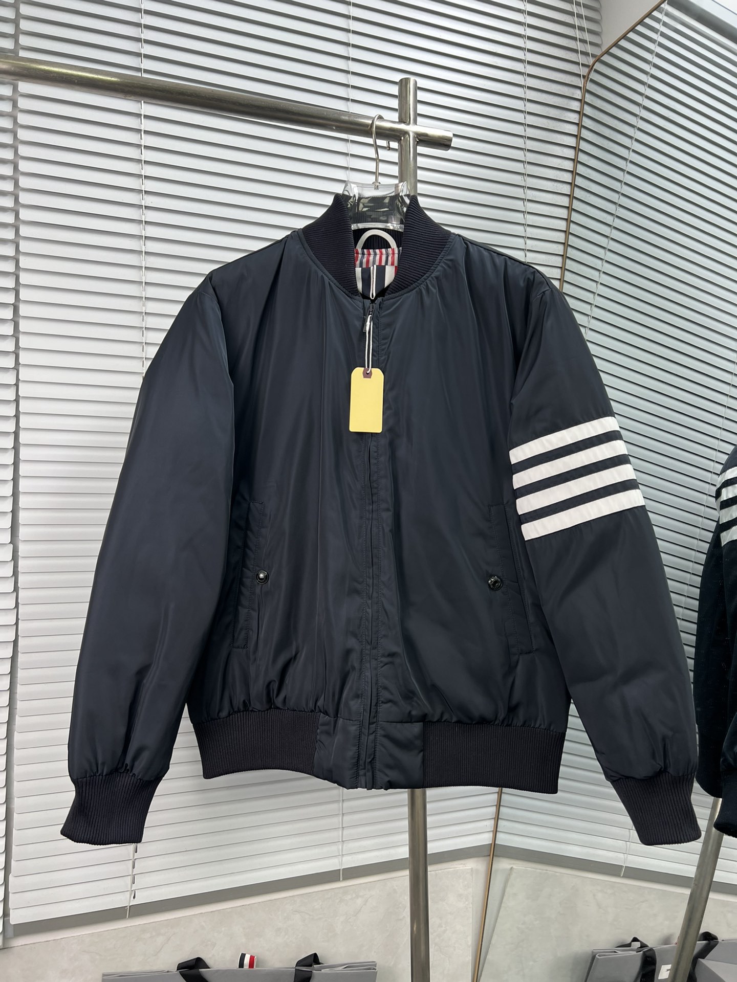 TB 공장 직영 고품질 신상 가을 겨울 네 줄 스트라이프 긴팔 스탠드 칼라 지퍼 남성용 다운 재킷