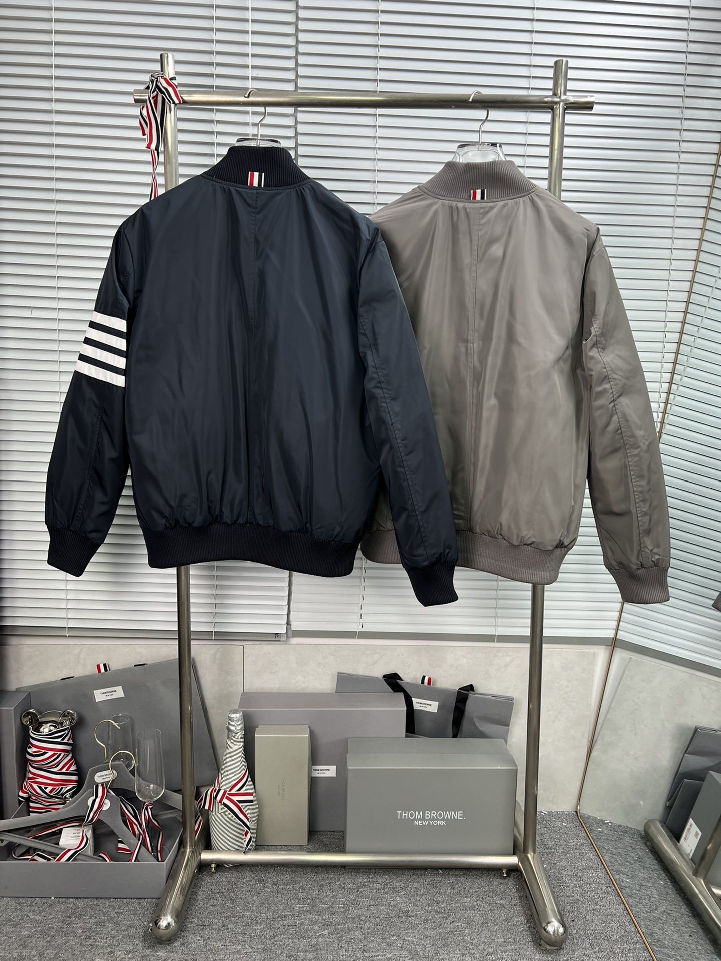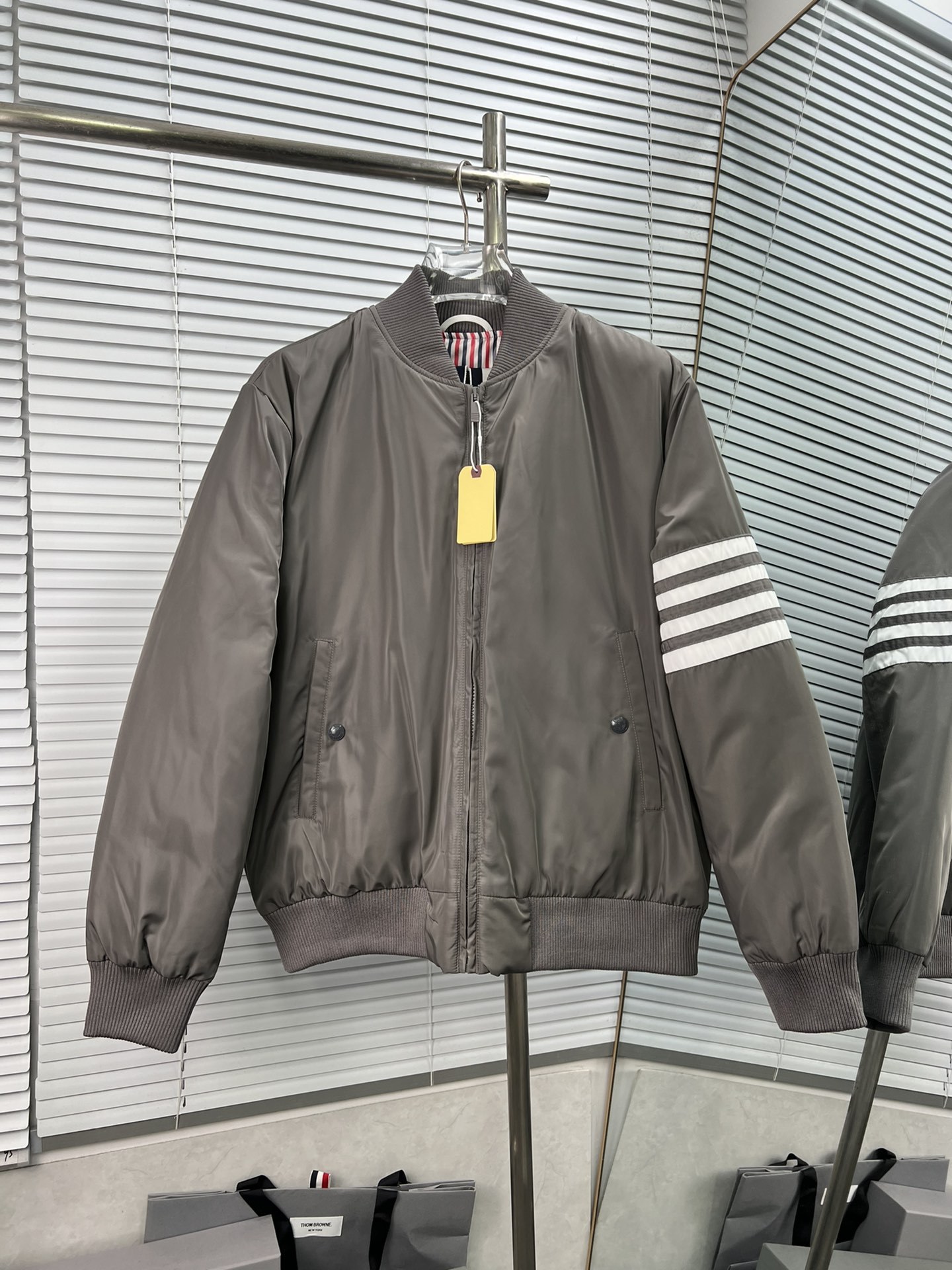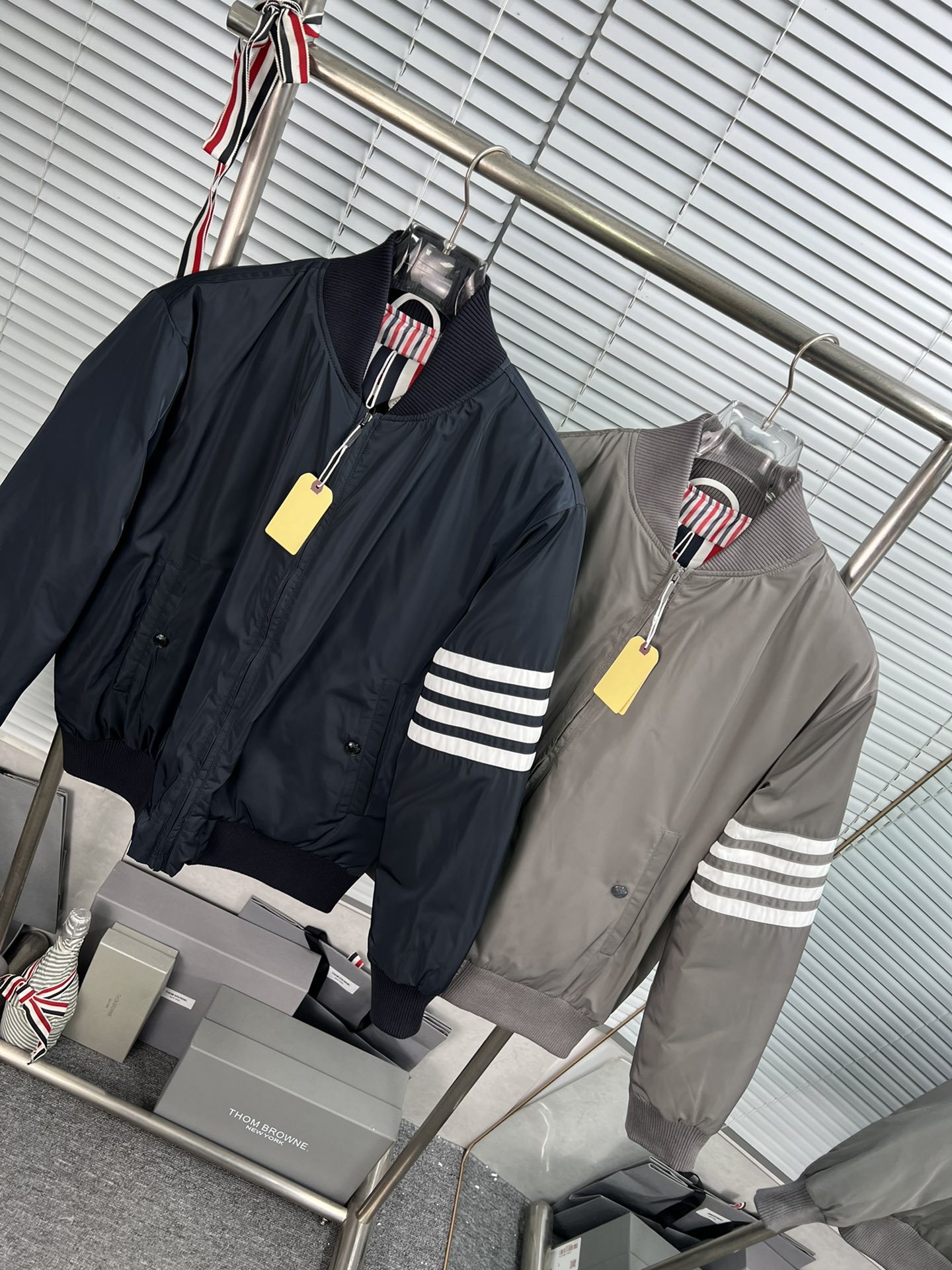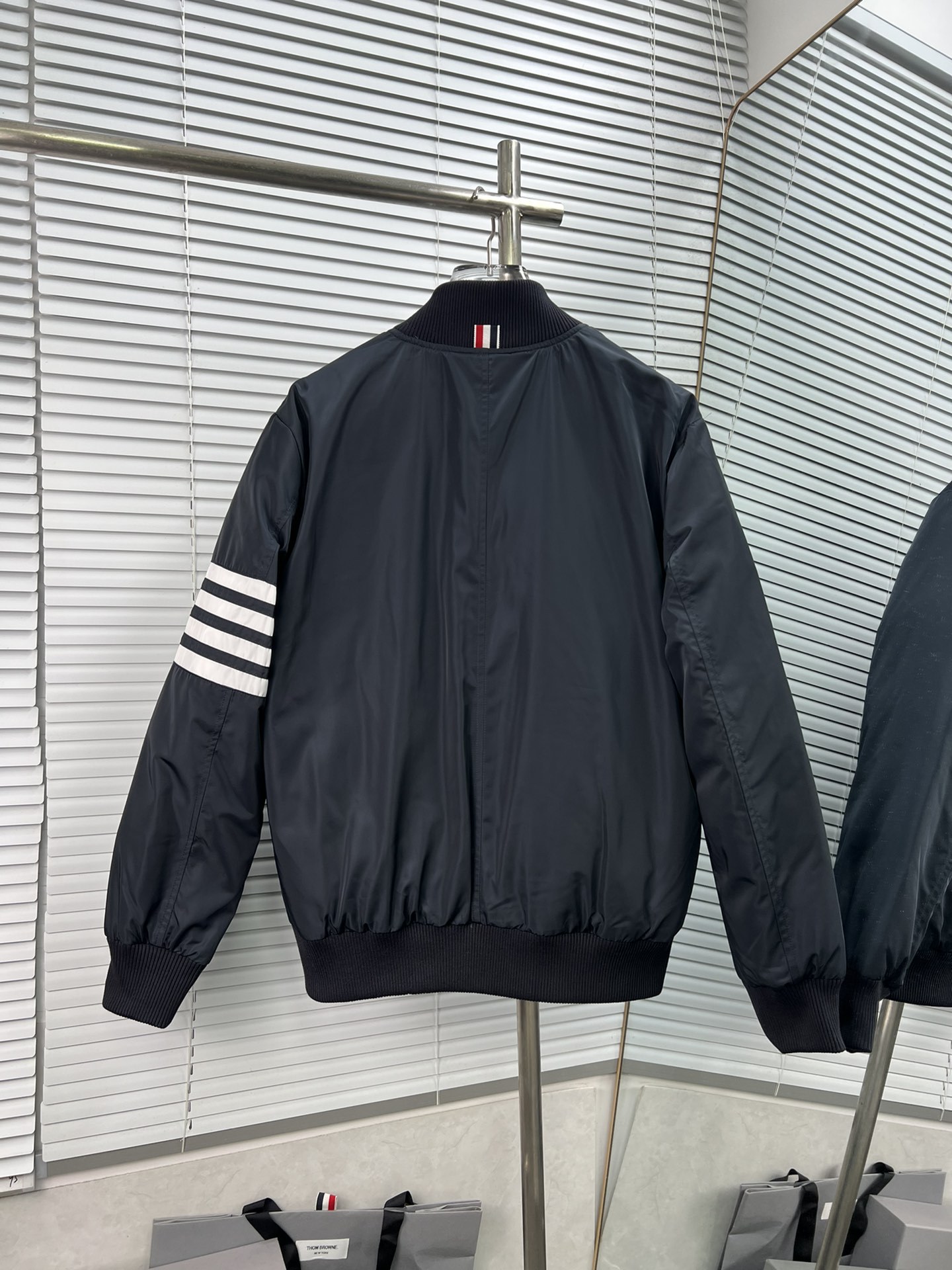 TB 공장 직영 고품질 신상 가을 겨울 네 줄 스트라이프 긴팔 스탠드 칼라 지퍼 남성용 다운 재킷