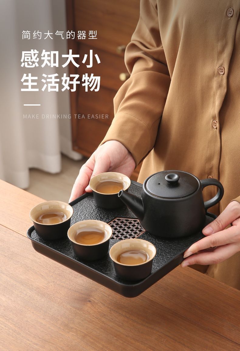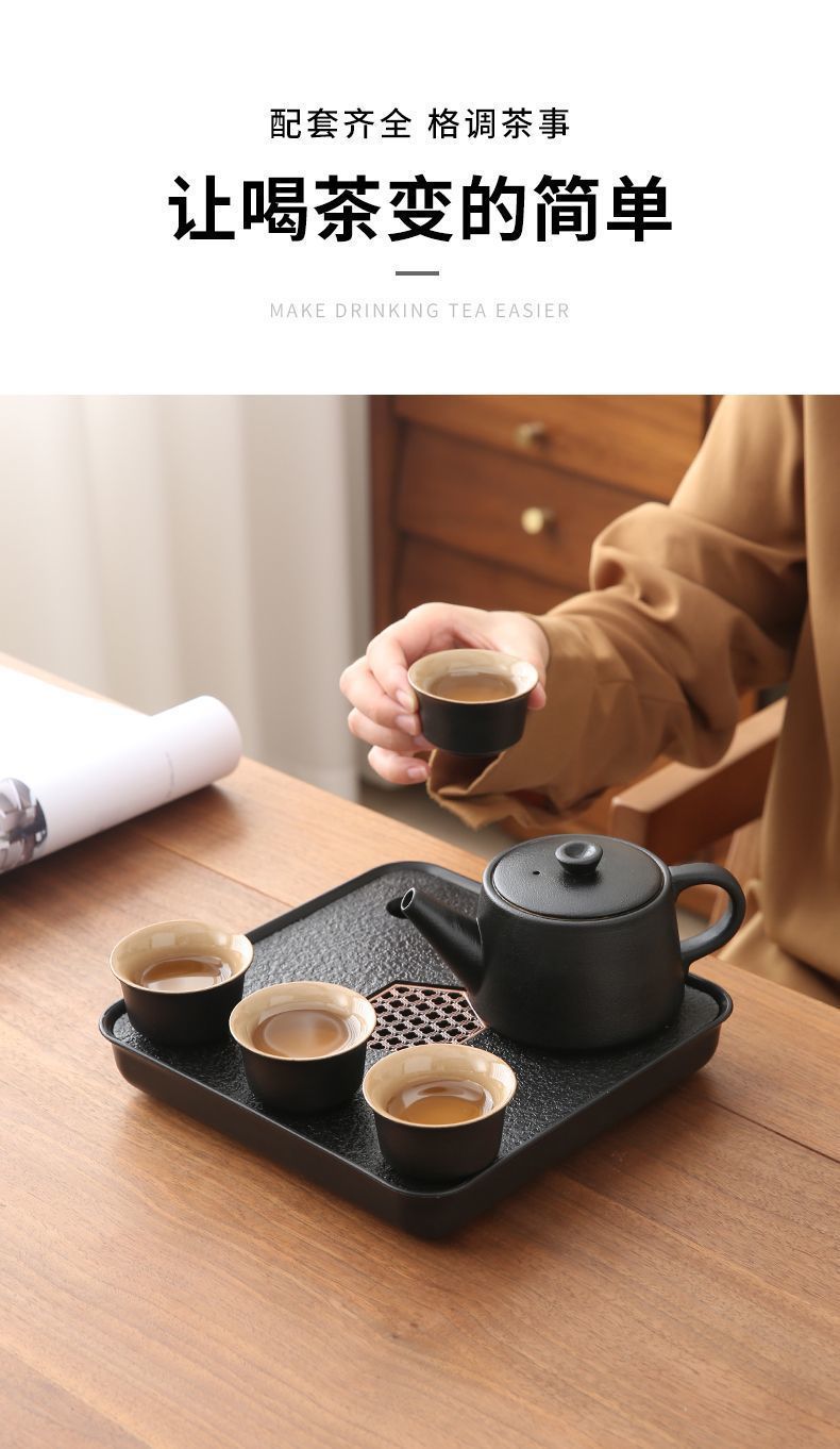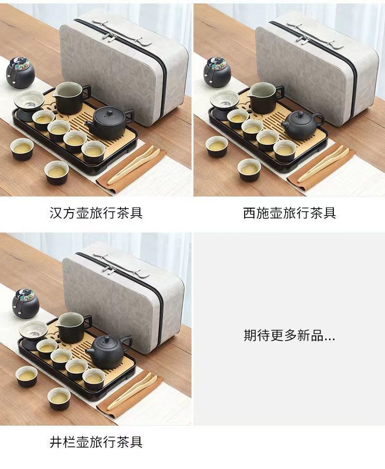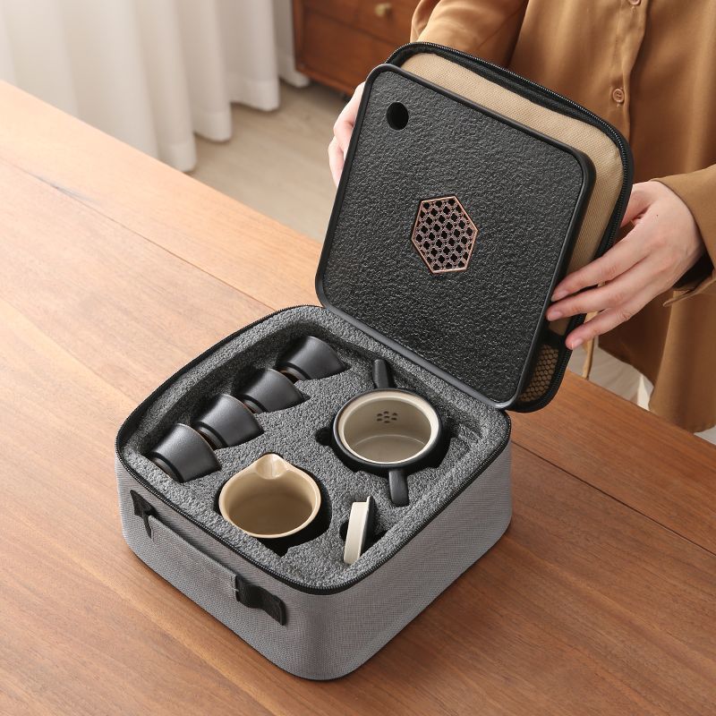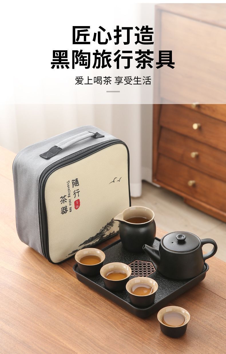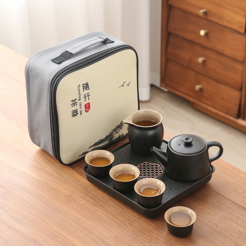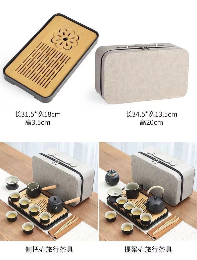 휴대용 여행 쿵푸 차 세트 세트 야외 여행 한 냄비 4 컵 차 캠핑 장비 차 트레이 작은 세트