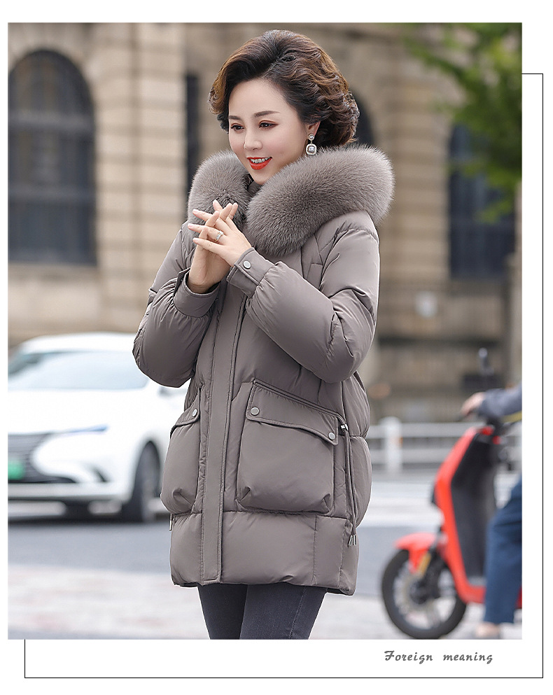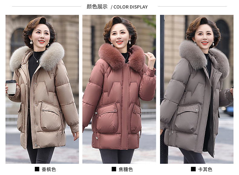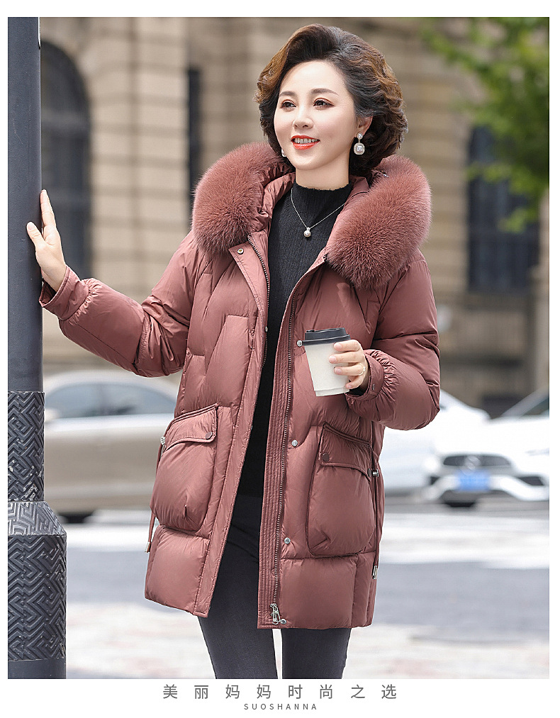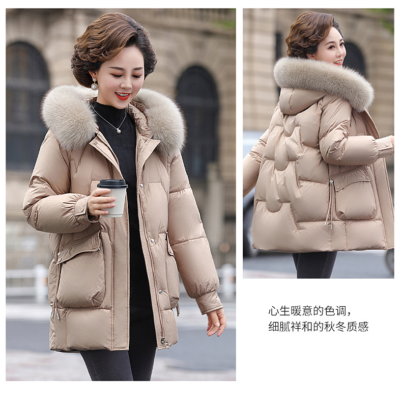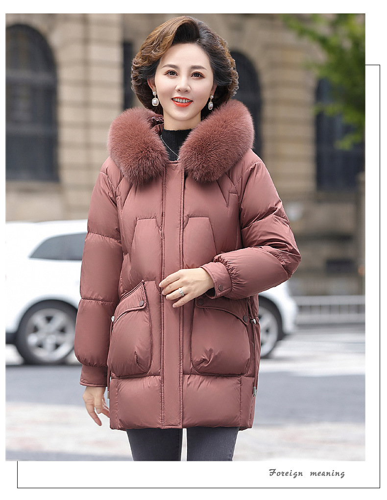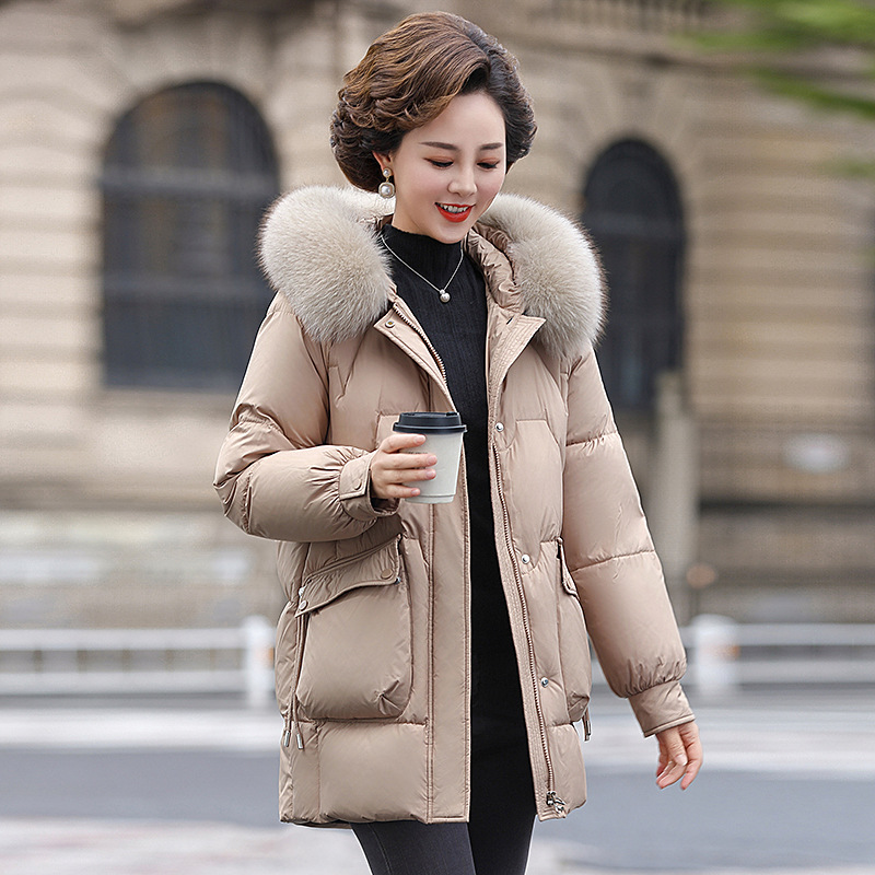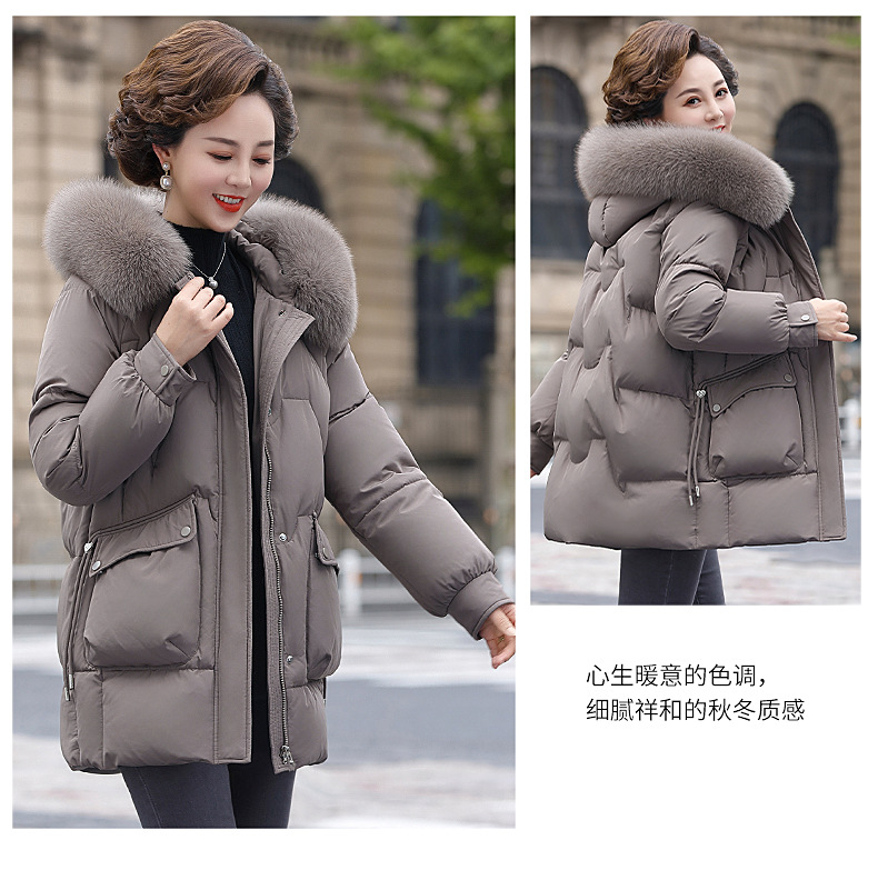 중년 및 노인 다운 재킷 여성 2024 중간 길이의 어머니 겨울 패딩 따뜻한 코튼 패딩 재킷