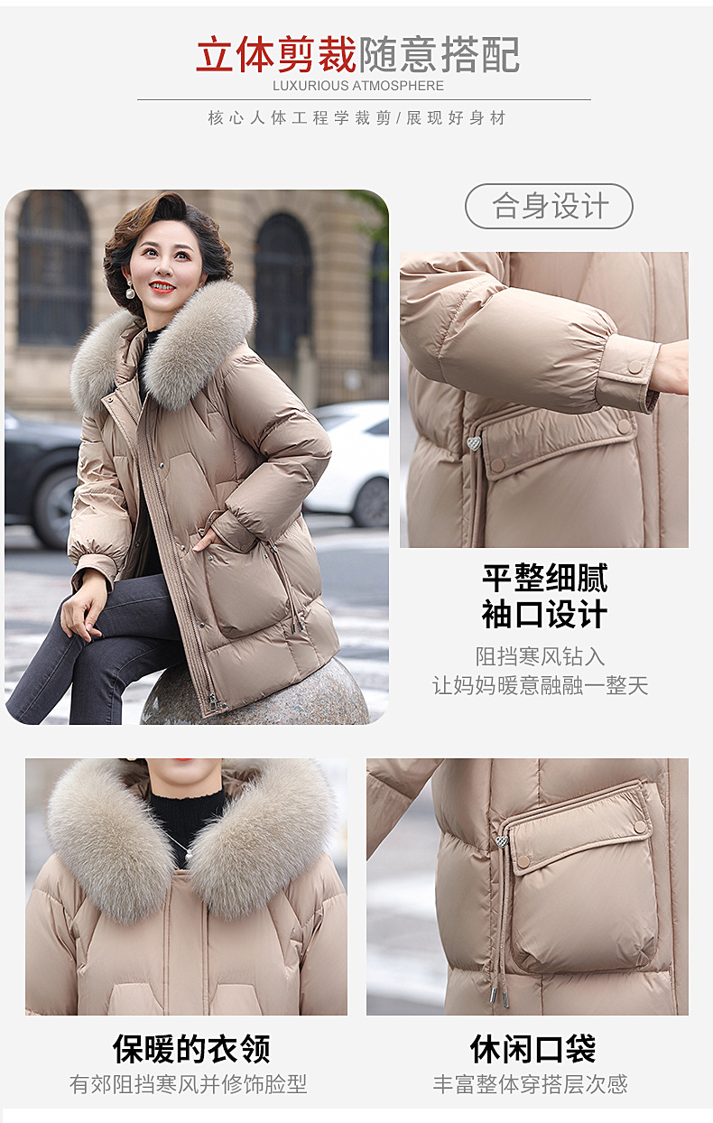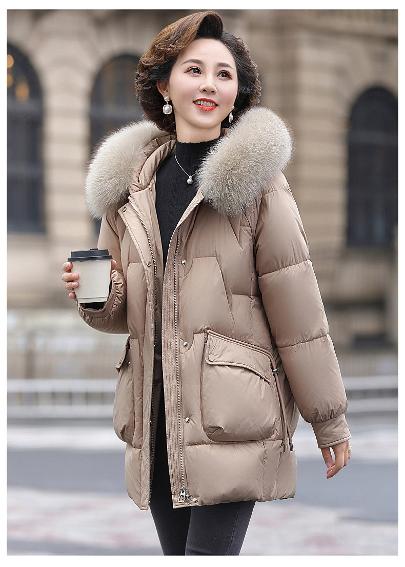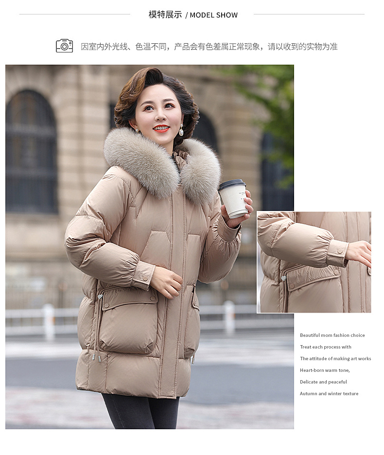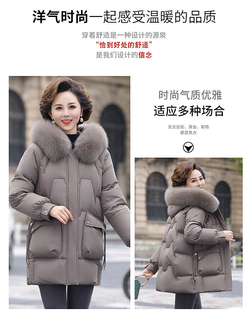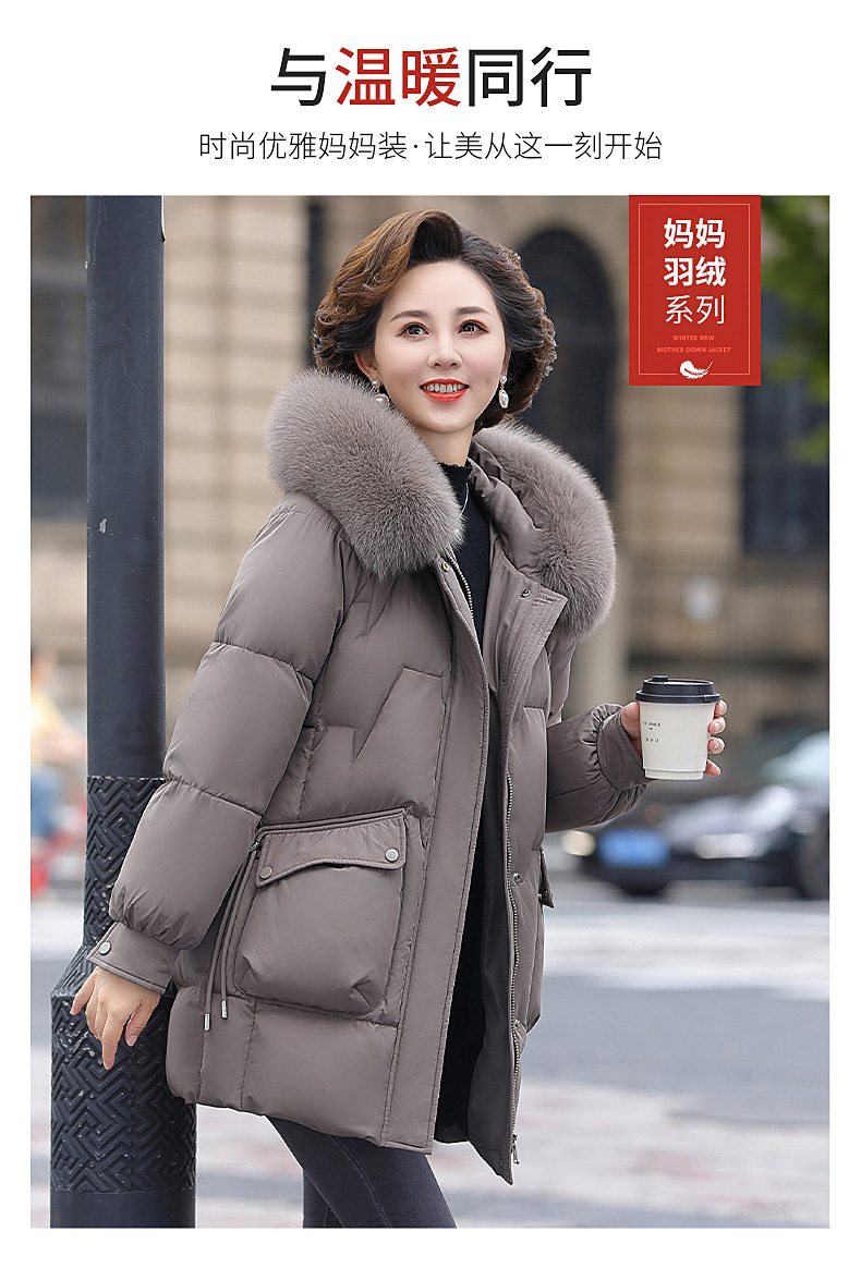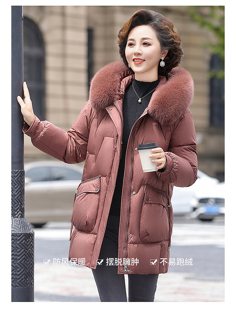 중년 및 노인 다운 재킷 여성 2024 중간 길이의 어머니 겨울 패딩 따뜻한 코튼 패딩 재킷