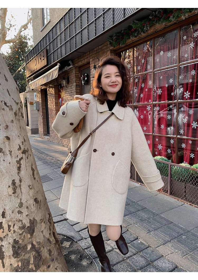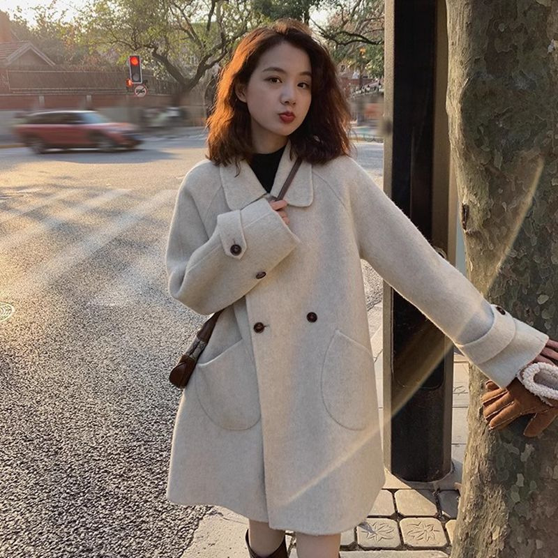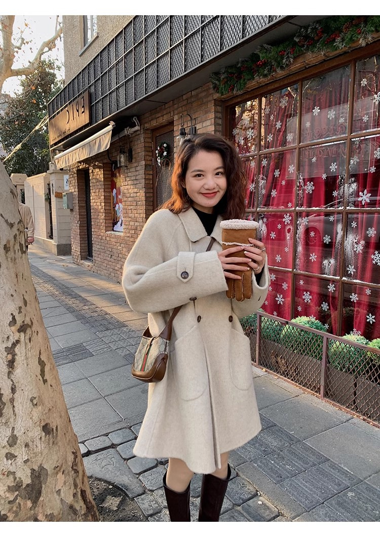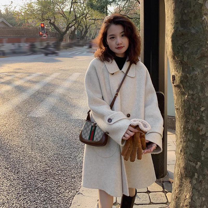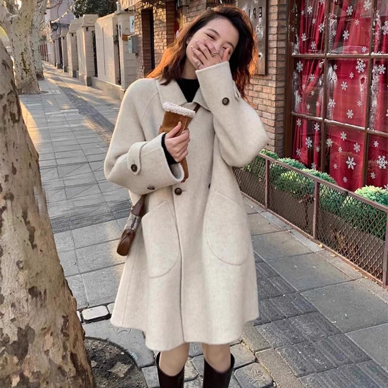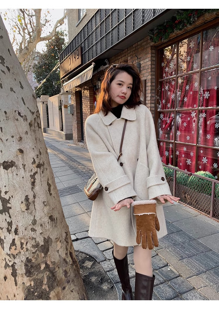 2024 가을과 겨울 새로운 두꺼운 모직 코트 여성용 중장 인형 칼라 케이프 버전 느슨한 모직 코트
