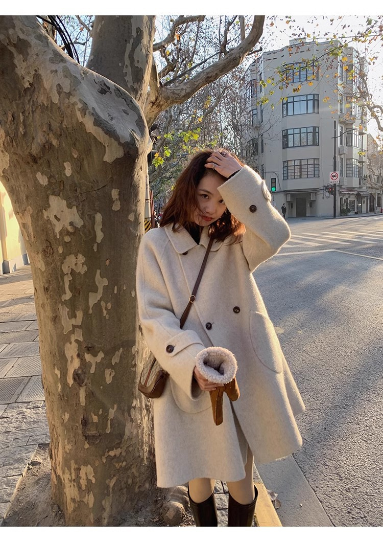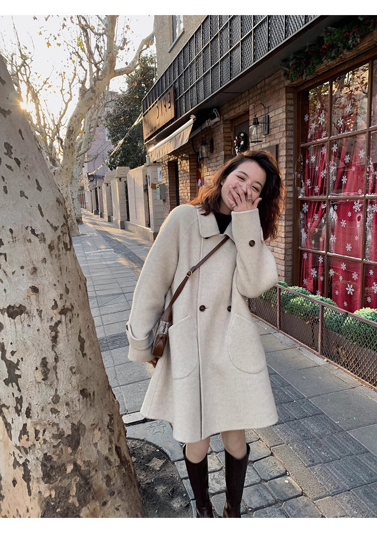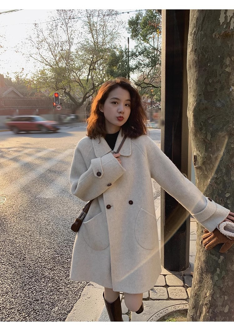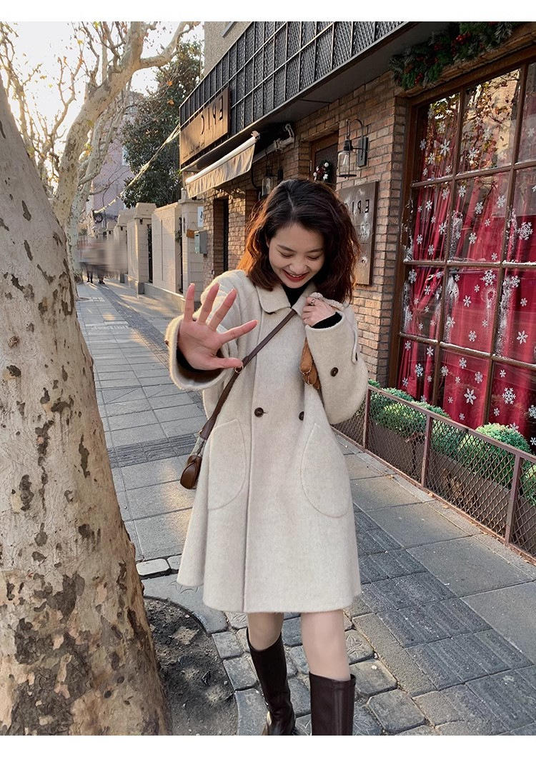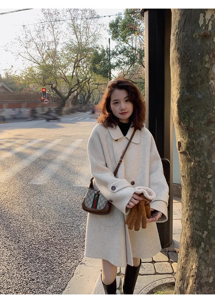 2024 가을과 겨울 새로운 두꺼운 모직 코트 여성용 중장 인형 칼라 케이프 버전 느슨한 모직 코트
