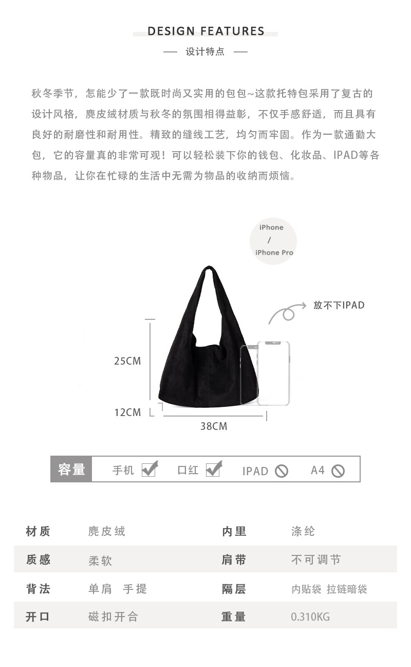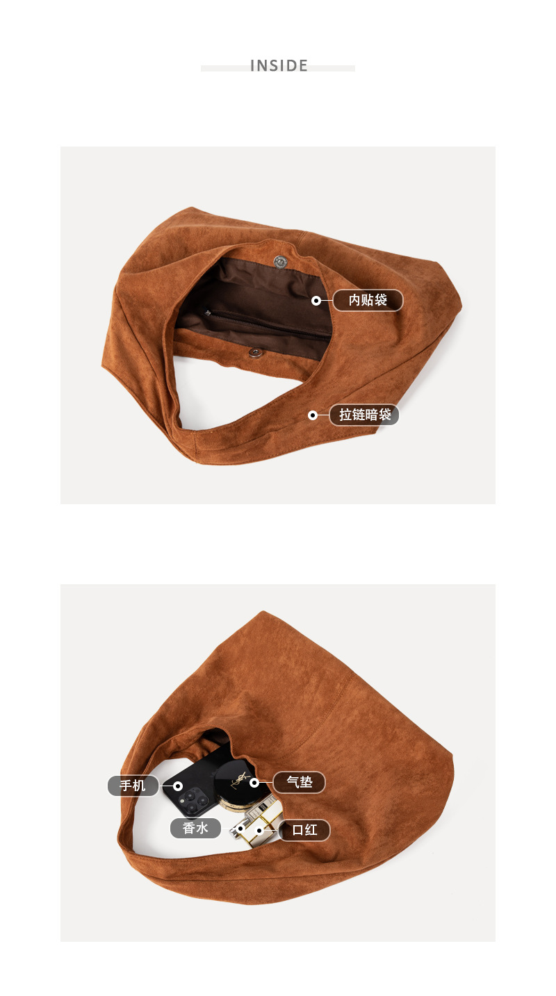 2024 새로운 가을과 겨울 대용량 복고풍 게으른 스타일 숄더백 여성 한국 틈새 스웨이드 토트 백