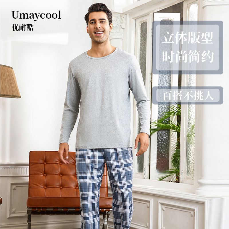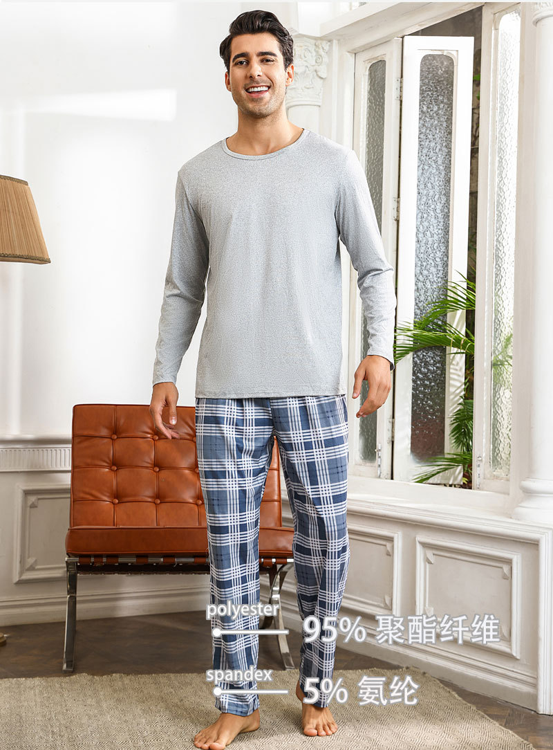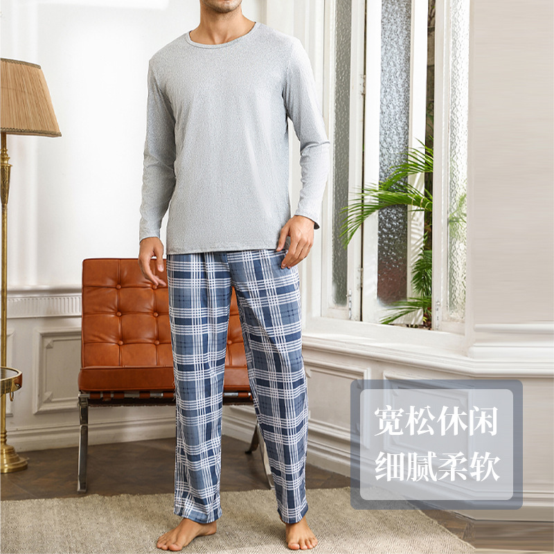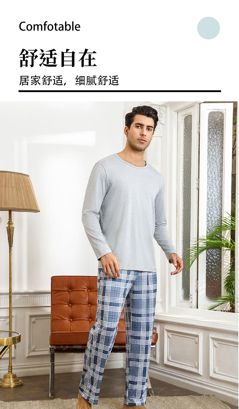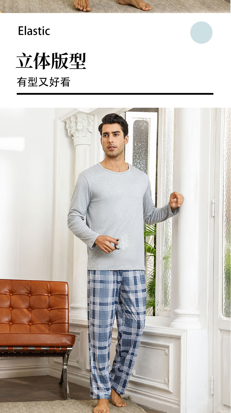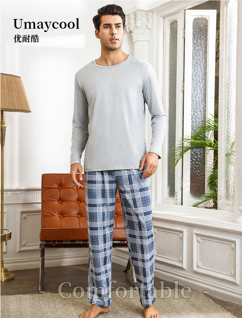 가을 겨울 남성 잠옷 세트 긴팔 긴바지 캐주얼 외출복 편안한 홈웨어 투피스 세트 해외 직구