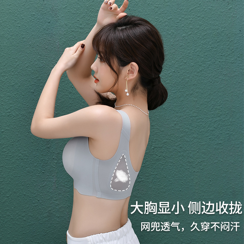 큰 가슴을 가진 여성을 위한 아름다운 등이 없는 브라, 작은 푸쉬업, 반고정식, 새로운 초박형 메쉬 통기성 V 넥