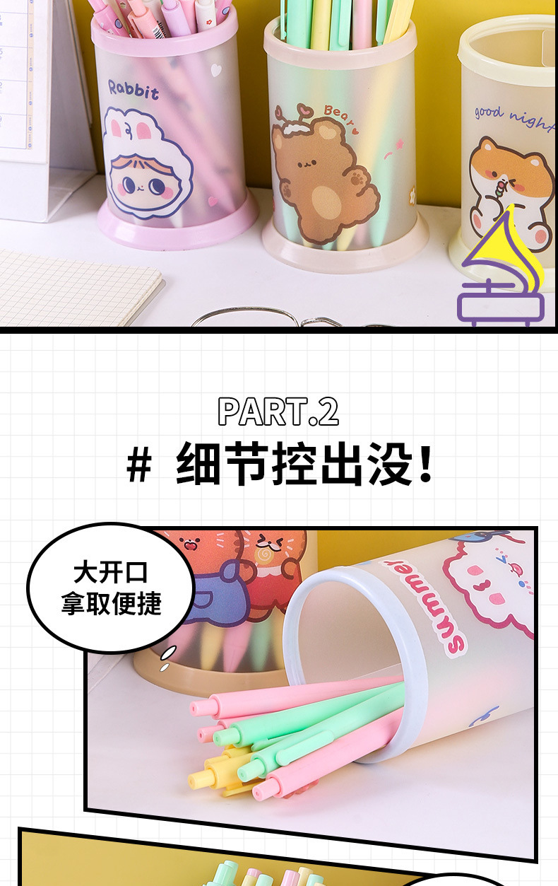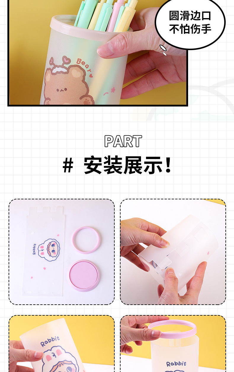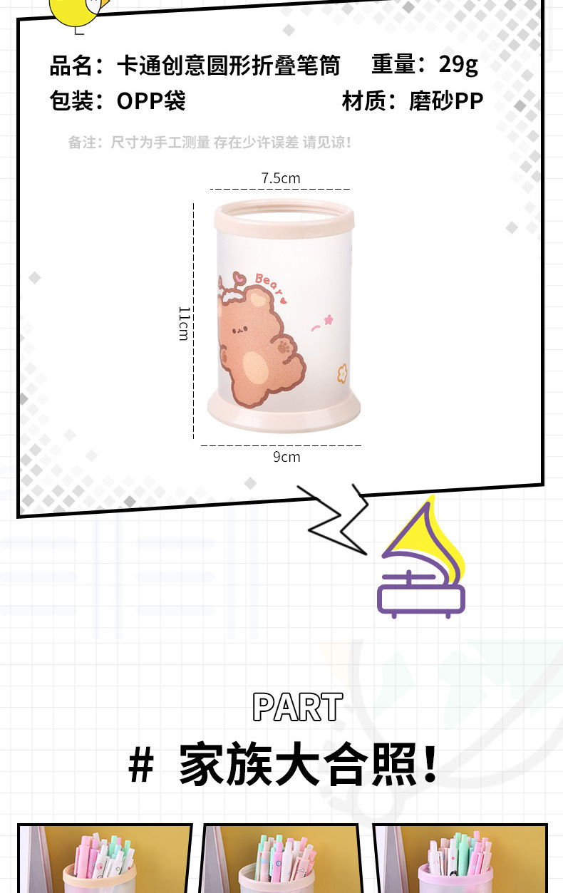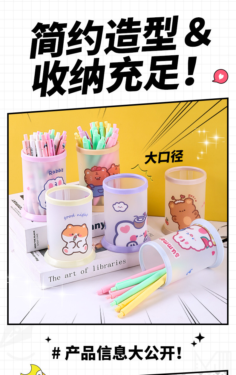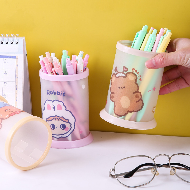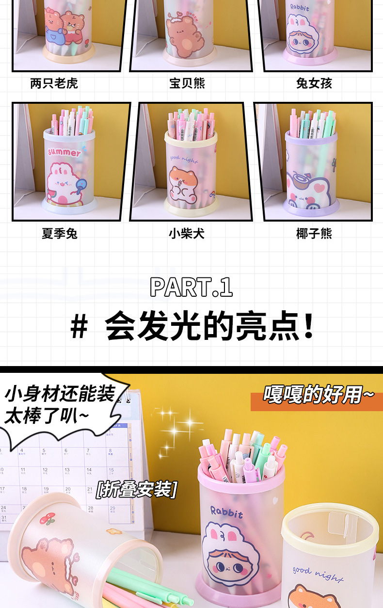 창조적 인 접이식 펜 코너 다기능 데스크탑 사무실 저장 상자 만화 펜 상자 어린이 귀여운 문구 라운드 펜 배럴