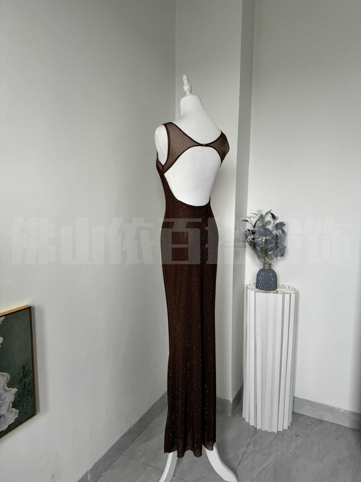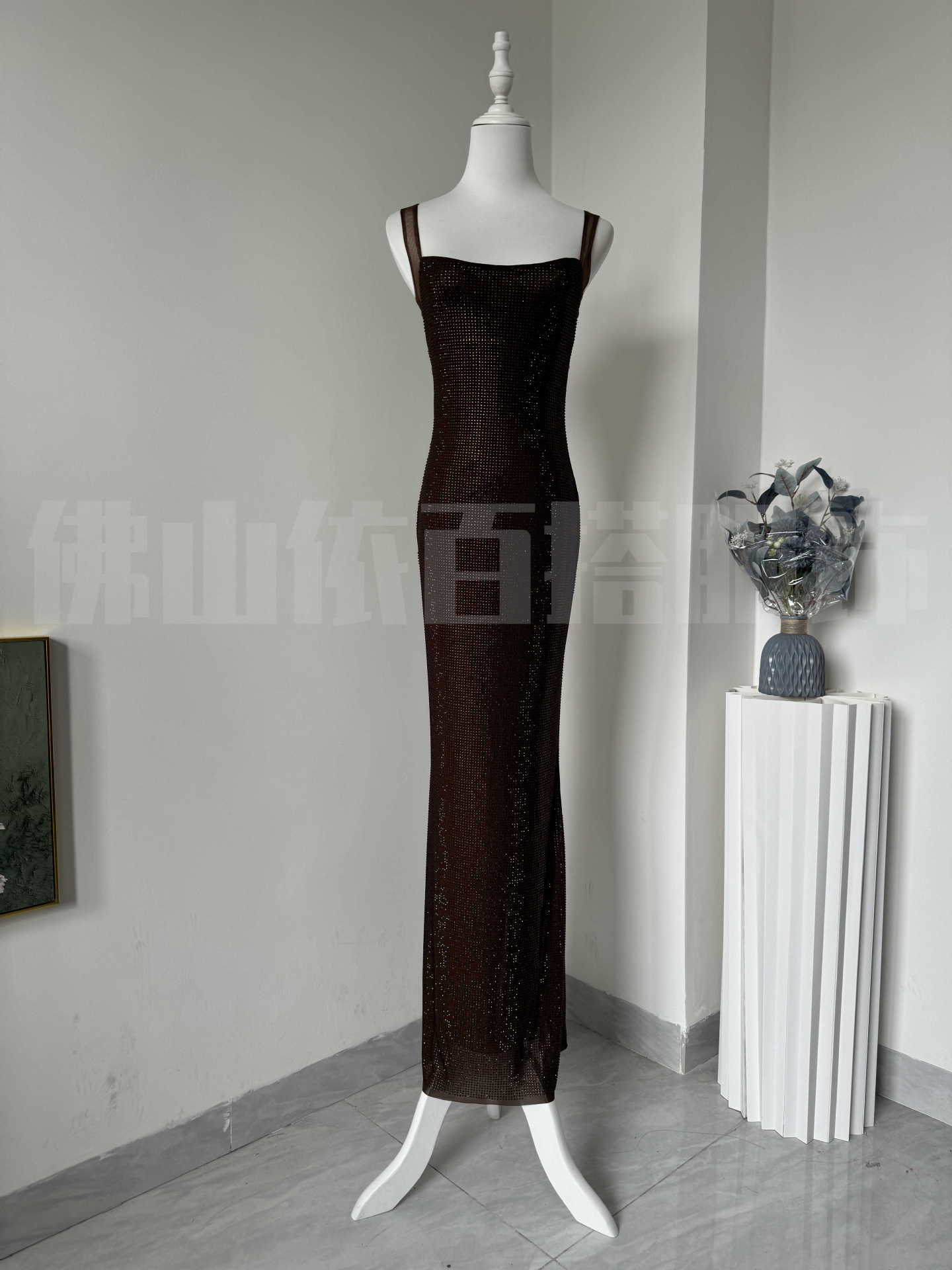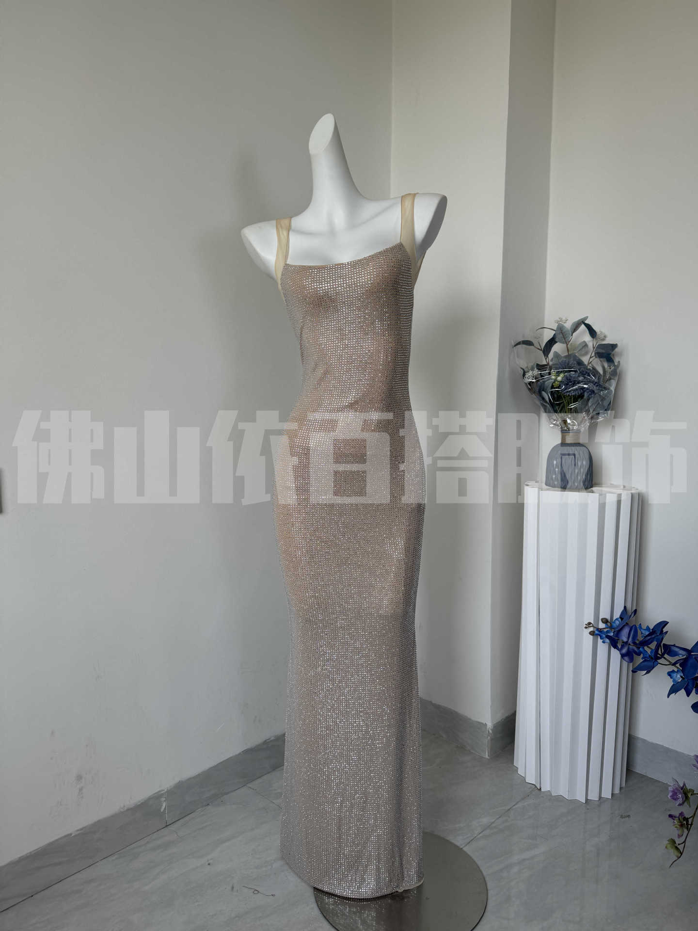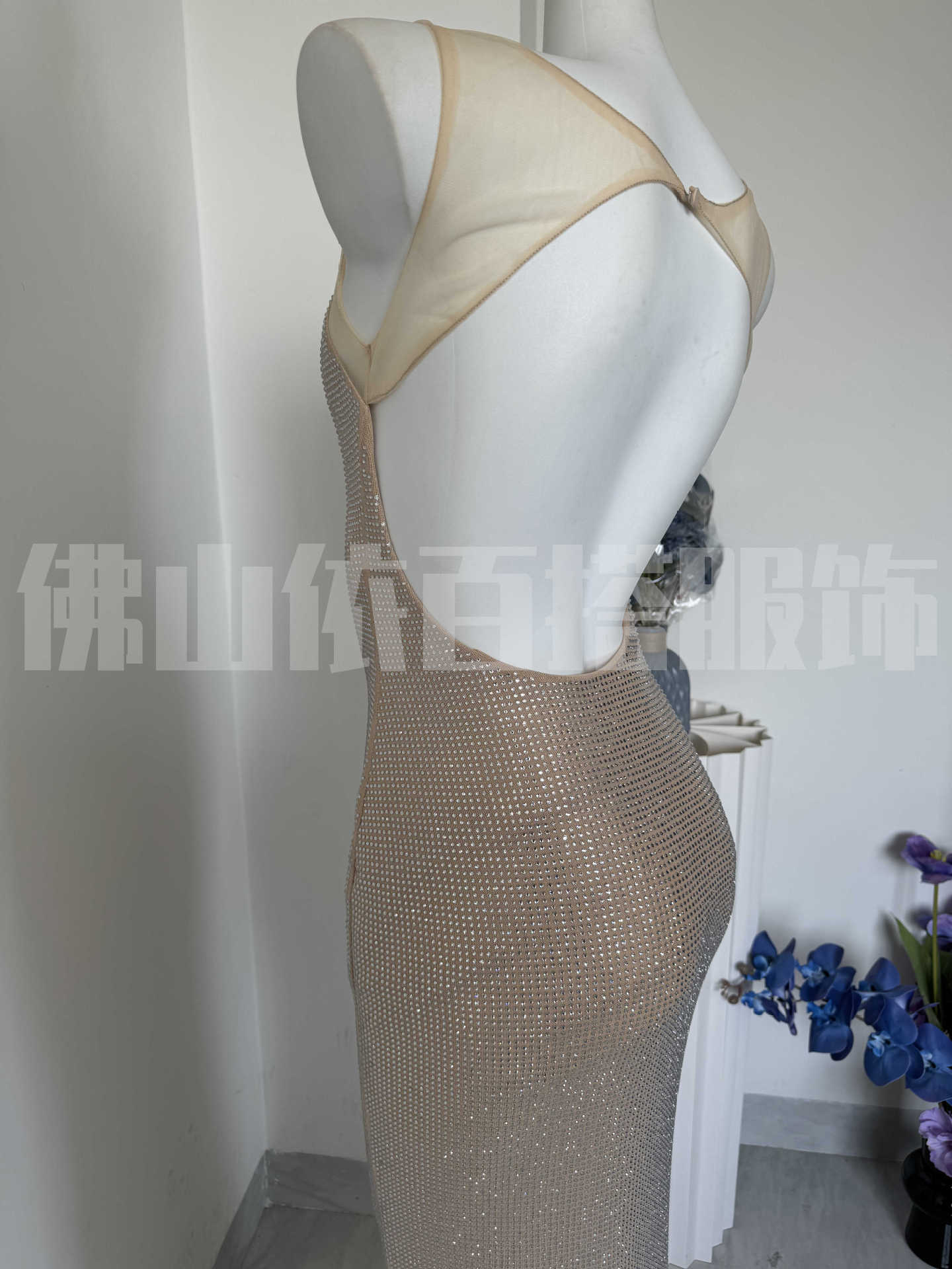 국경 간 유럽과 미국 새로운 슈퍼 플래시 핫 드릴링 저녁 원피스 로우 칼라 힙 원피스 타이트 슬링 원피스 하이 엔드 센스