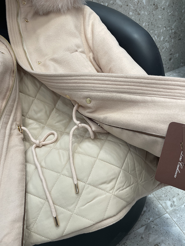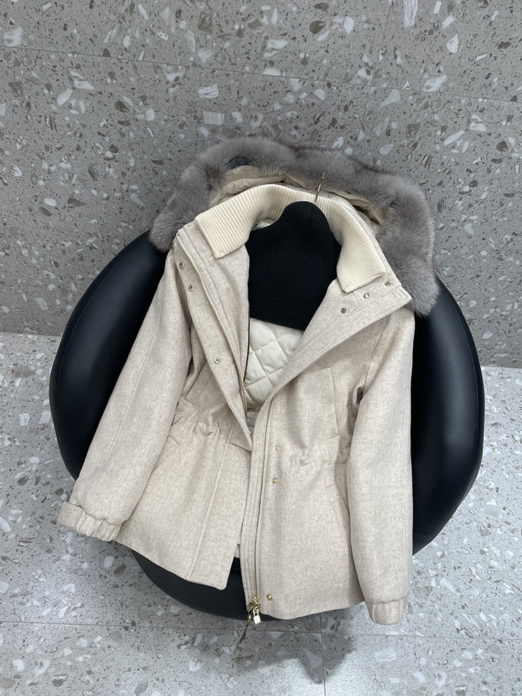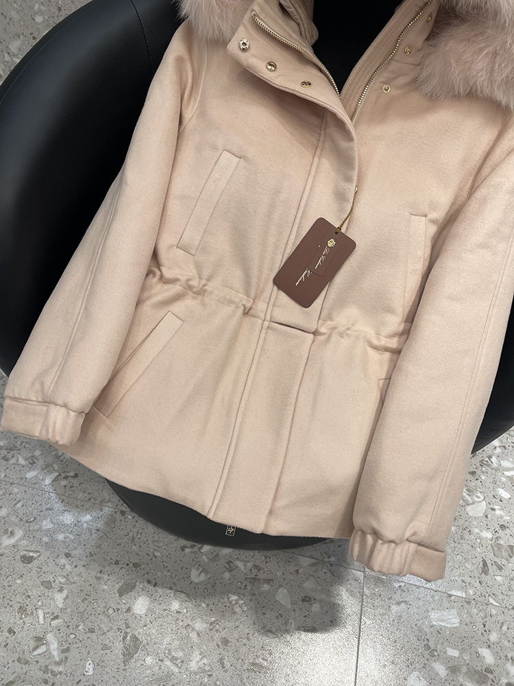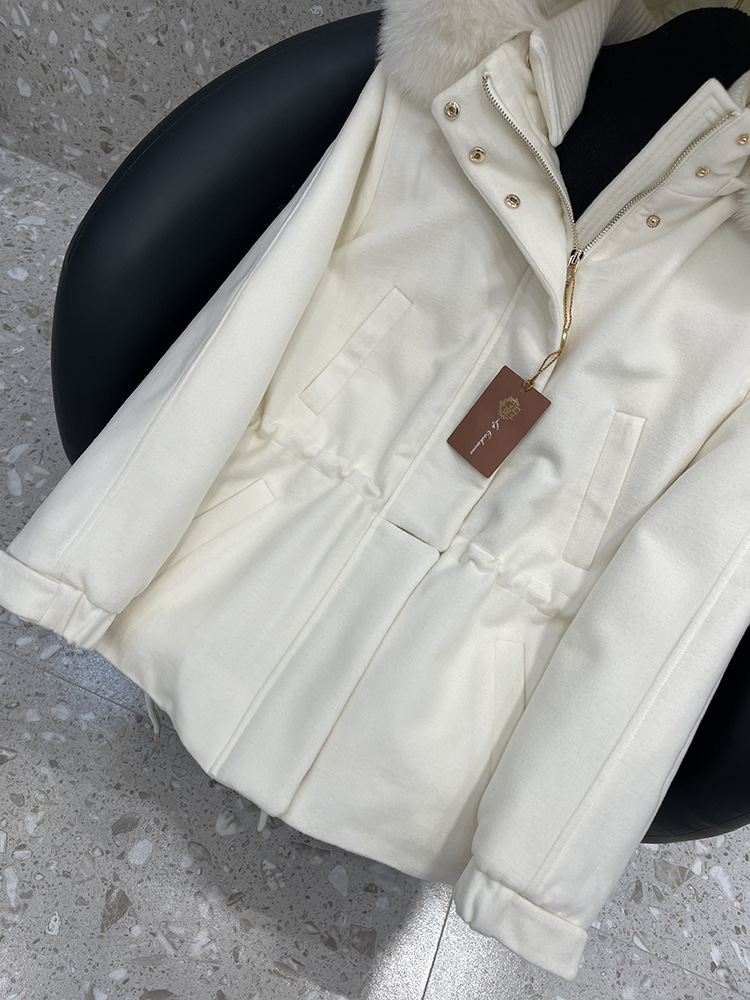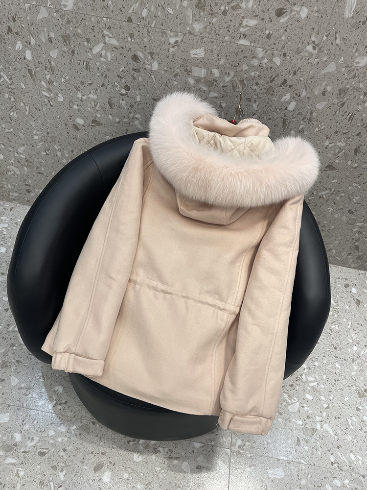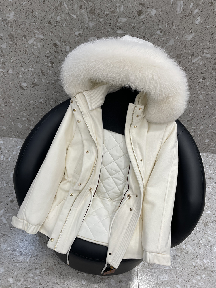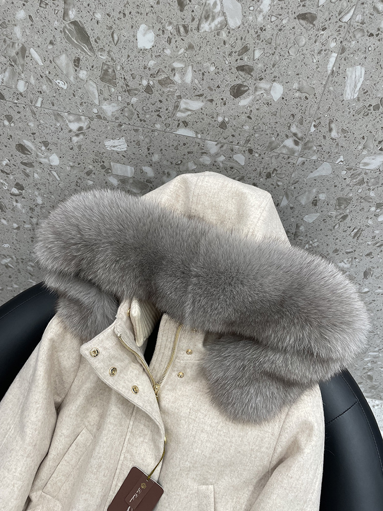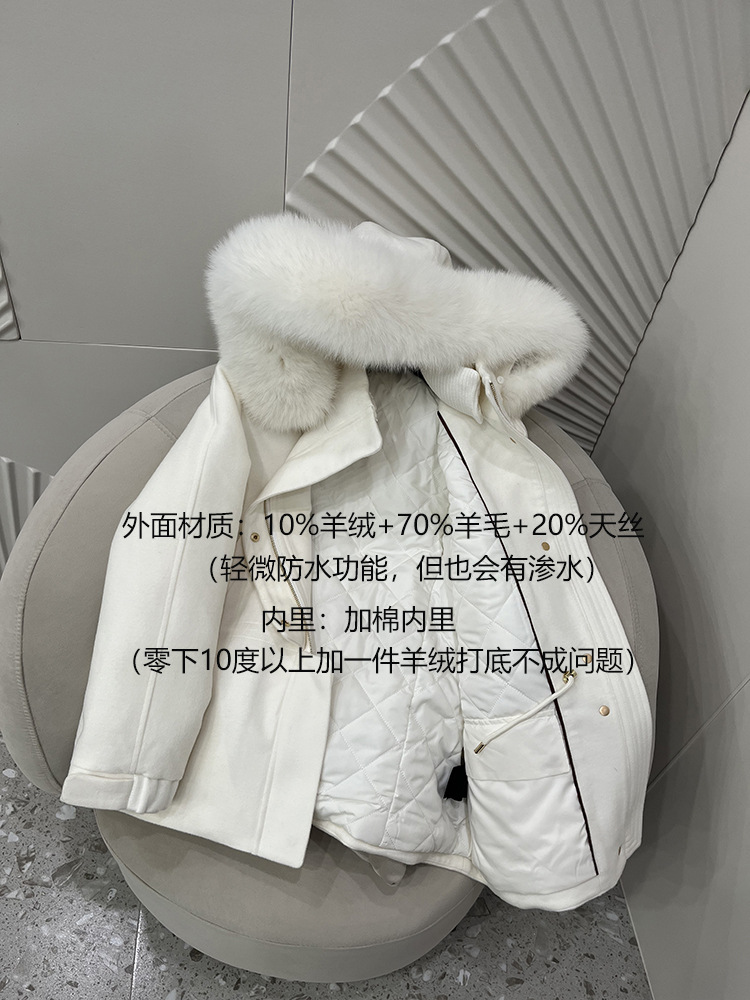 2025 가을 겨울 신상 LP 동일 스타일 크림 화이트 스키복 여우털 칼라 짧은 울 모직 코트 여성용