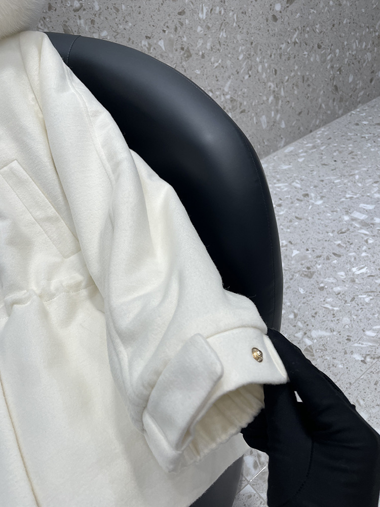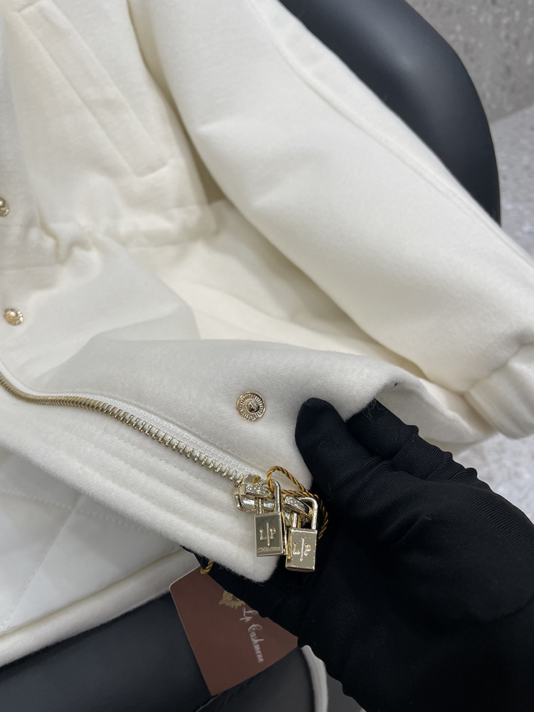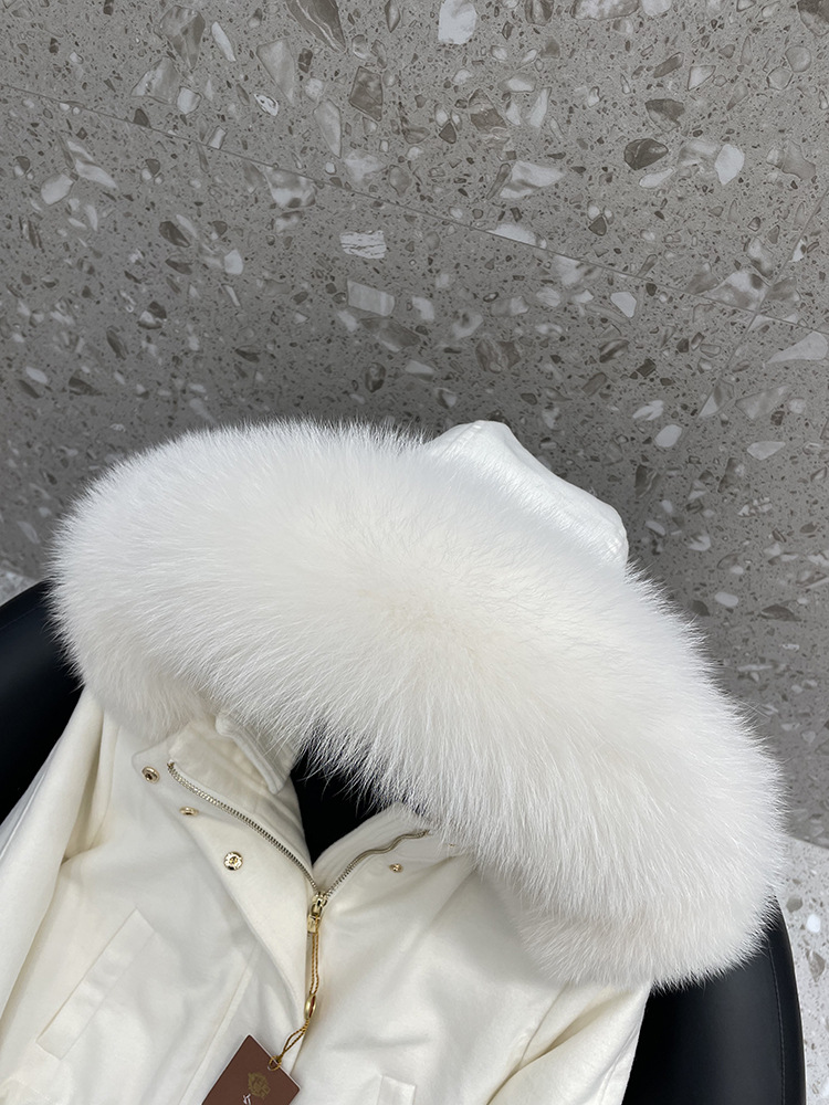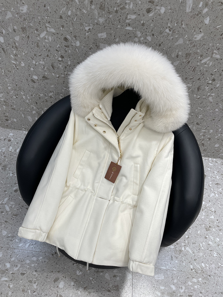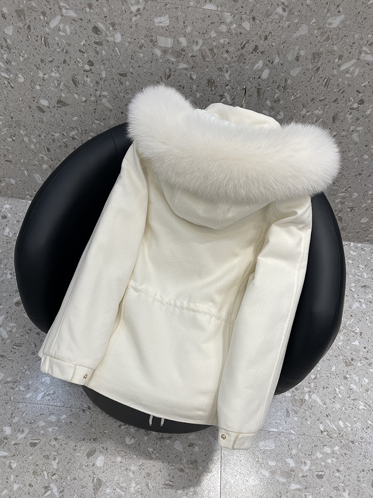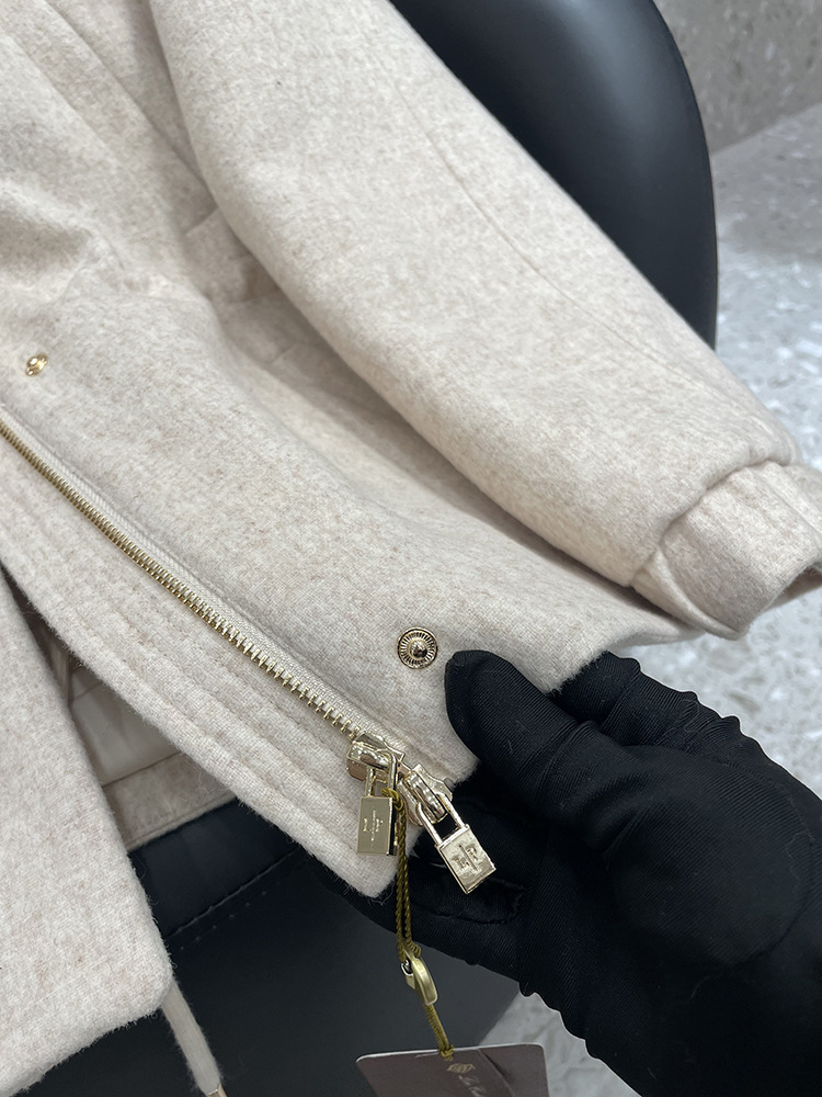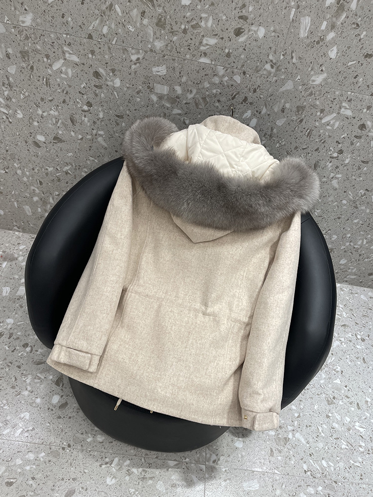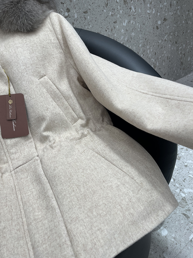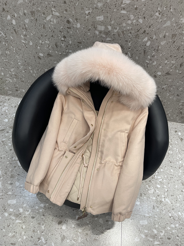 2025 가을 겨울 신상 LP 동일 스타일 크림 화이트 스키복 여우털 칼라 짧은 울 모직 코트 여성용