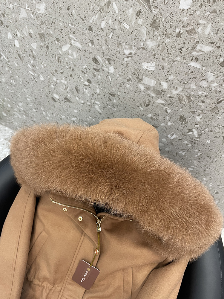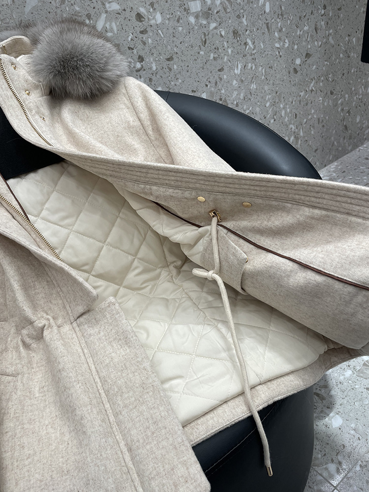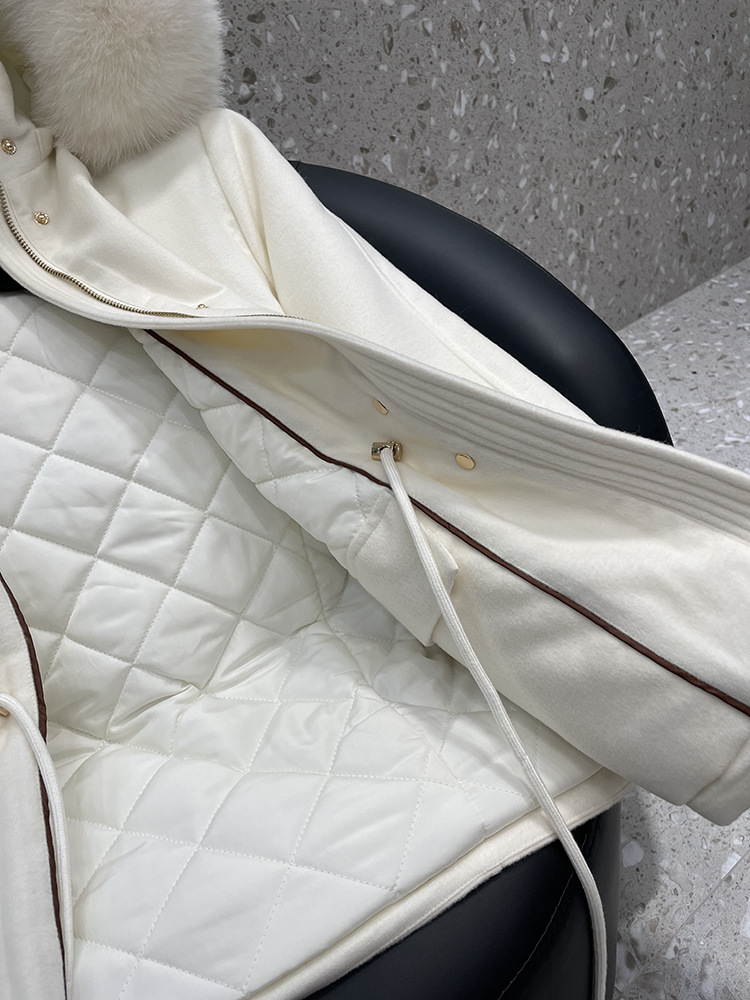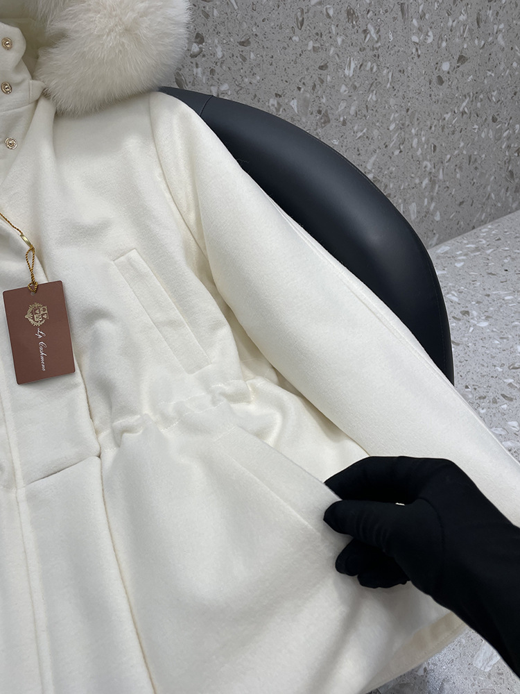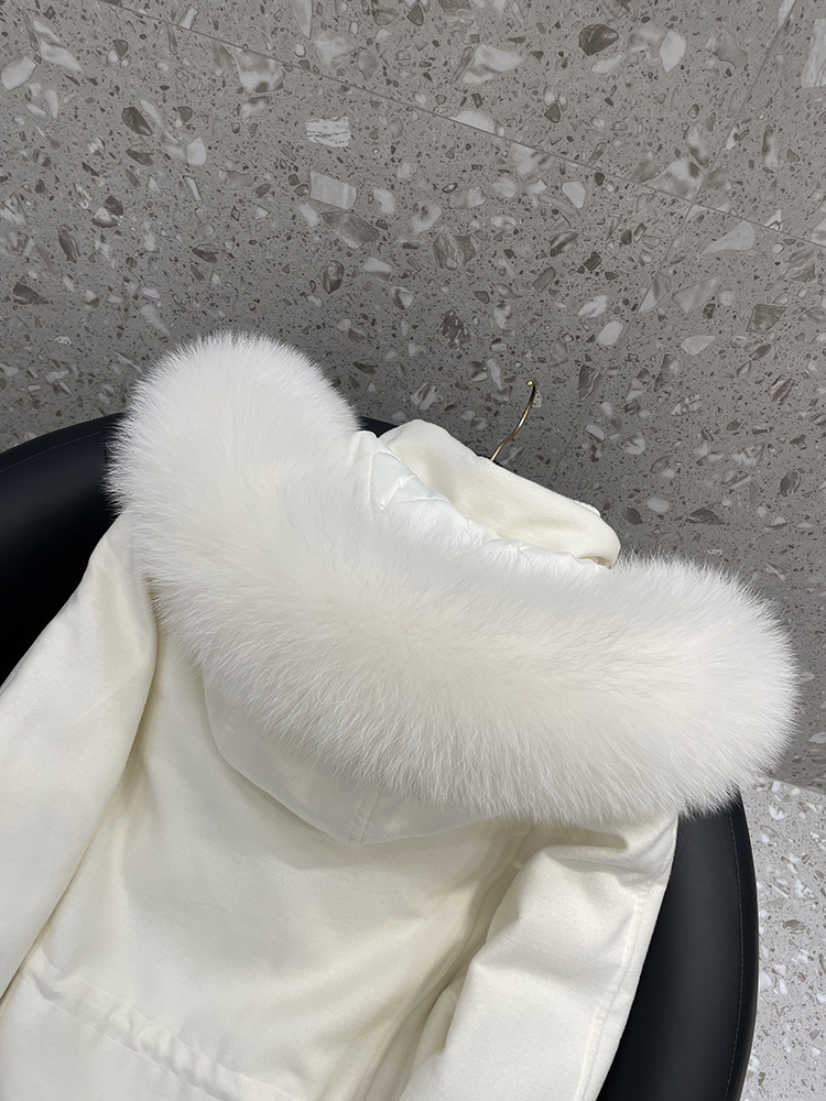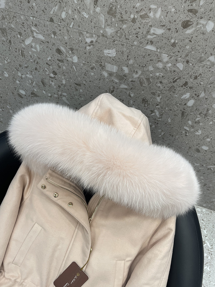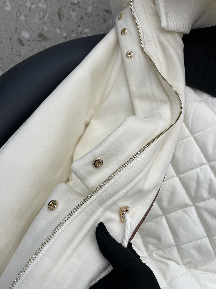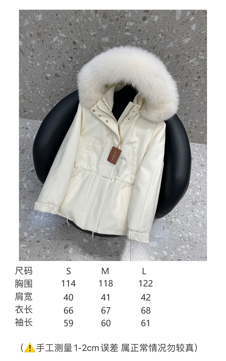 2025 가을 겨울 신상 LP 동일 스타일 크림 화이트 스키복 여우털 칼라 짧은 울 모직 코트 여성용