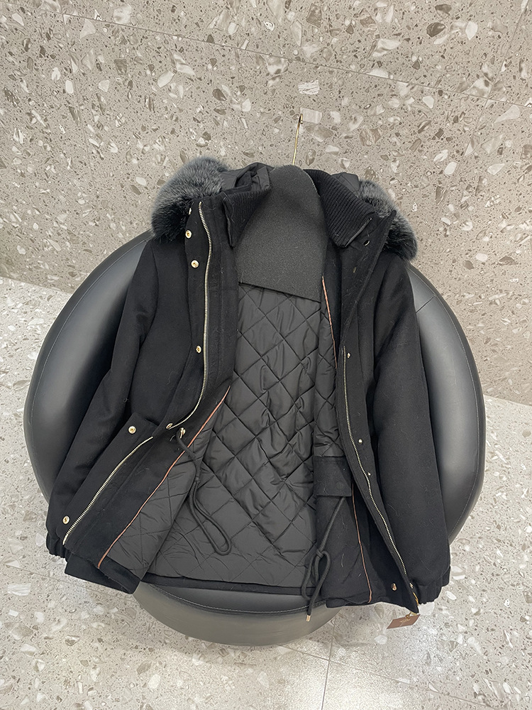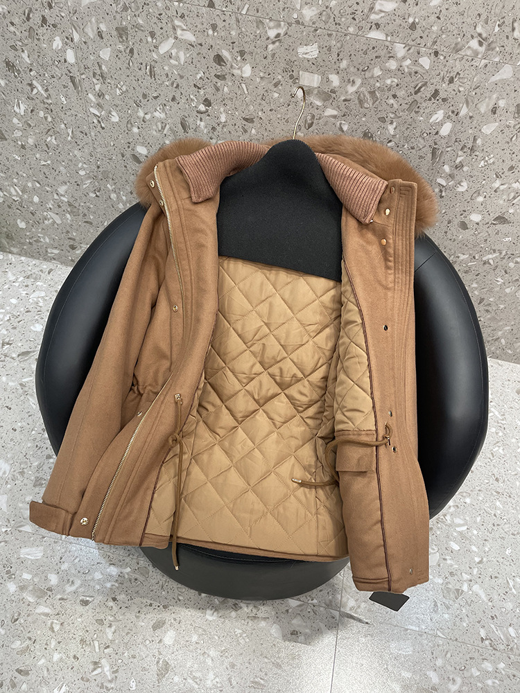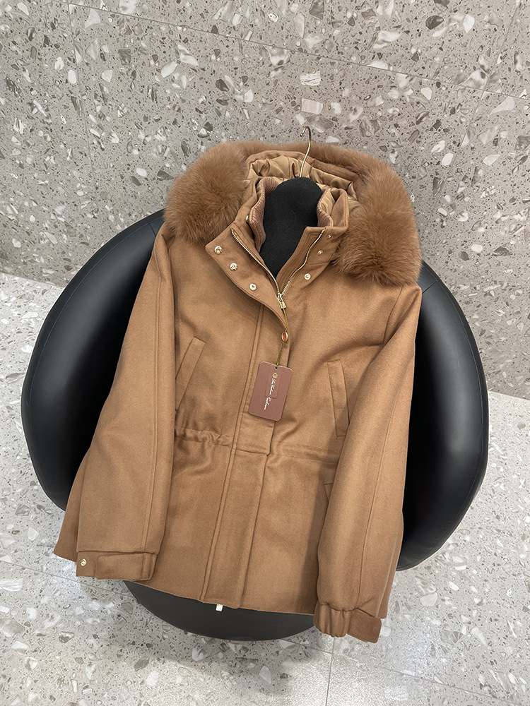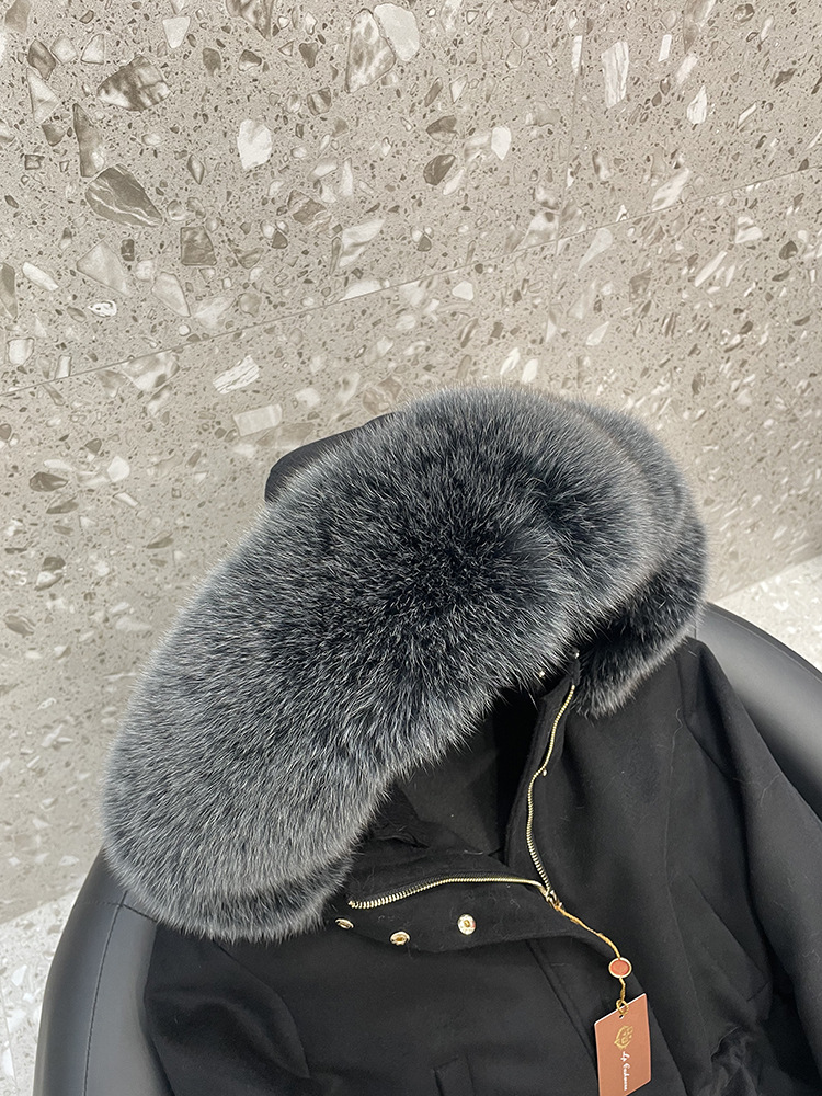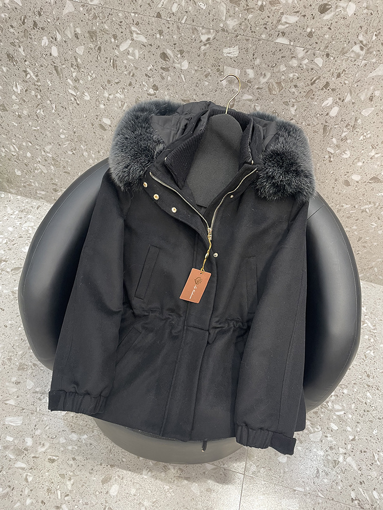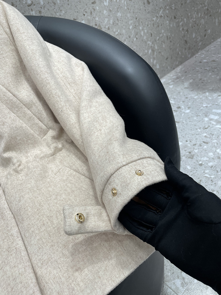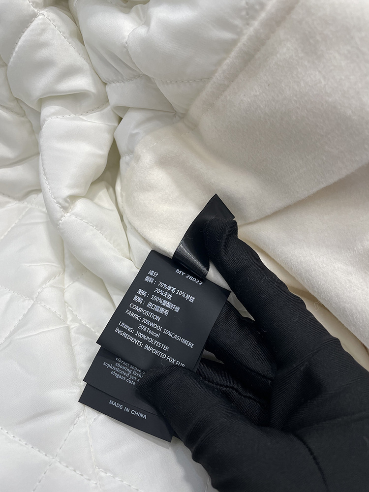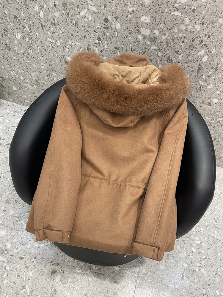 2025 가을 겨울 신상 LP 동일 스타일 크림 화이트 스키복 여우털 칼라 짧은 울 모직 코트 여성용