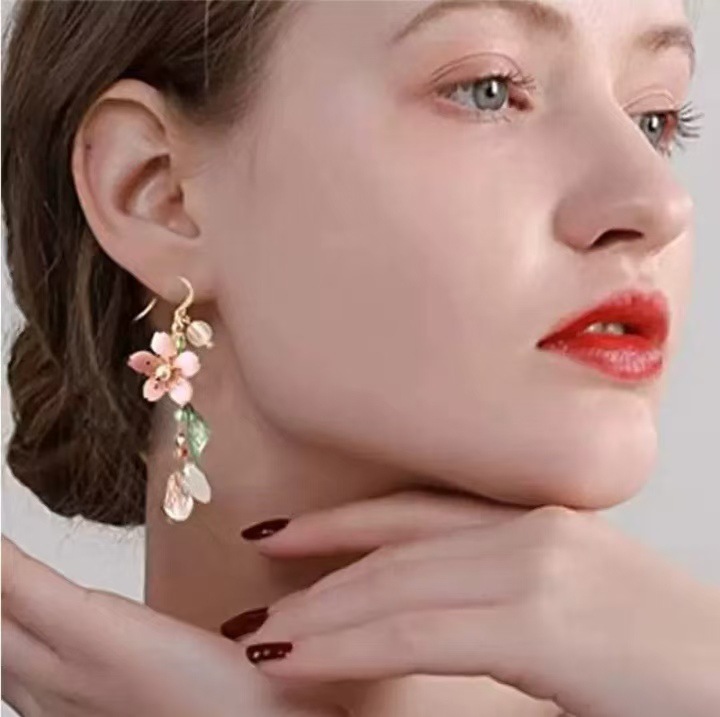 크로스보더 아마존 신제품, 달콤하고 아름다운 꽃무늬 태슬 롱 귀걸이, 여성용 귀걸이, 독창적이고 레트로한 틈새 디자인