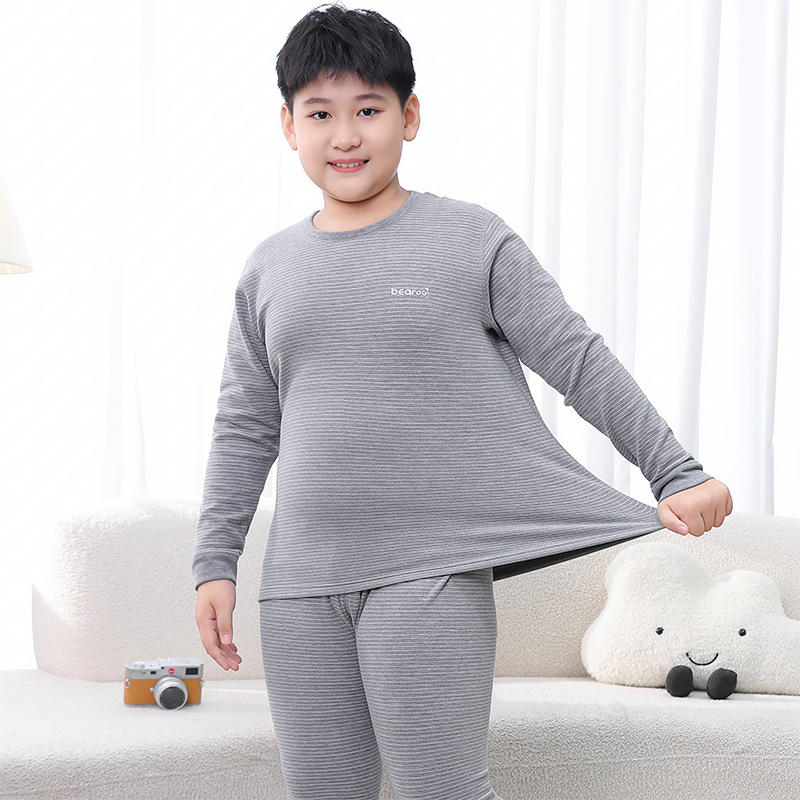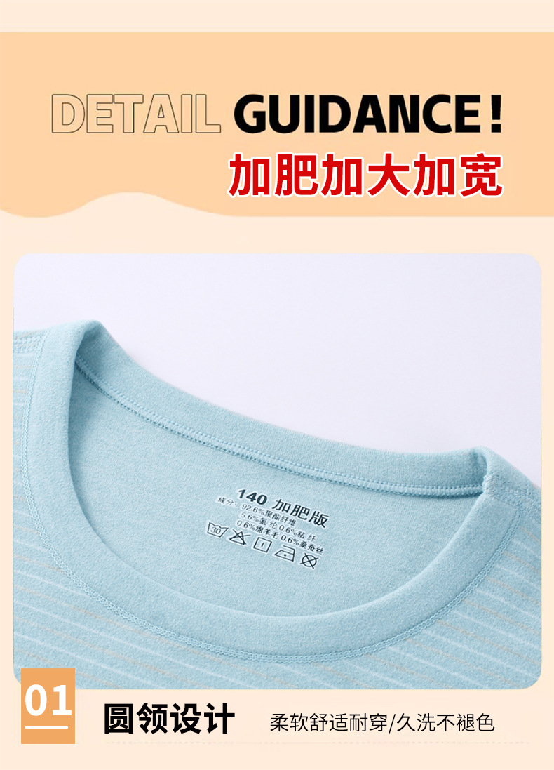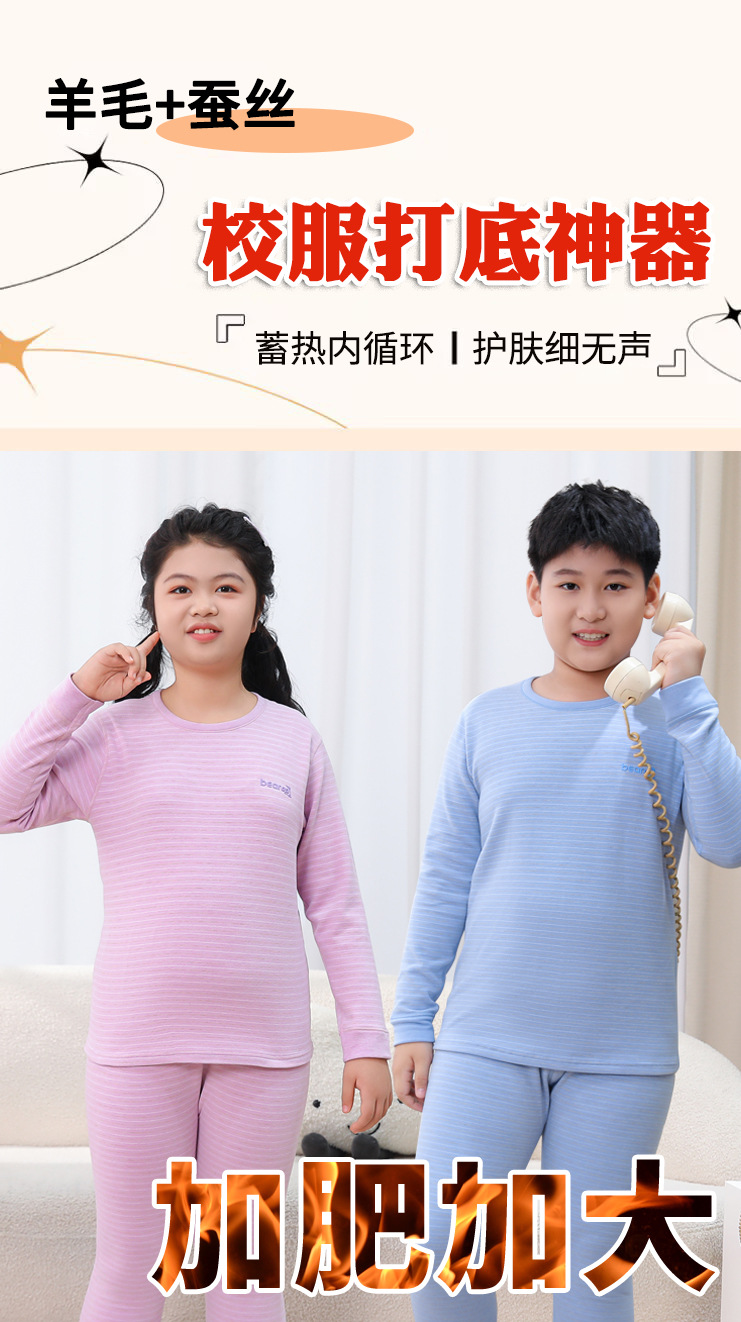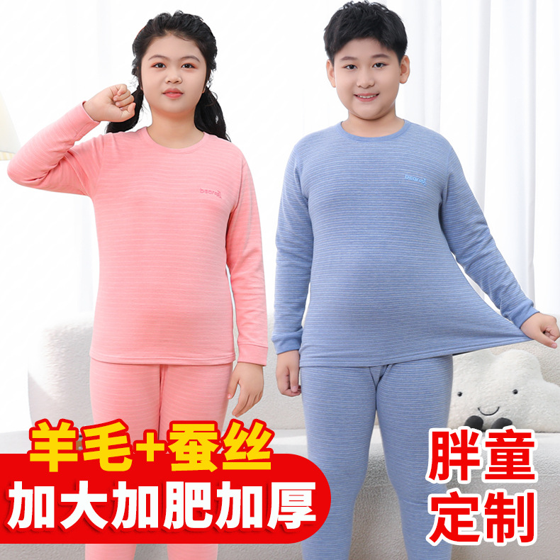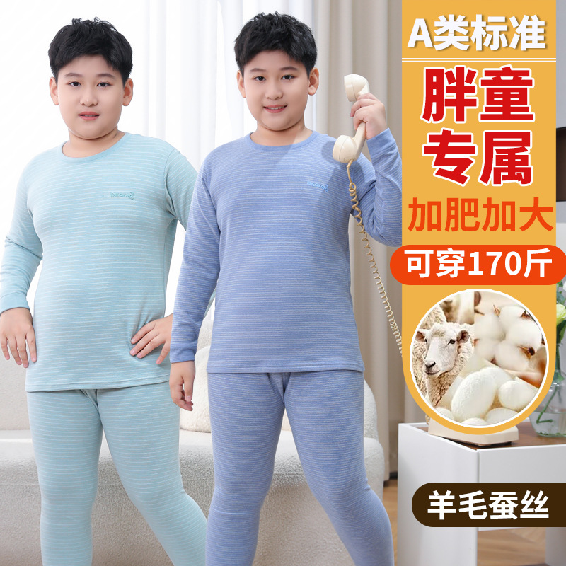 중다 어린이 플러스 사이즈 지방 어린이 울 실크 따뜻한 속옷 가을 겨울 세트 어린이 느슨한 가을 옷과 바지