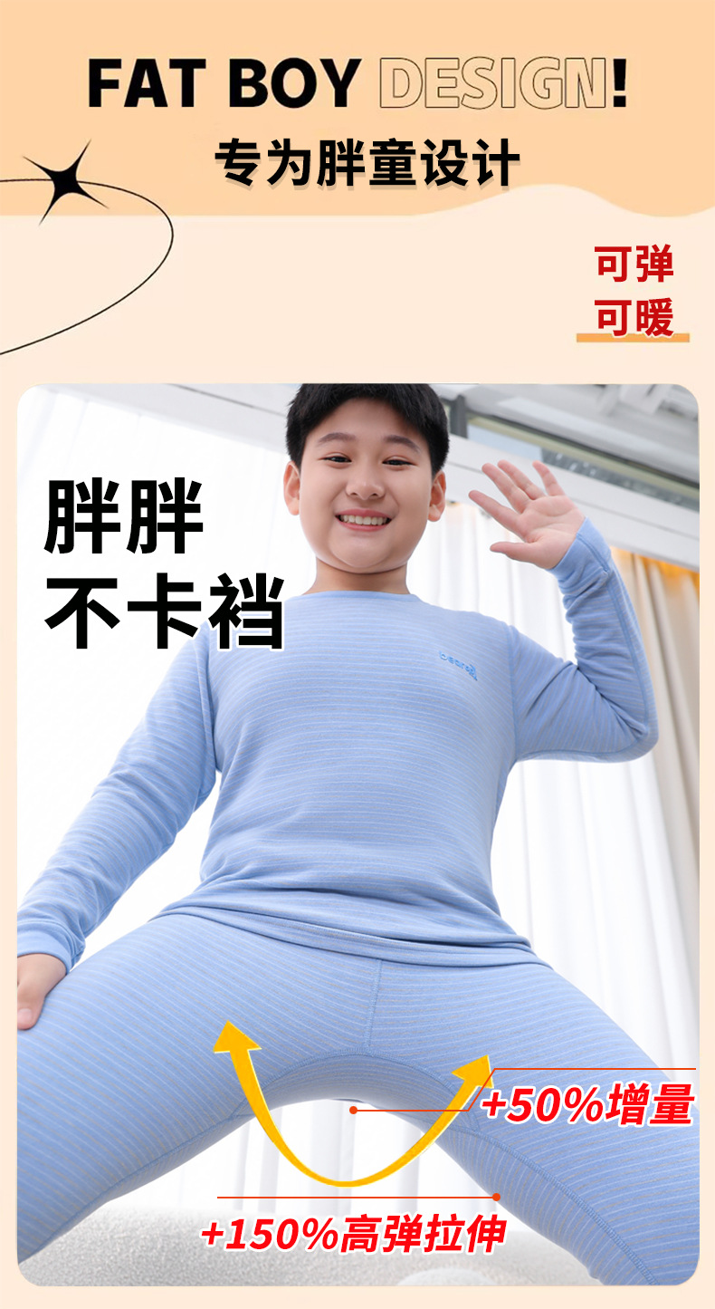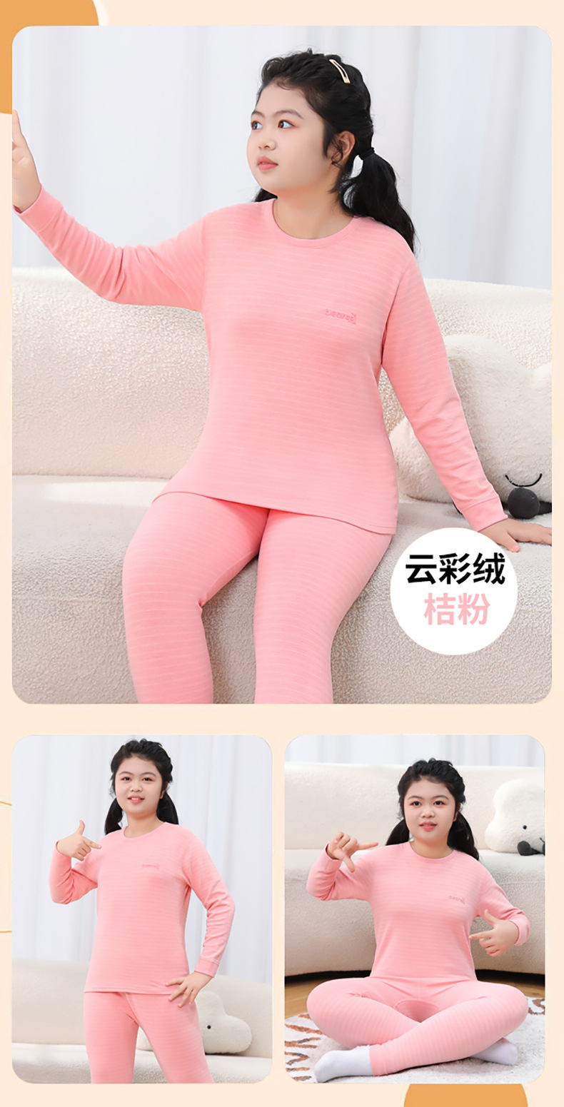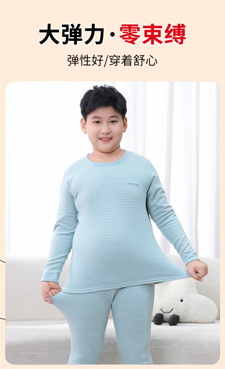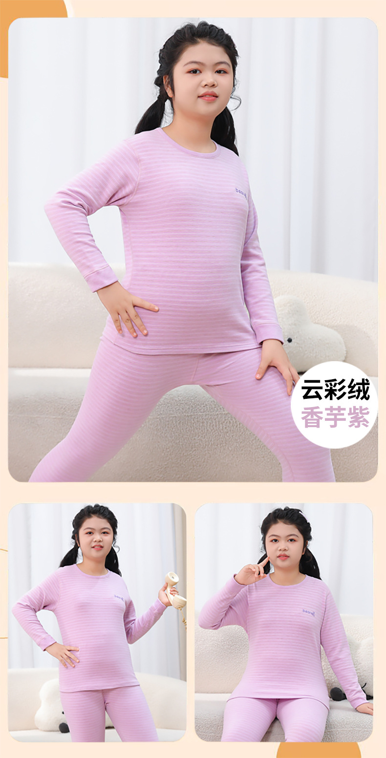 중다 어린이 플러스 사이즈 지방 어린이 울 실크 따뜻한 속옷 가을 겨울 세트 어린이 느슨한 가을 옷과 바지