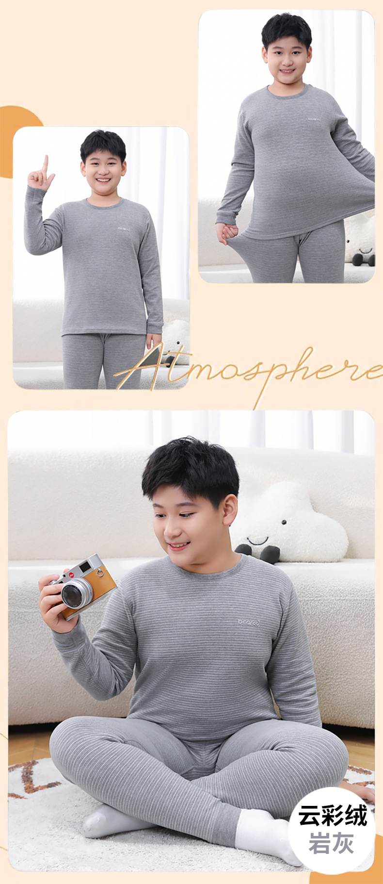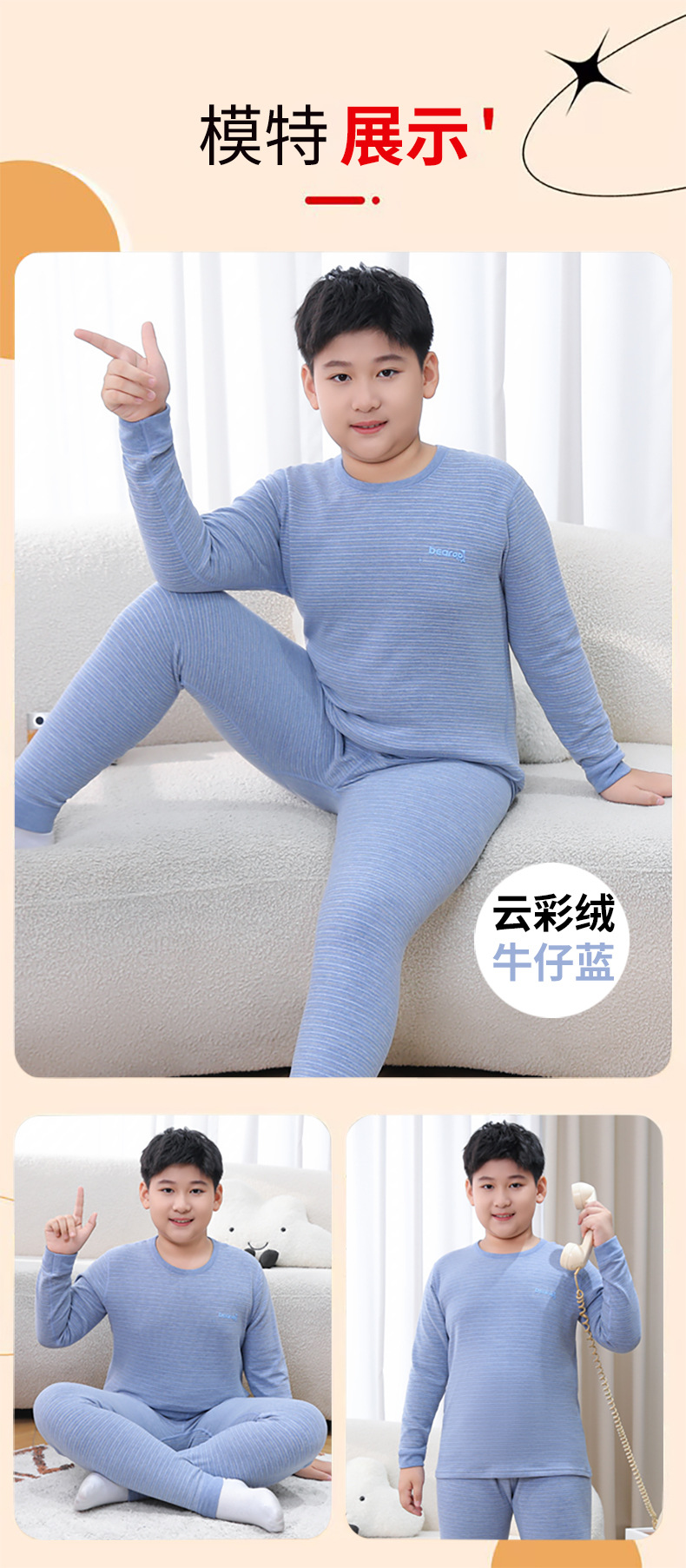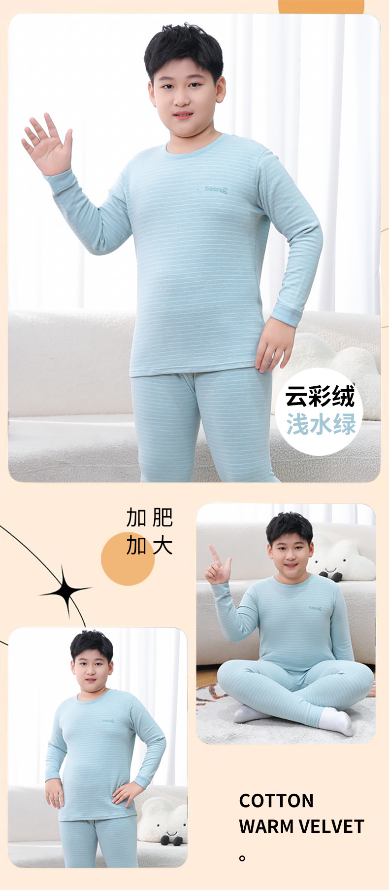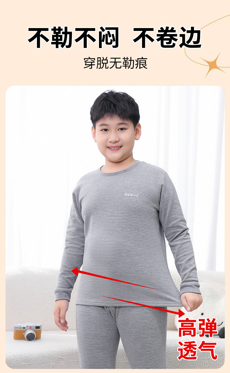 중다 어린이 플러스 사이즈 지방 어린이 울 실크 따뜻한 속옷 가을 겨울 세트 어린이 느슨한 가을 옷과 바지