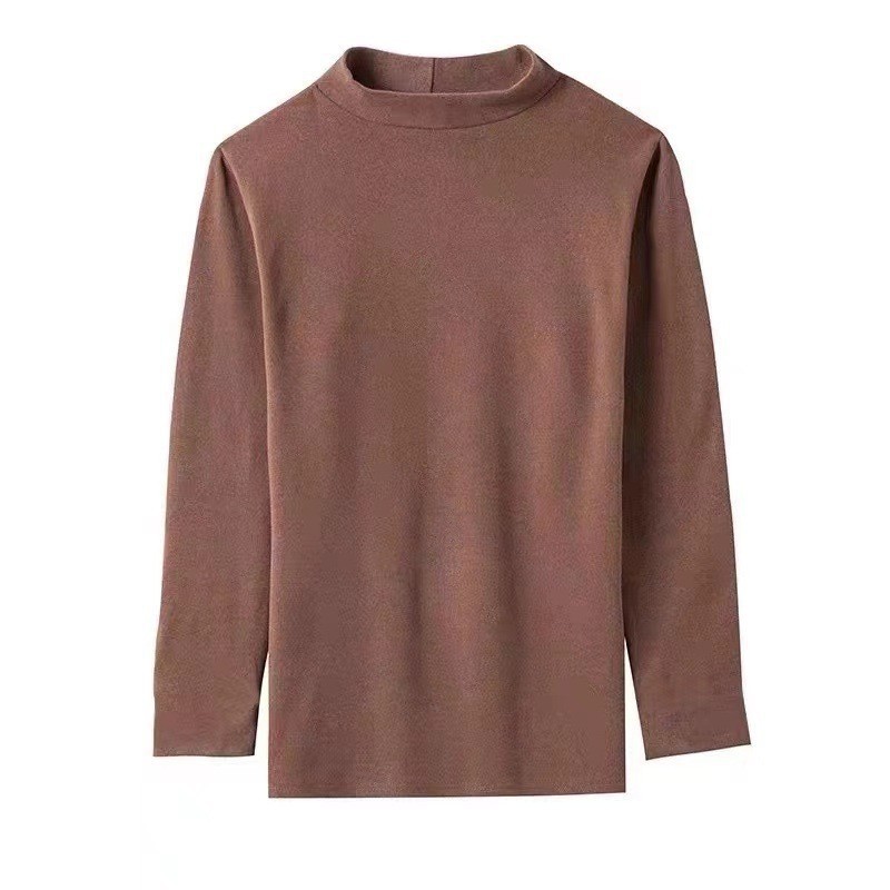 긴팔 티셔츠 남성용 벨벳 미드 하이 칼라 베이스 셔츠 가을 옷 면 2025 년 봄과 가을 남성 패션 탑