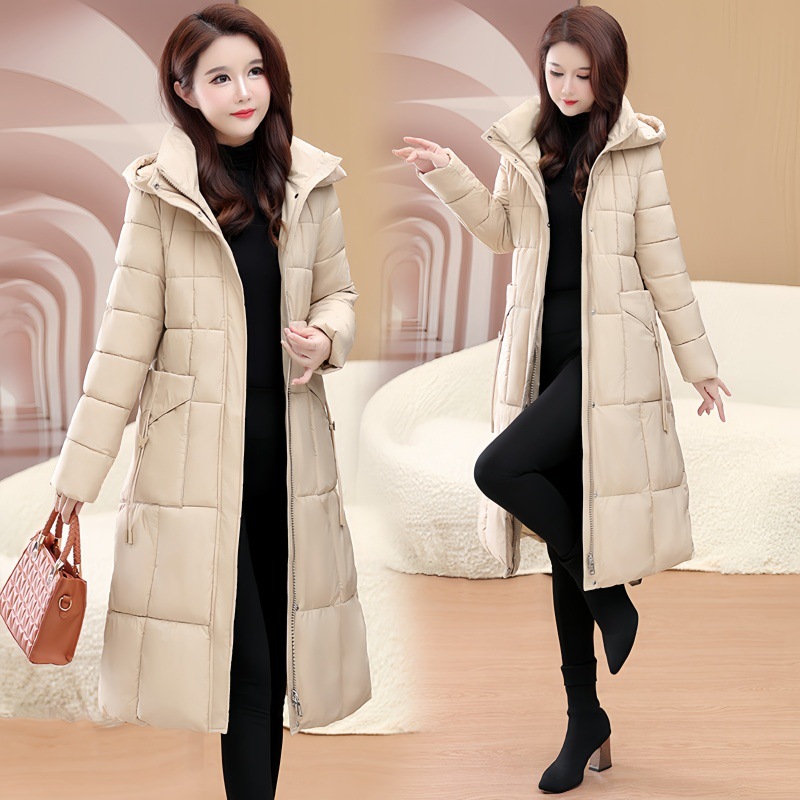 여성용 롱패딩, 겨울용 두꺼운 심플 후드 화이트 덕다운 슬림핏 코트, 원피스 배송 가능