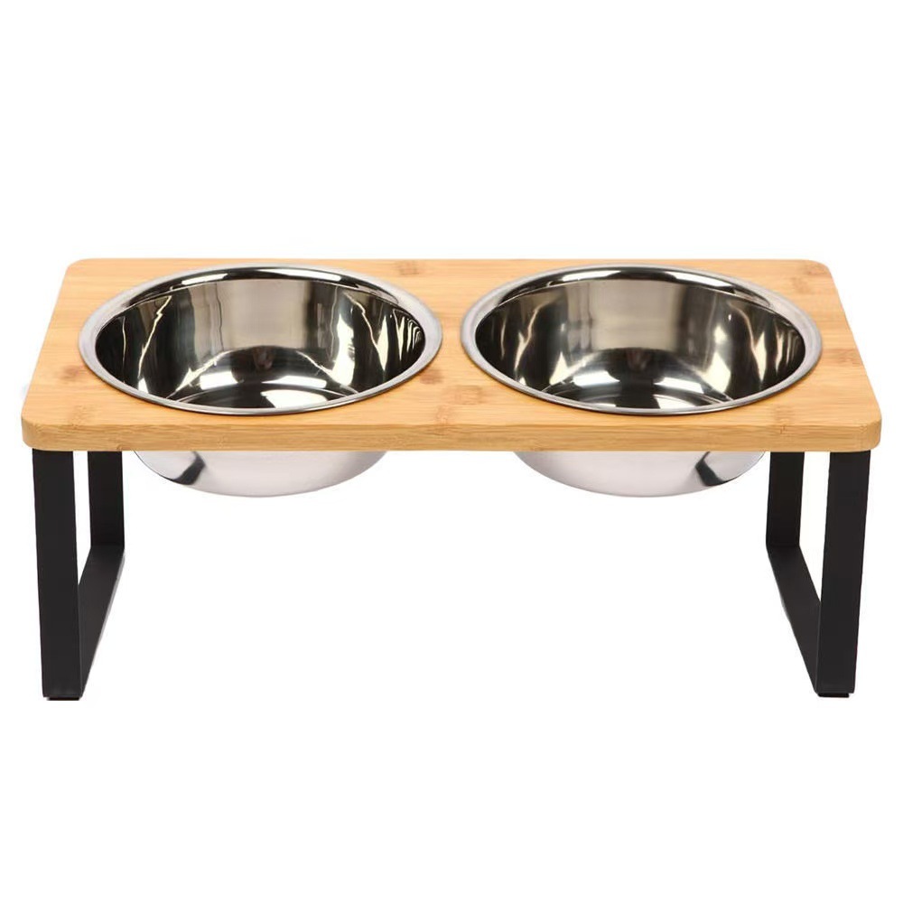 국경 뜨거운 애완 동물 그릇 고양이 그릇 작은 개 그릇, 대나무 및 나무 재료 및 스테인레스 스틸 그릇 애완 동물 피더