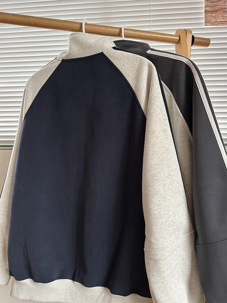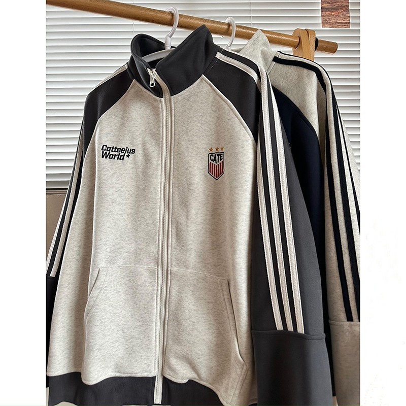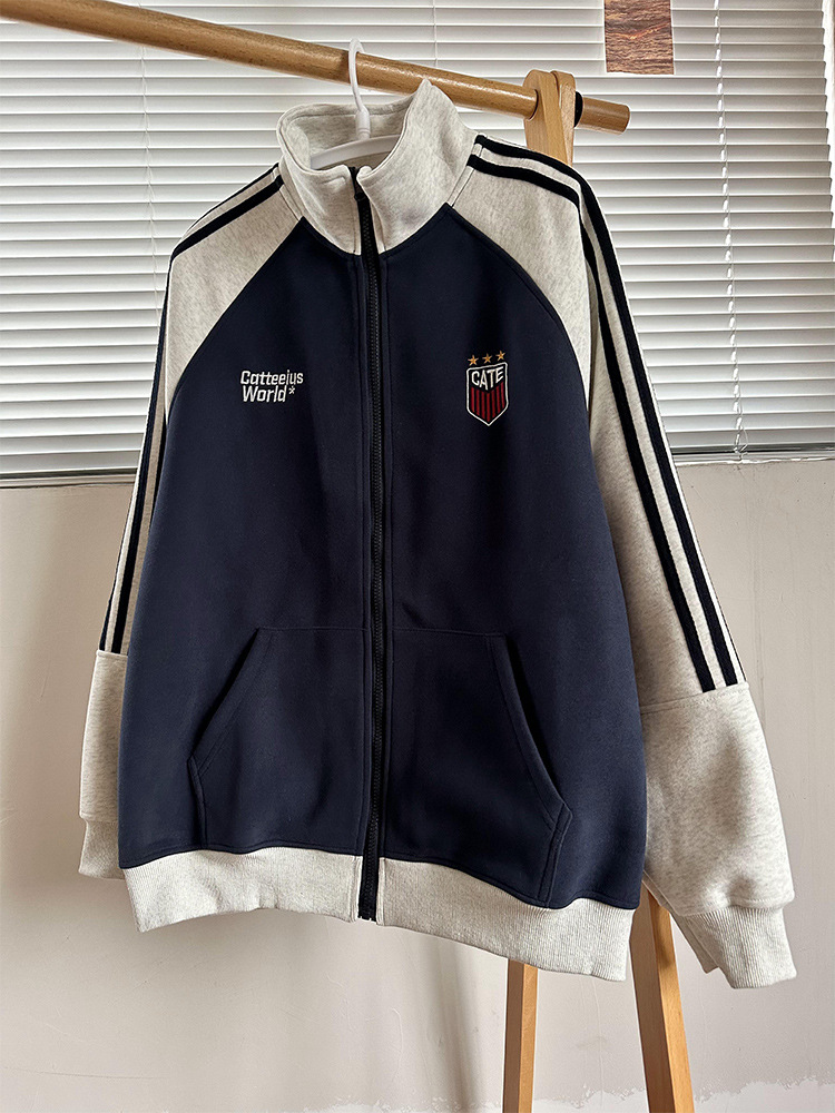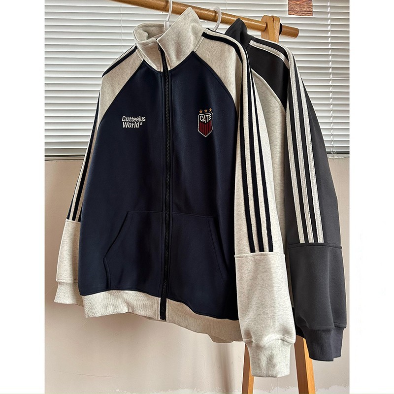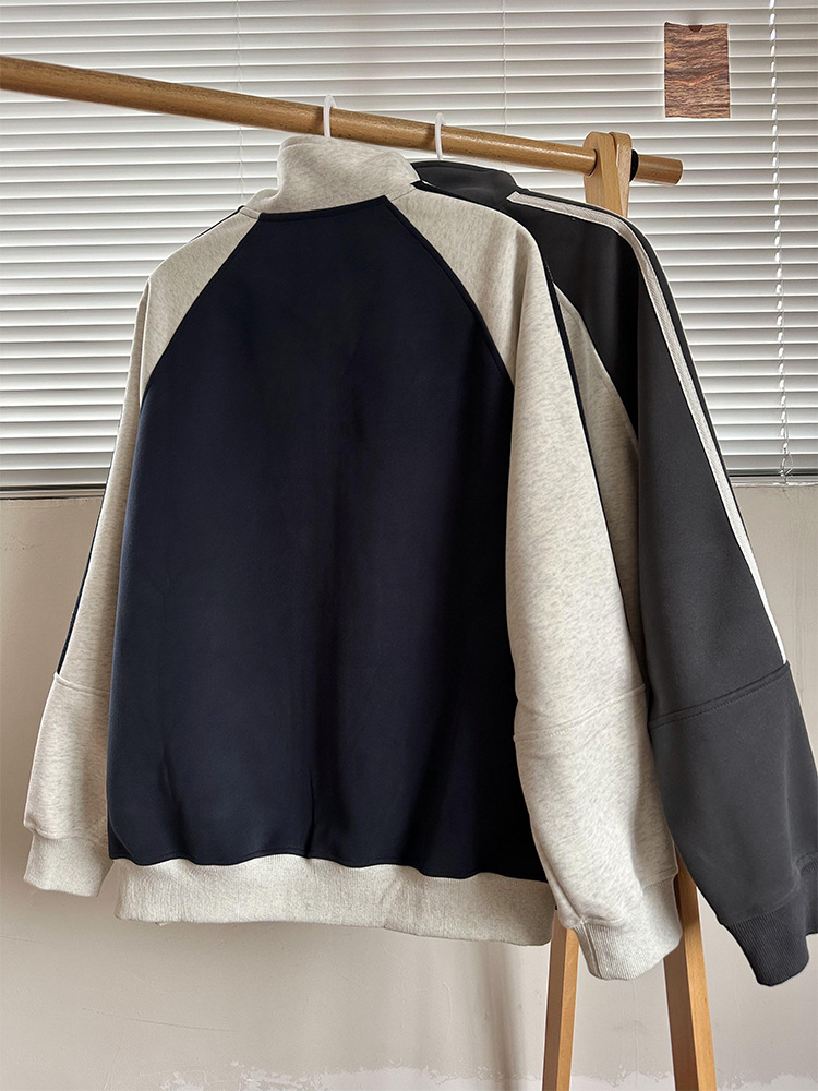 미국식 레트로 3 바 재킷 남자 봄과 가을 라글란 슬리브 카디건 스웨터 유행 콘트라스트 컬러 스포츠 캐주얼 야구 세트
