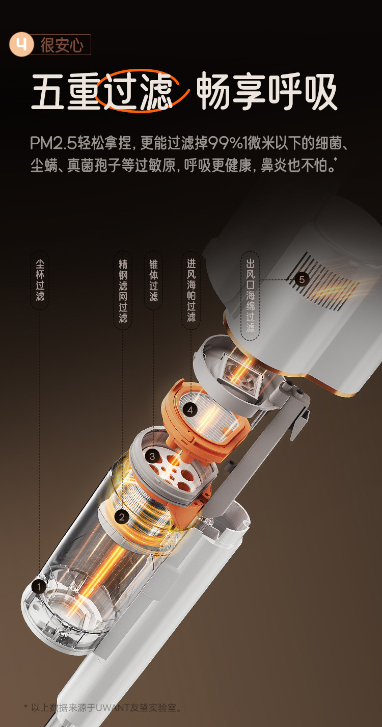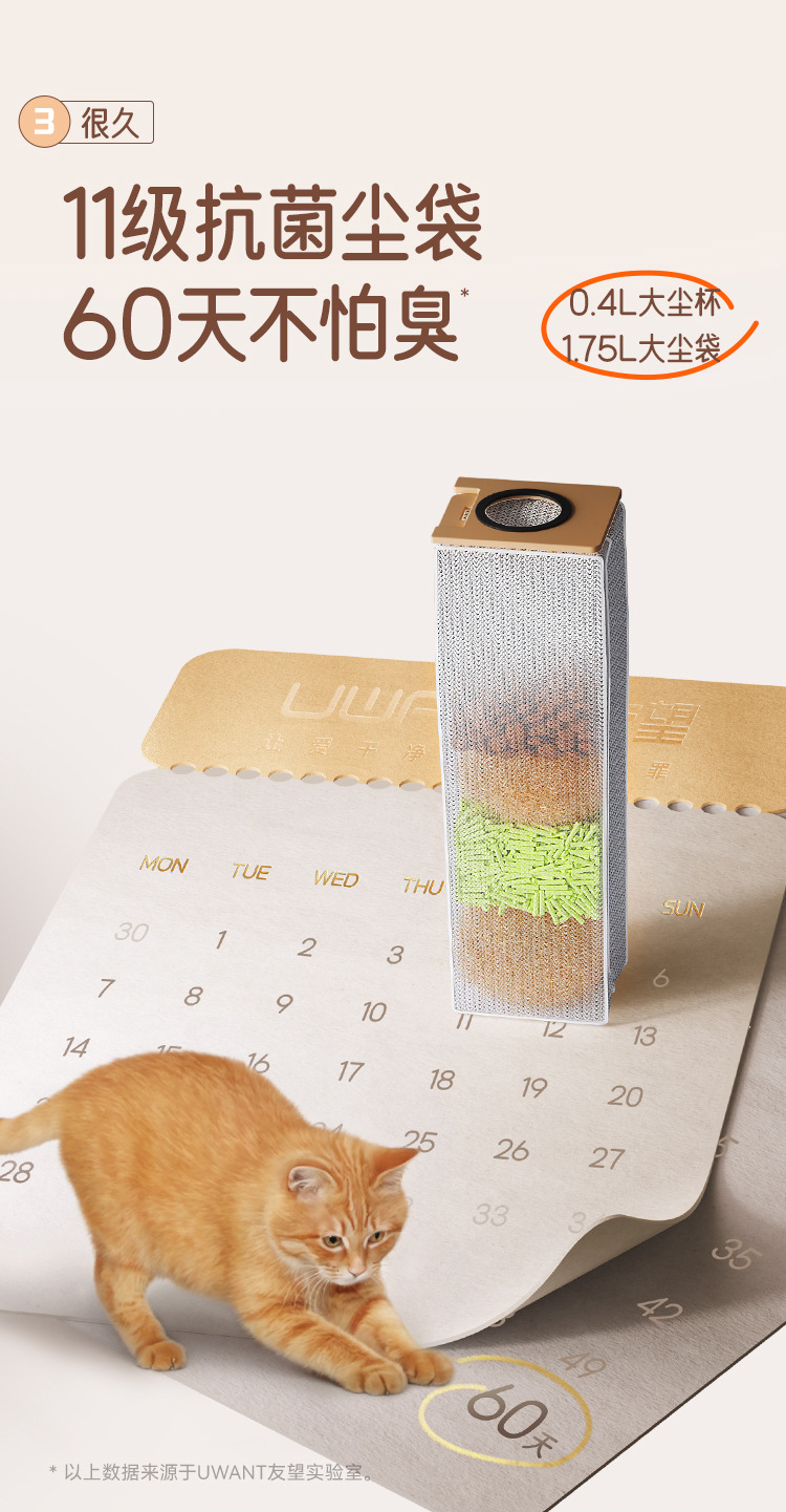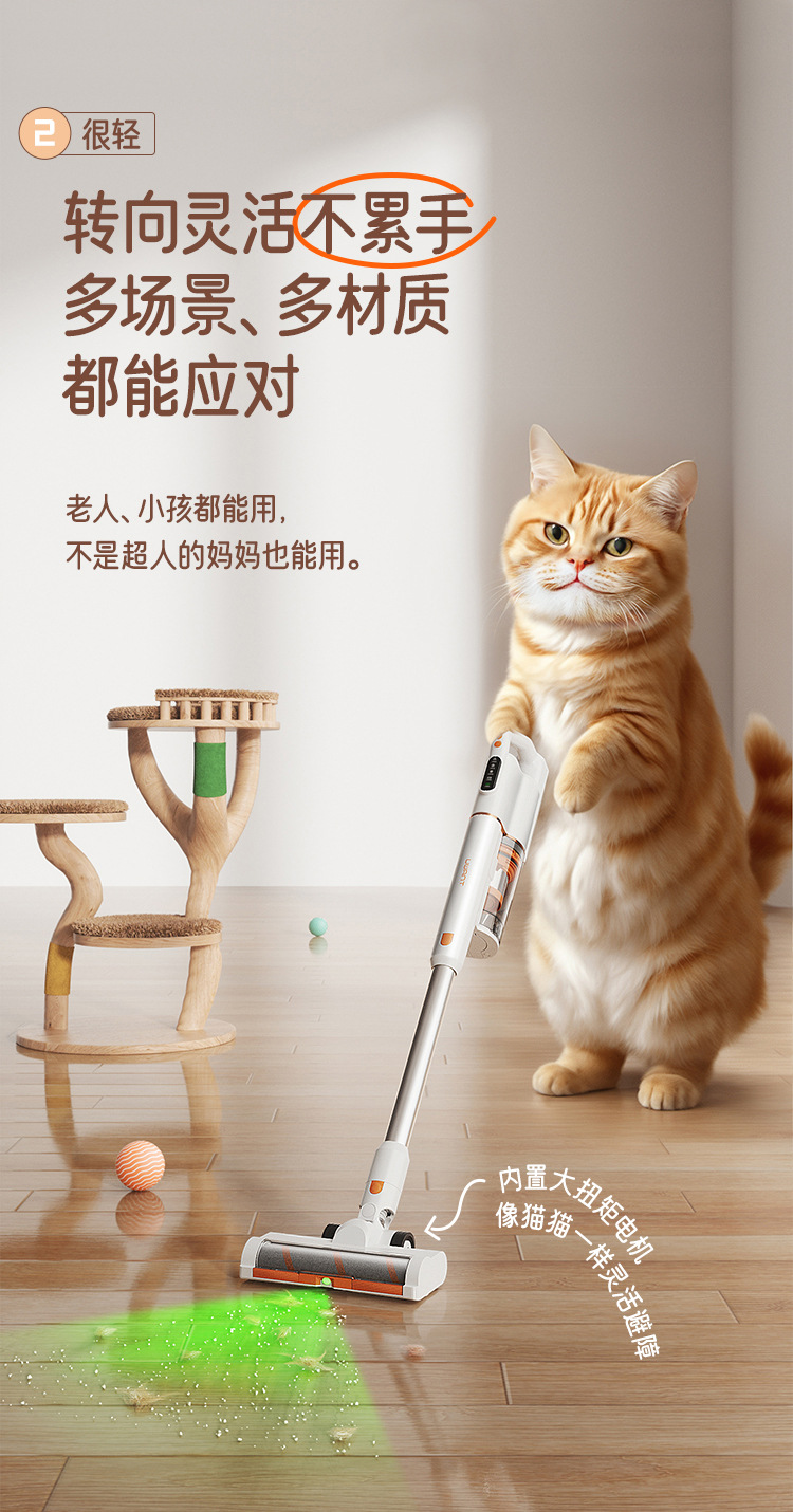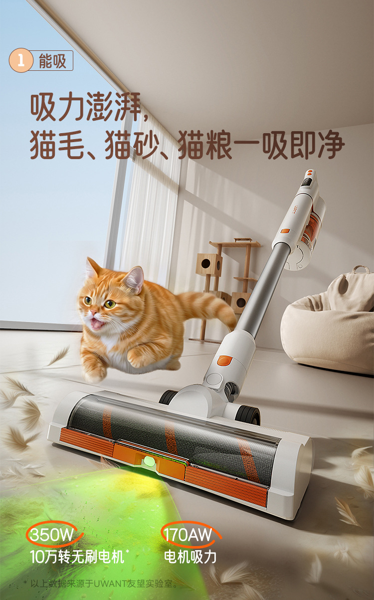 UWANT 대형 오렌지 진공 청소기 자체 수집 가정용 무선 녹색 빛 휴대용 진공 청소기 VC2403