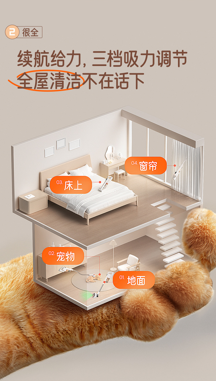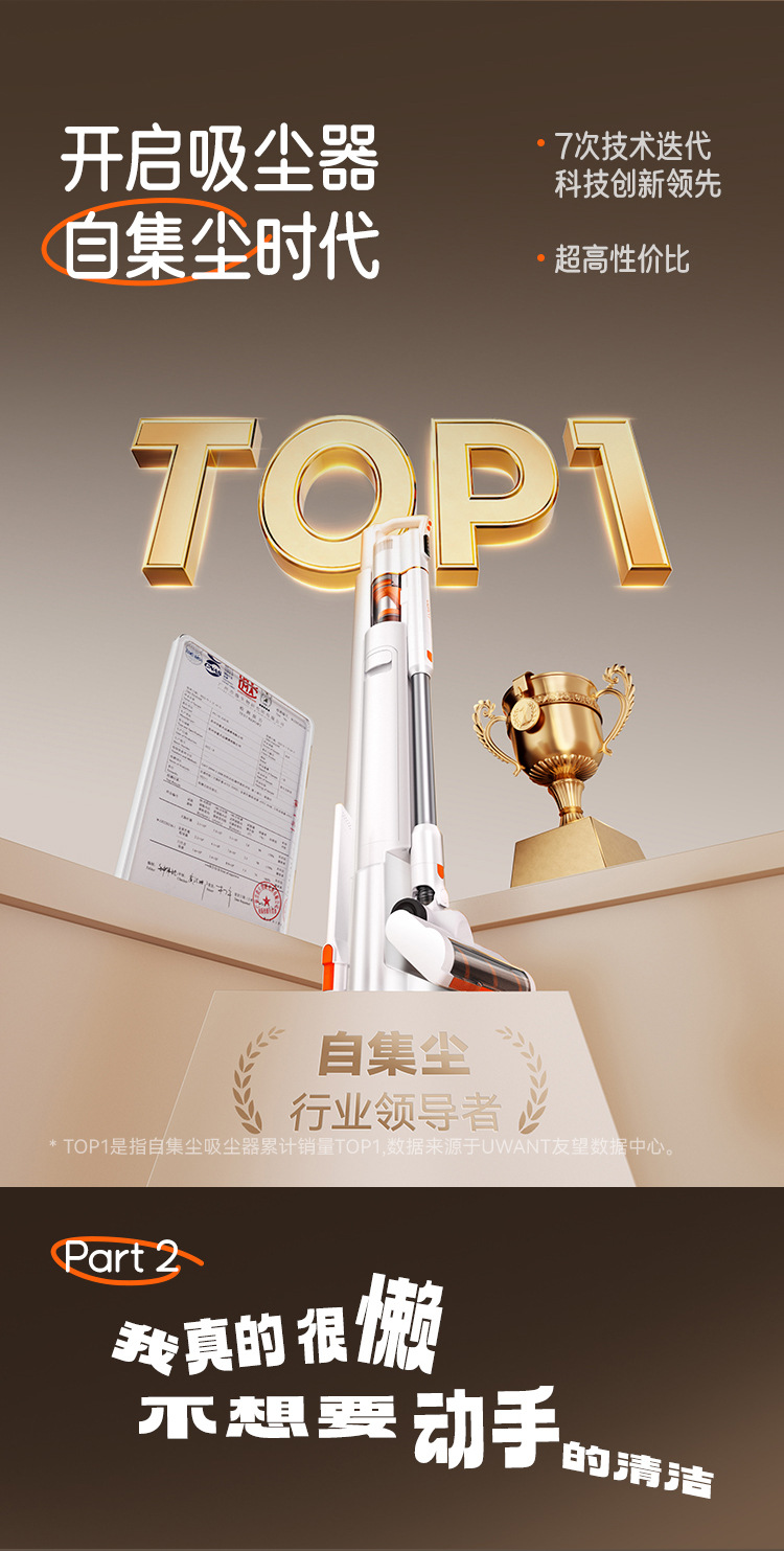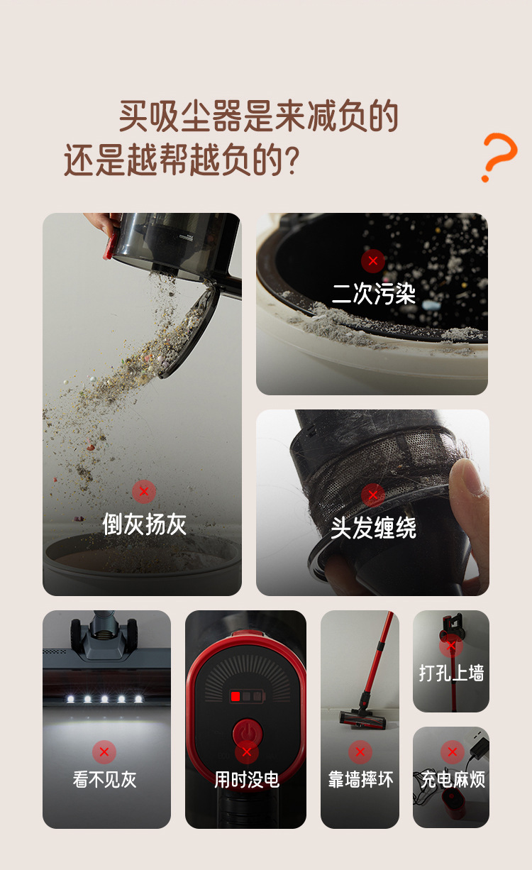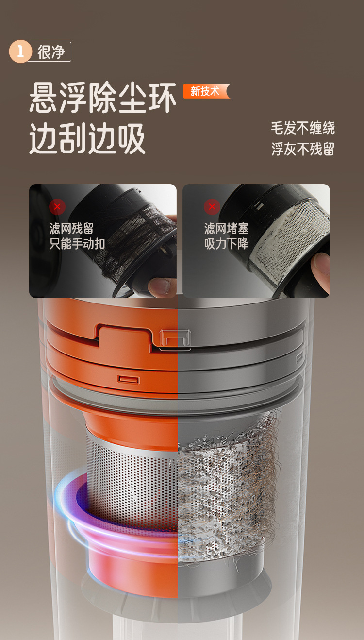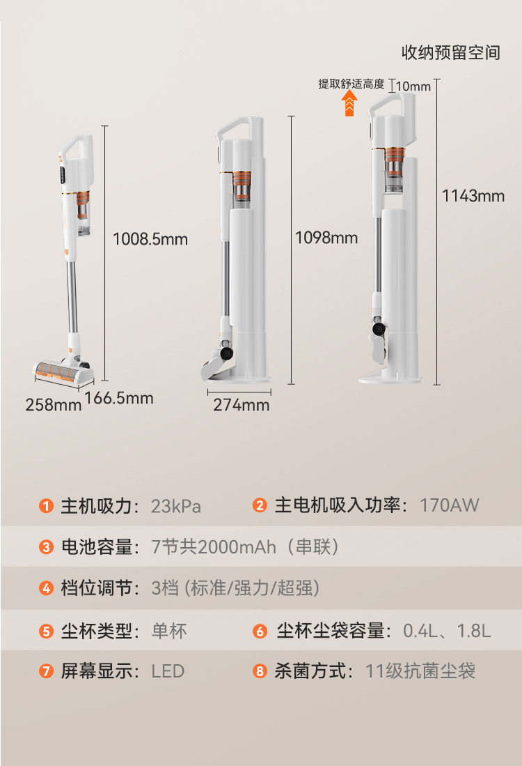 UWANT 대형 오렌지 진공 청소기 자체 수집 가정용 무선 녹색 빛 휴대용 진공 청소기 VC2403