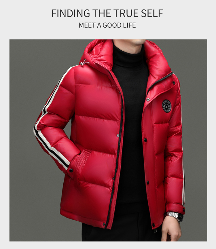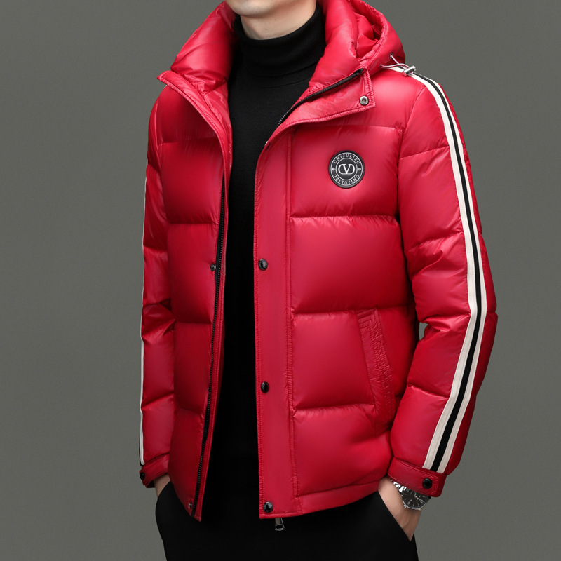 90 화이트 덕 다운 재킷 남자 2024 겨울 후드 패션 내한성 따뜻한 빵 세트 레드 쇼트 재킷