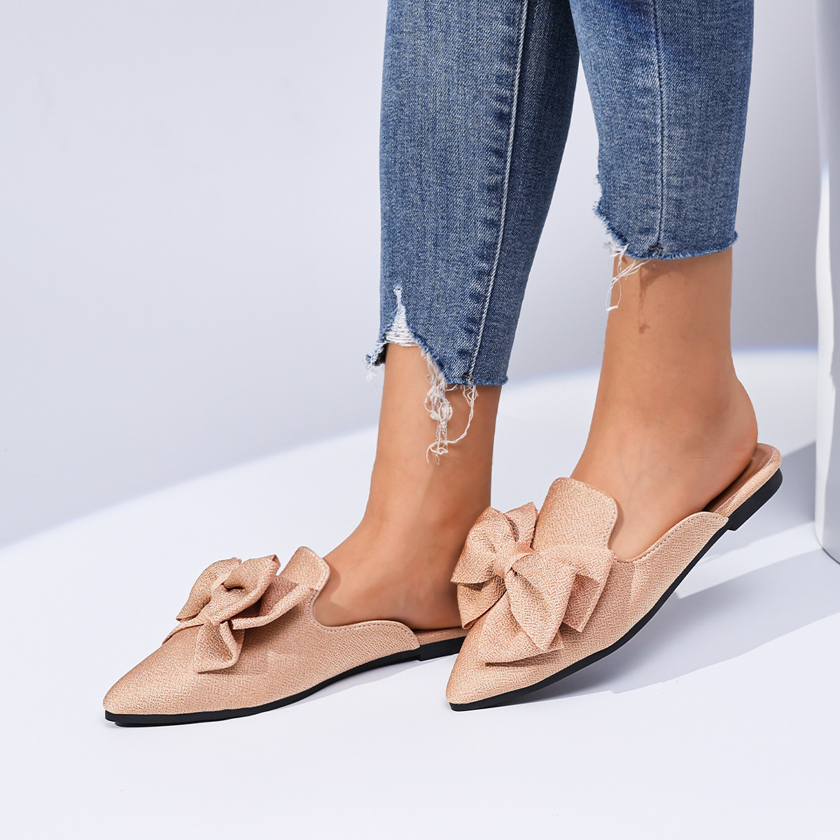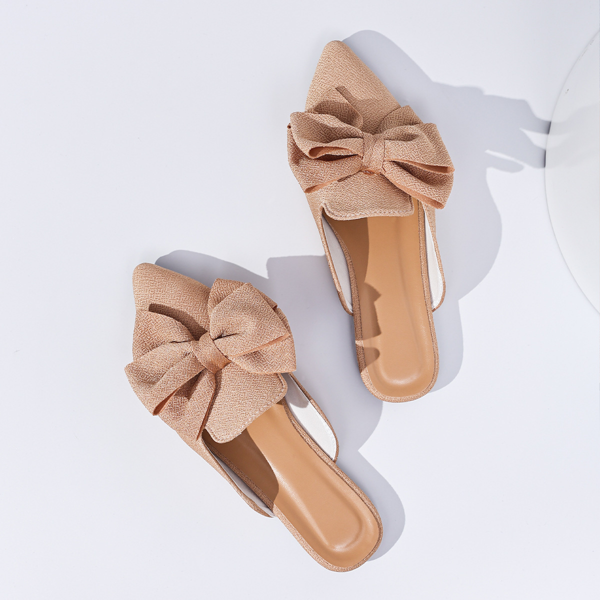 外贸新款跨境大码女鞋欧美时尚2024潮流沙滩拖鞋凉鞋女蝴蝶结