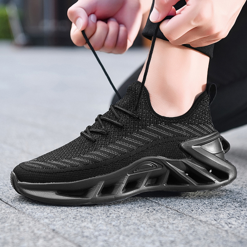 국경 간 남성 신발 통기성 플라이 짠 메쉬 레이스 업 소프트 솔 경량 높이 증가 캐주얼 러닝 슈즈 미끄럼 방지 커플 운동화