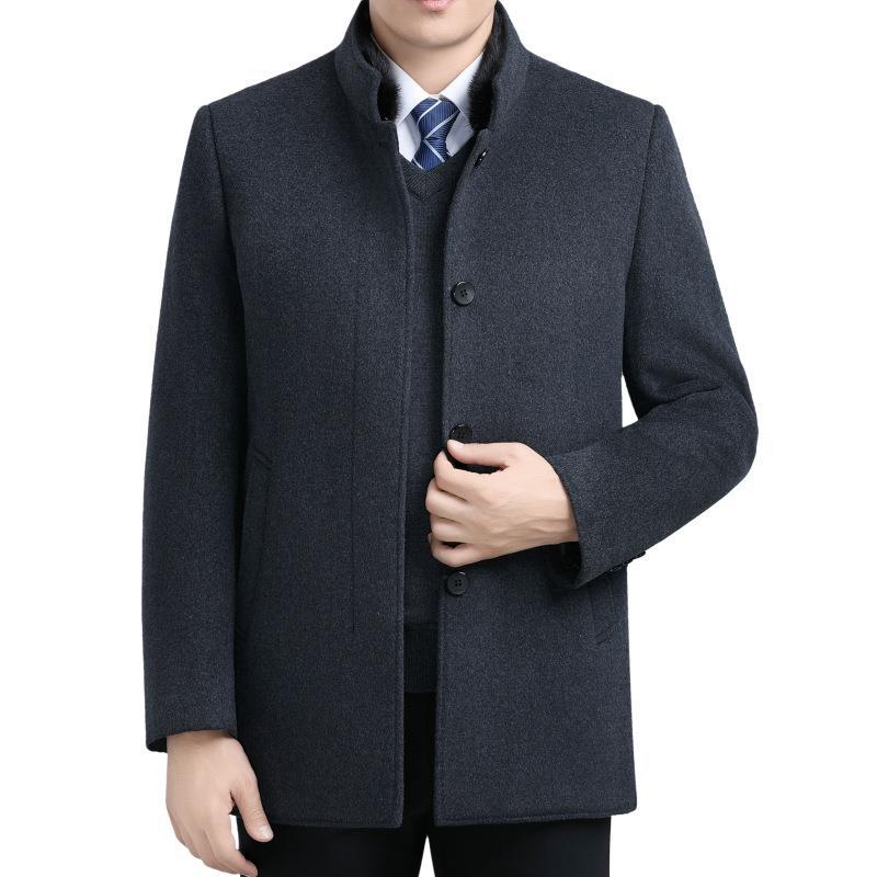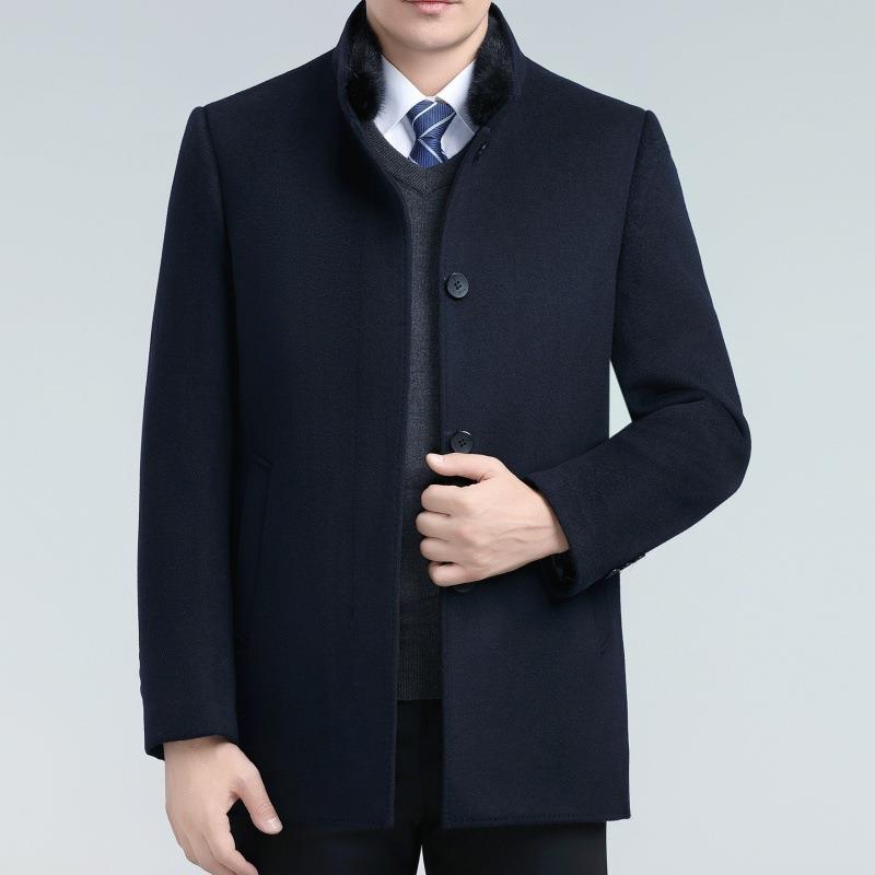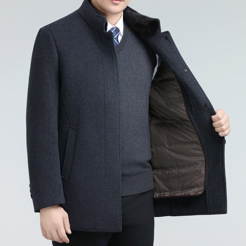 다운 라이너 중년 울 밍크 울 중간 길이 재킷 양면 캐시미어 코트, 남자 칼라 겨울이 두껍게