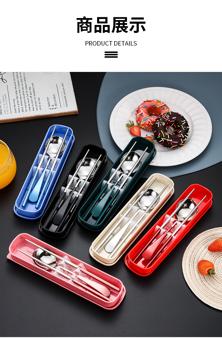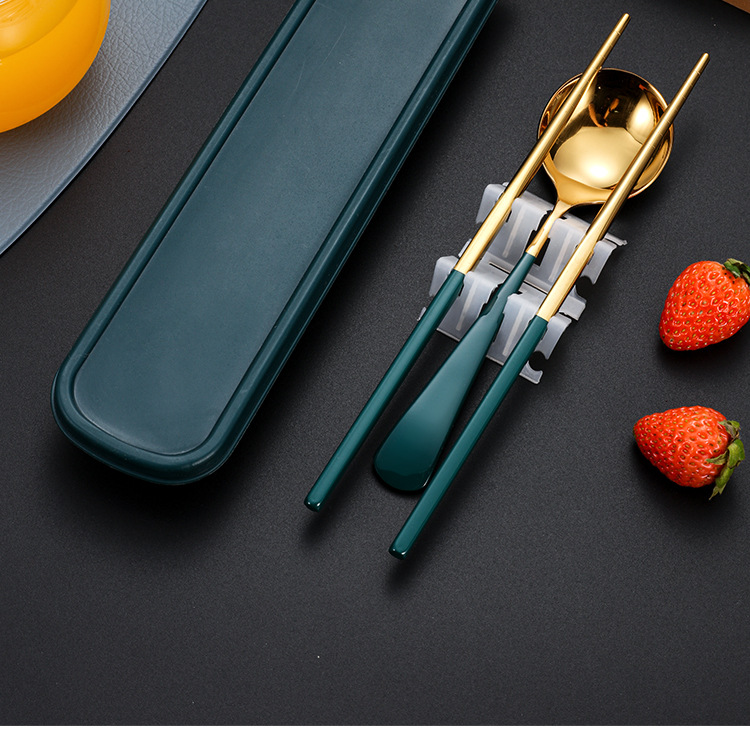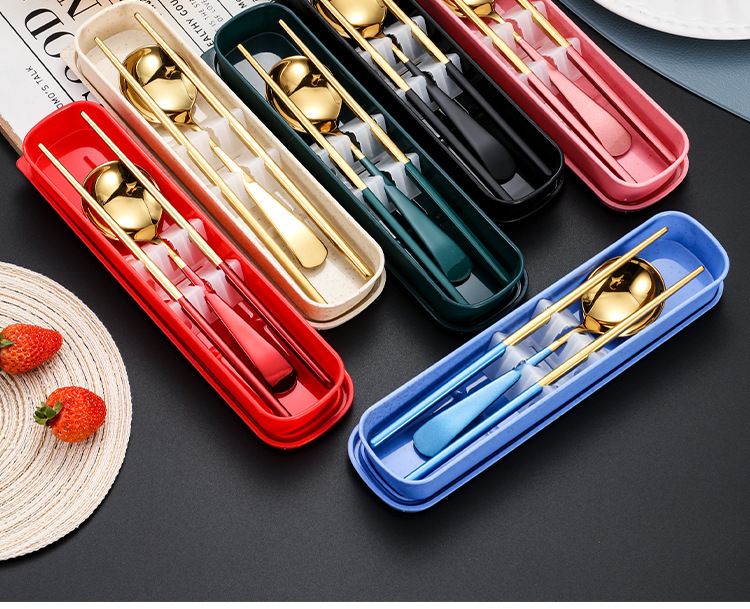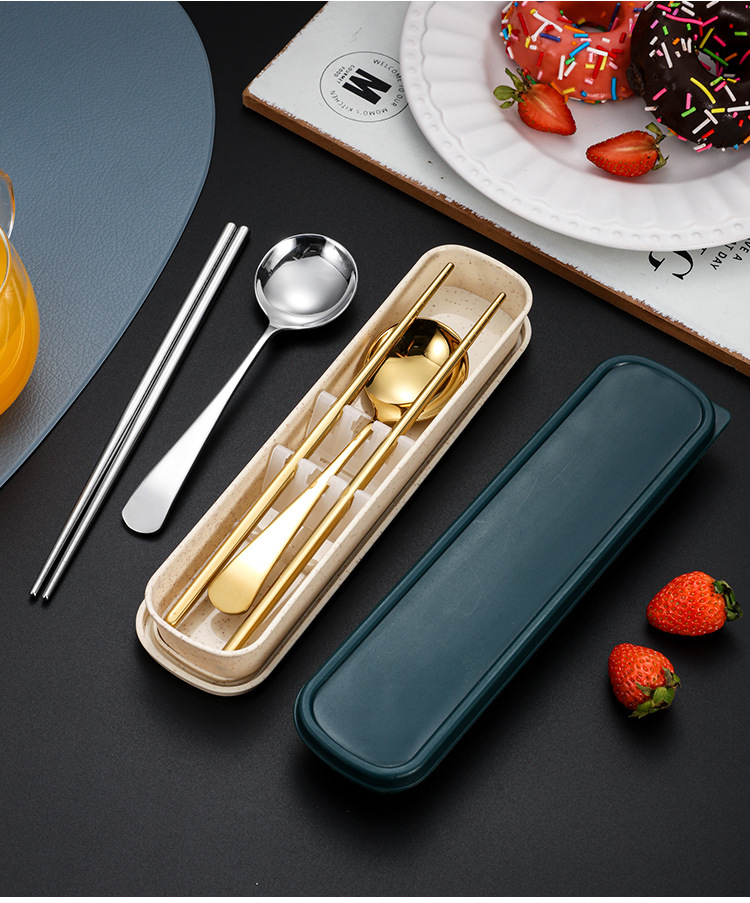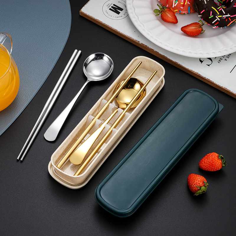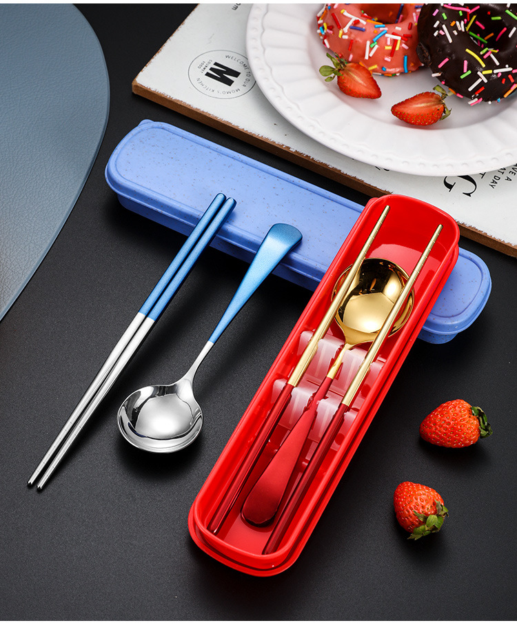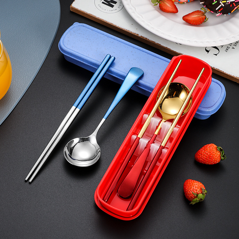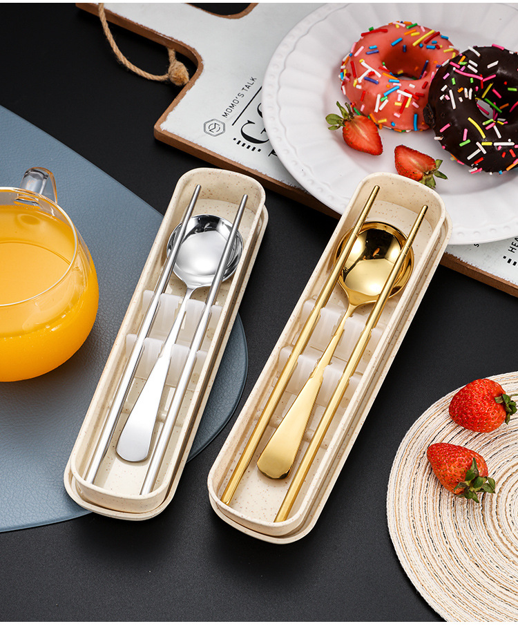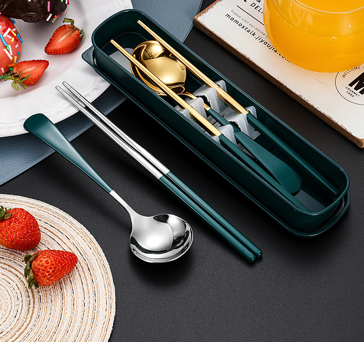 숟가락 젓가락 세트 304 스테인레스 스틸 식기 휴대용 학생 인터넷 인기있는 숟가락 젓가락 투피스 여행 보관 상자
