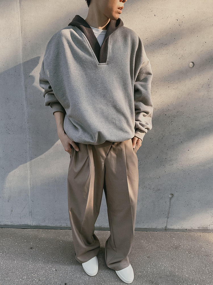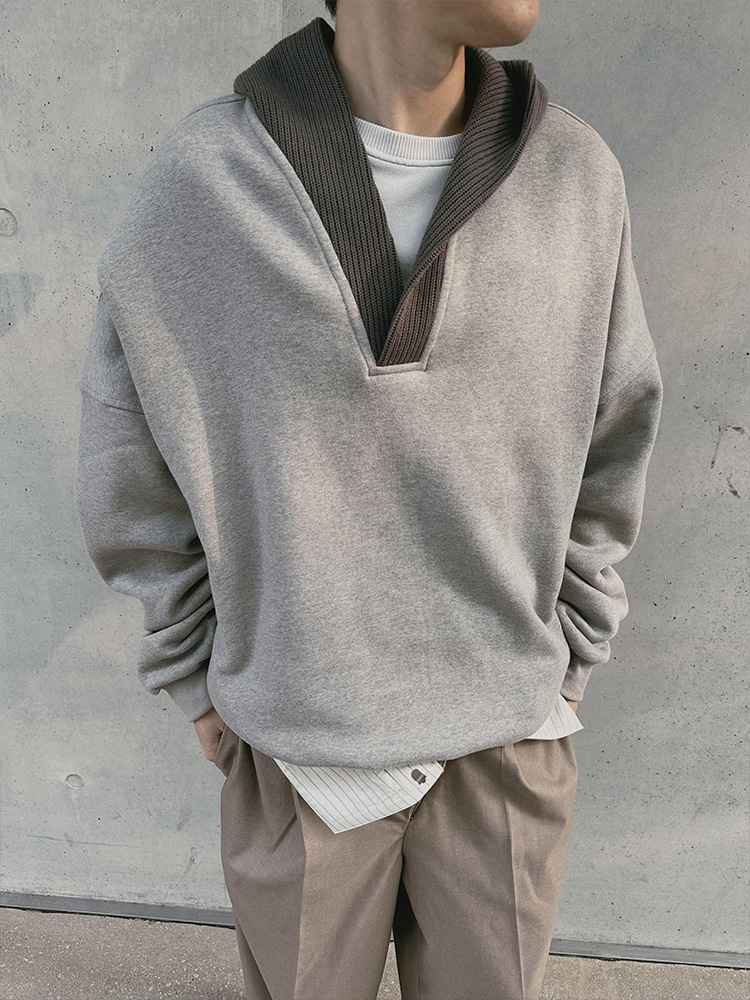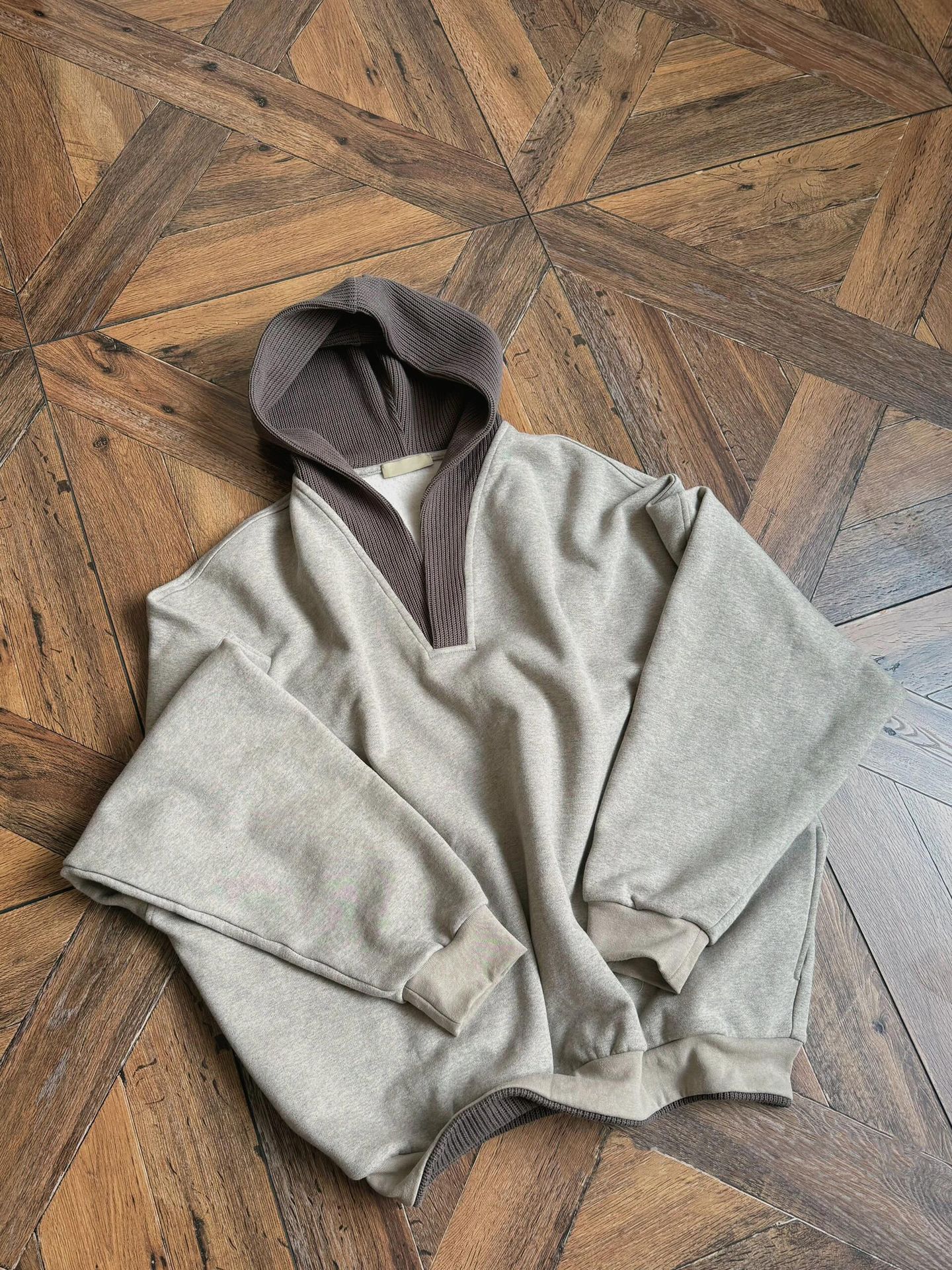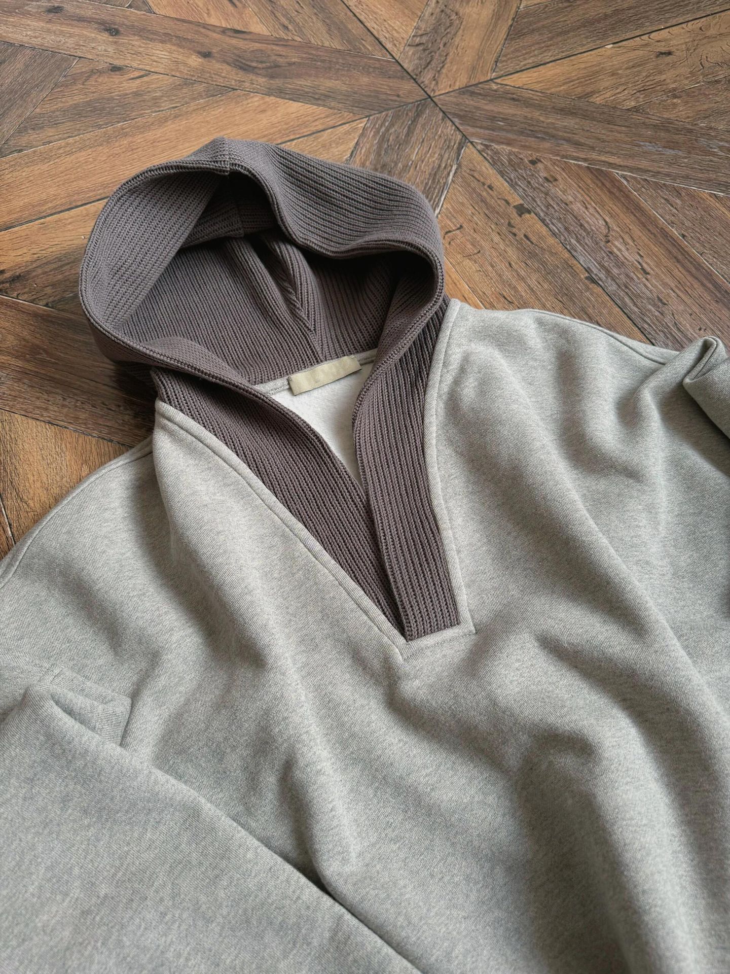 청결한 회색 스웨트 셔츠 남성용 후드 봄과 가을 양모 스티칭 디자인 틈새 느슨한 캐주얼 자켓