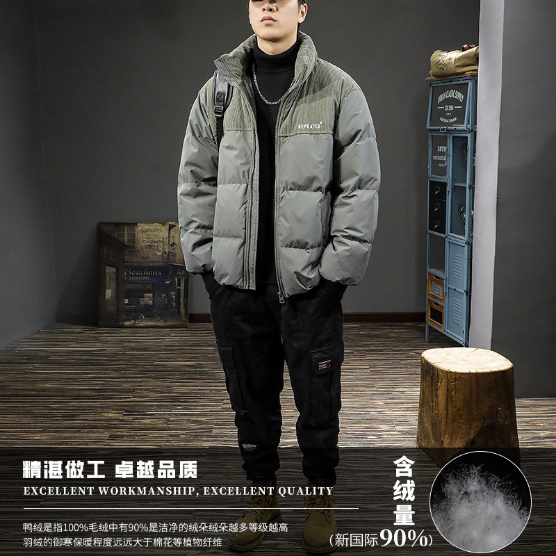 2024 새로운 겨울 칼라 바느질 내한성 다운 재킷 남자 느슨한 짧은 90 흰색 오리 두꺼운 따뜻한 재킷