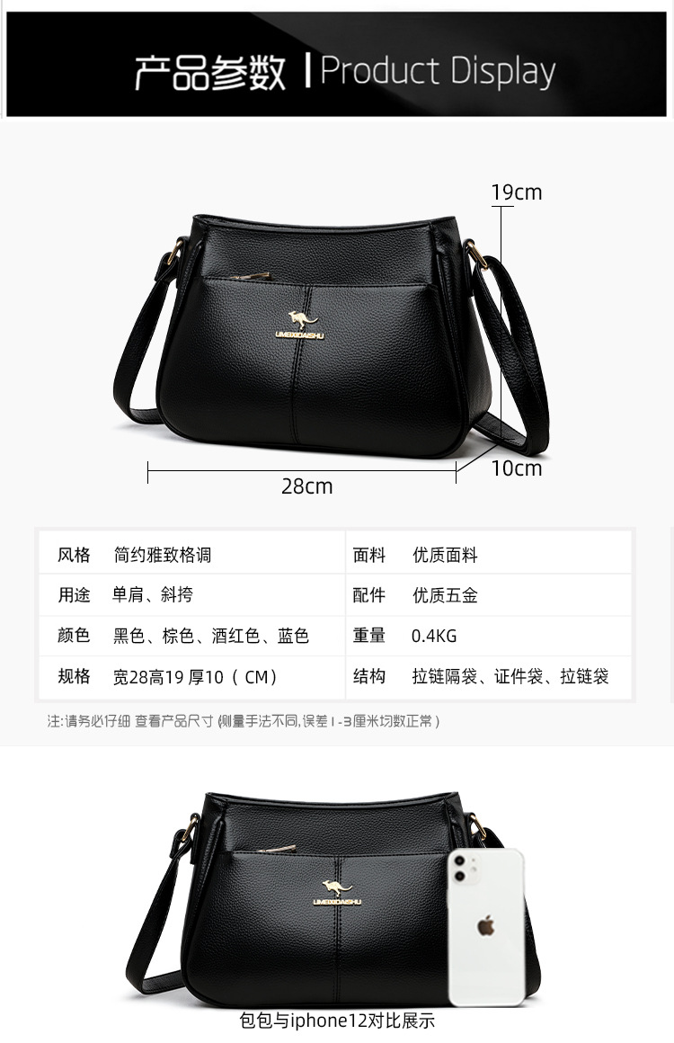패셔너블한 중년 및 노년층을 위한 대용량 핸드백, 출퇴근용 단색 숄더백/크로스백, 고급스러운 토트백, 엄마 가방