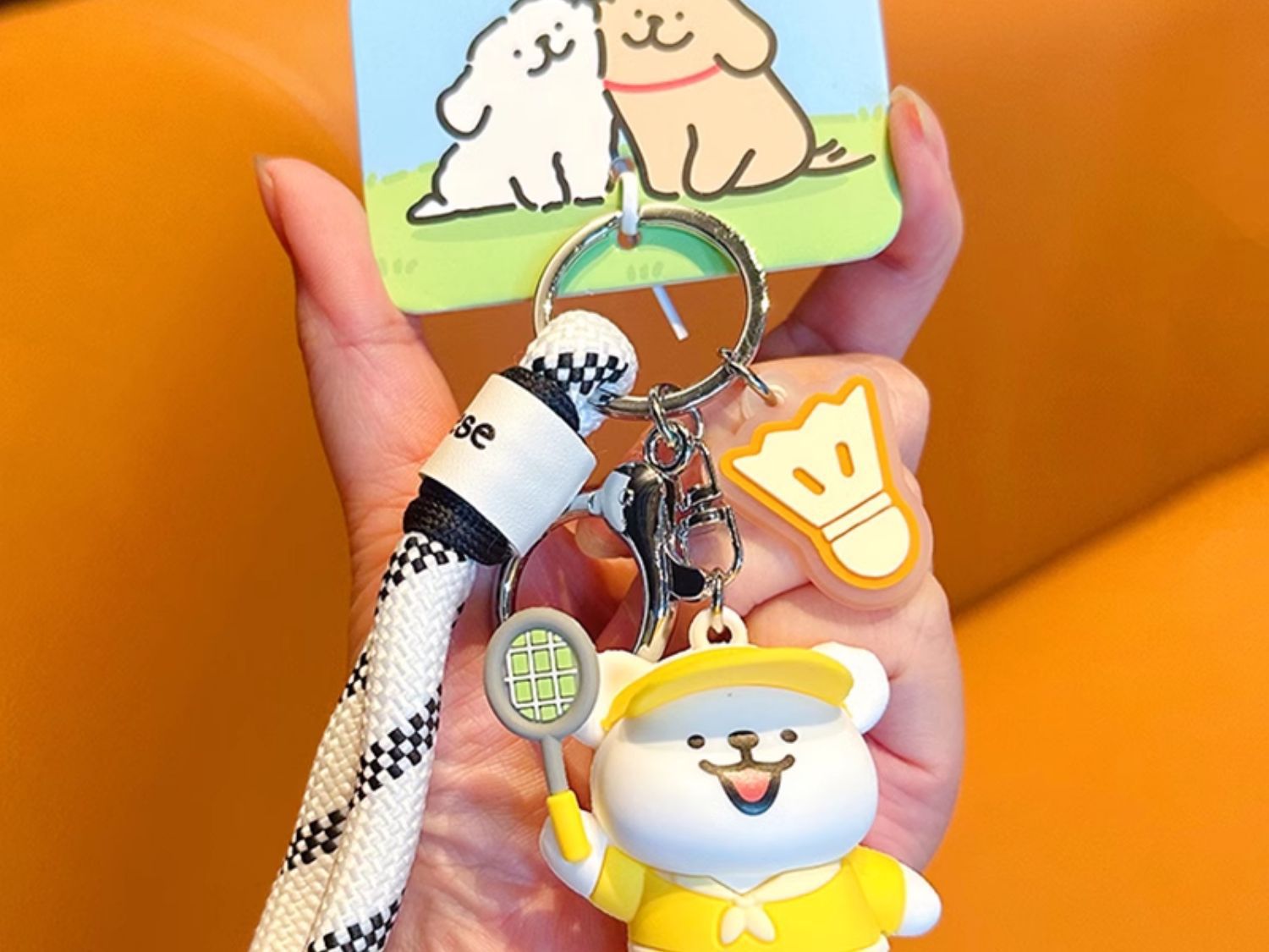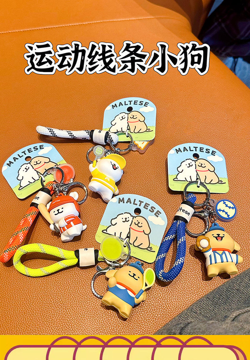 진짜 라인 강아지 스포츠 키 체인 야구 배드민턴 귀여운 만화 배낭 교수형 커플 키 체인