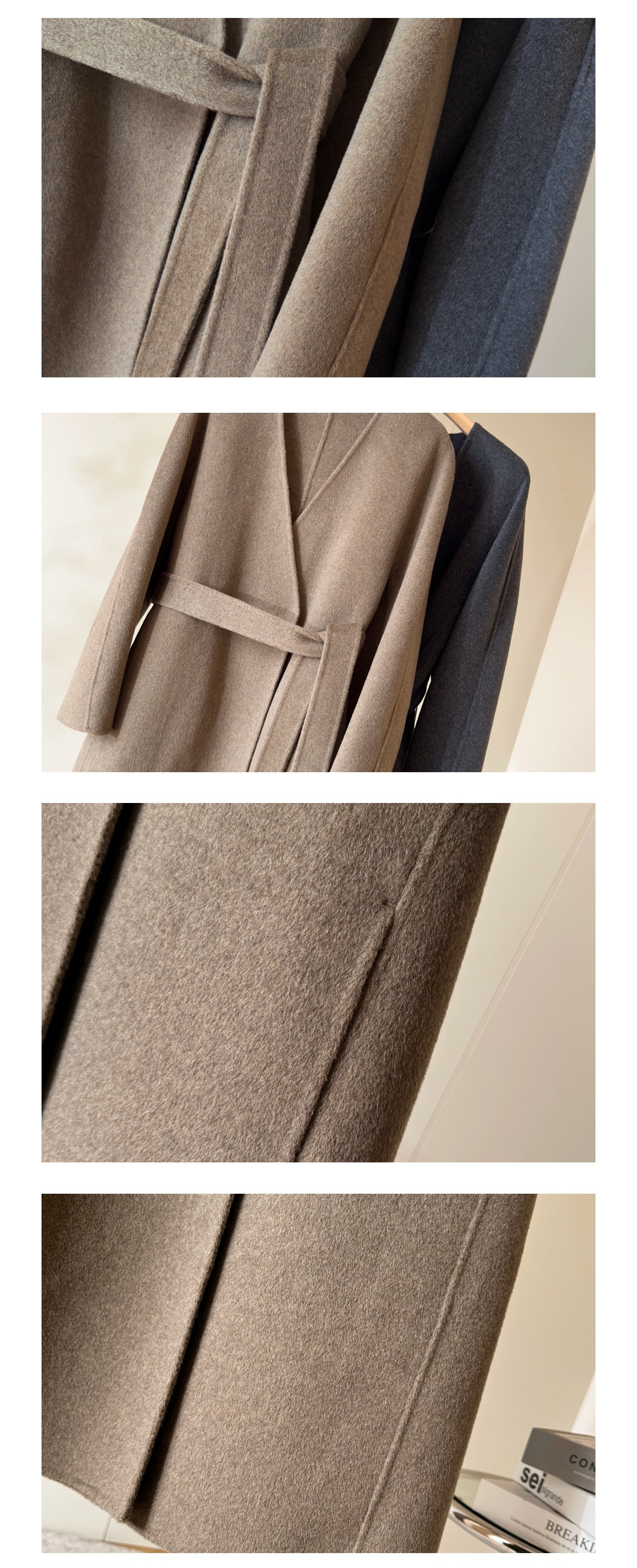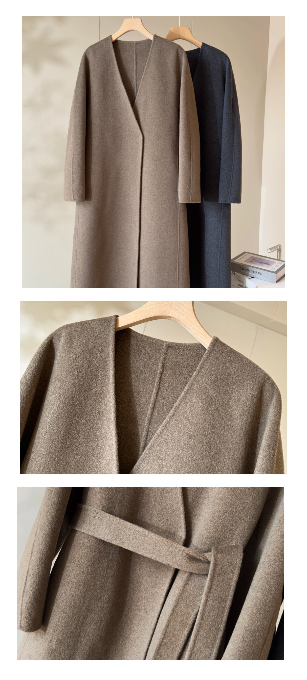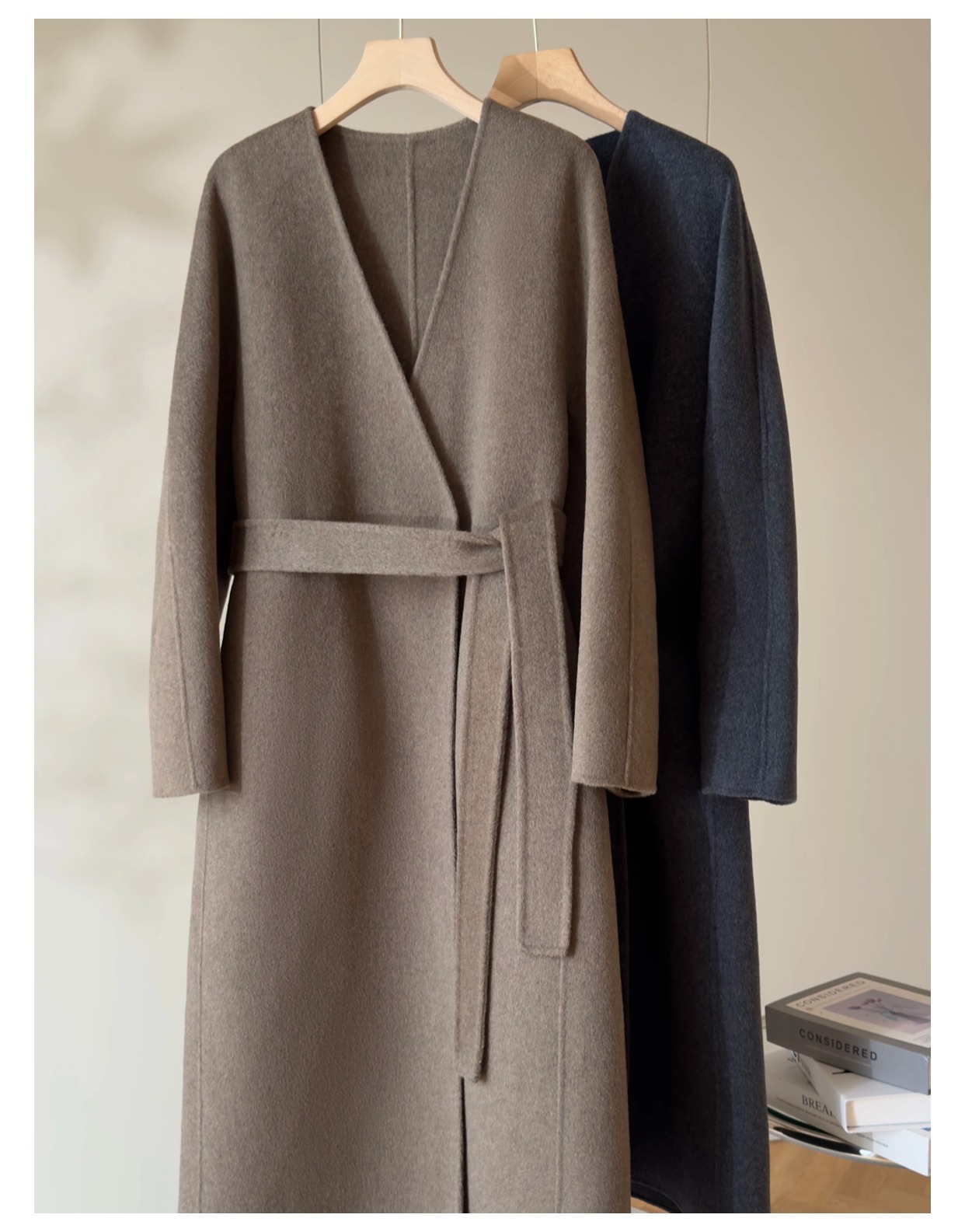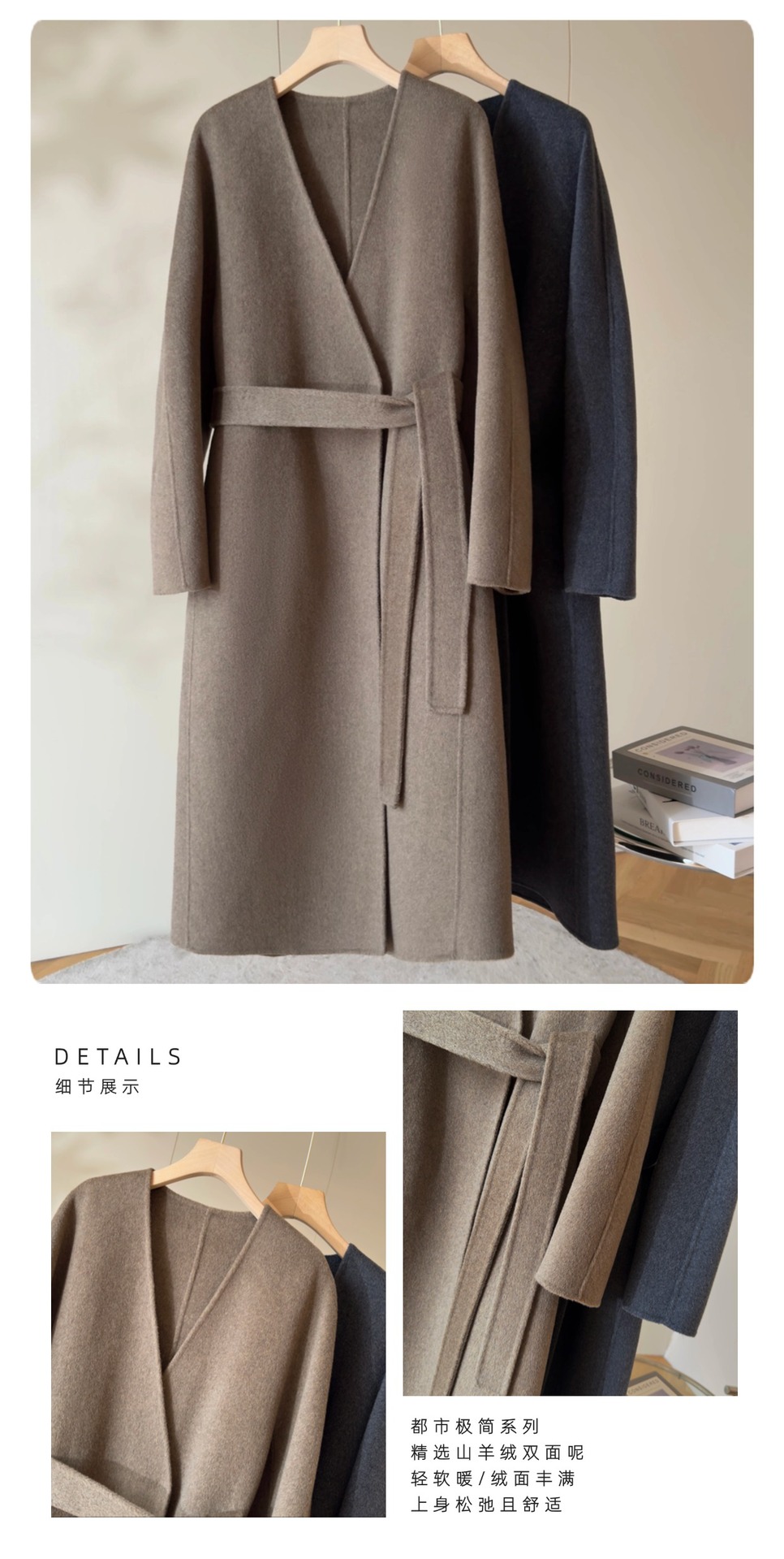 엔디 레이스 업 캐시미어 코트 여자 2024 년 겨울 새로운 V-넥 그레이 더블 페이스 롱 코트