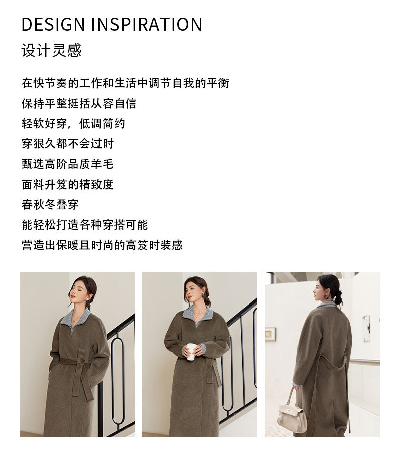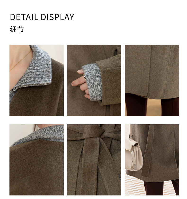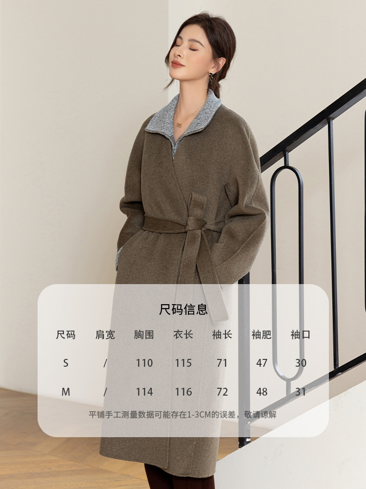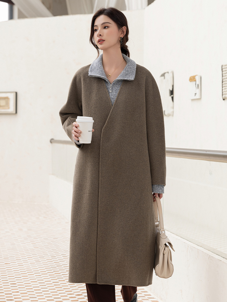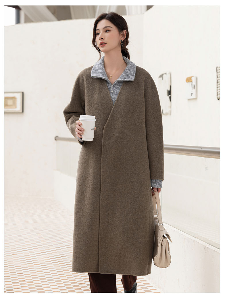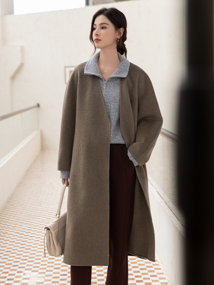 엔디 레이스 업 캐시미어 코트 여자 2024 년 겨울 새로운 V-넥 그레이 더블 페이스 롱 코트