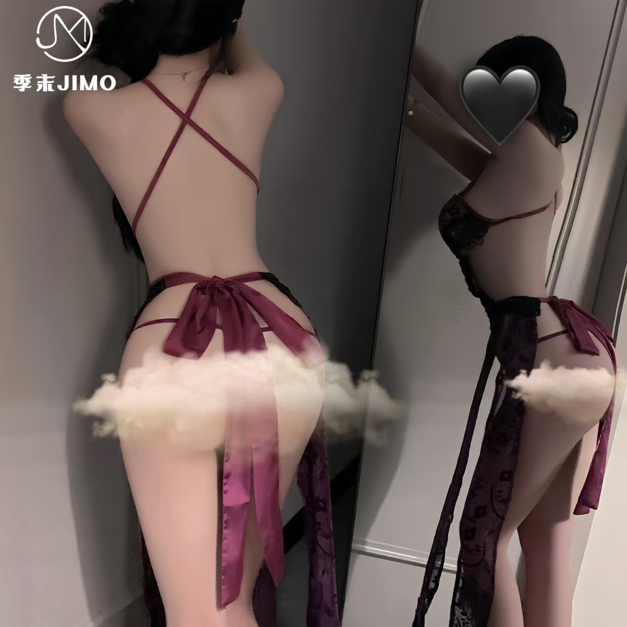 늦은 시즌 새로운 국가 스타일 백리스 청삼 원피스 여성의 새로운 중국 스타일 원피스 관점 섹스 속옷 순수한 욕망 레이스 업 나이트 드레스